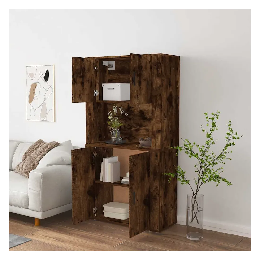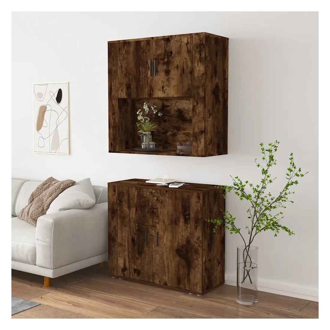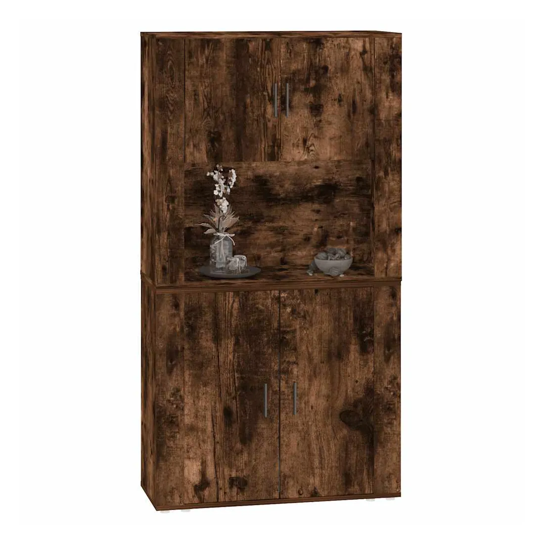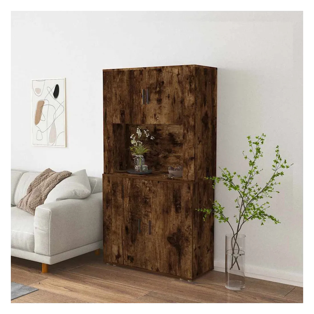 Cherchez-vous un buffet haut de gamme stylé ? Ce buffet haut ajoute un charme unique à votre intérieur existant ! Matériau durable : le bois d'ingénierie est d'une qualité exceptionnelle avec une surface lisse et présente également résistance, stabilité et résistance à l'humidité.Grand espace de rangement : le buffet offre un grand espace de rangement pour garder vos différents articles essentiels quotidiens bien organisés et facilement accessibles.Fonction murale : le meuble de rangement peut être fixé au mur sur le dessus du buffet pour créer un buffet haut, ce qui permet de gagner de l'espace au sol. Ainsi, vous pouvez maximiser votre espace de vie et garder la zone propre et bien rangée. Bon à savoir :Pour faciliter au maximum le montage, chaque produit est livré avec des instructions.Les vis et les chevilles pour l'intérieur du mur ne sont pas incluses. Nous vous conseillons de trouver et d'utiliser des vis et des chevilles adaptées spécifiquement à vos murs. Si vous n'êtes pas sûr, vous pouvez consulter un professionnel. Veuillez lire et suivre chaque étape des instructions. Attention :Pour éviter qu'il ne soit renversé, ce produit doit être utilisé avec le dispositif de fixation au mur fourni.