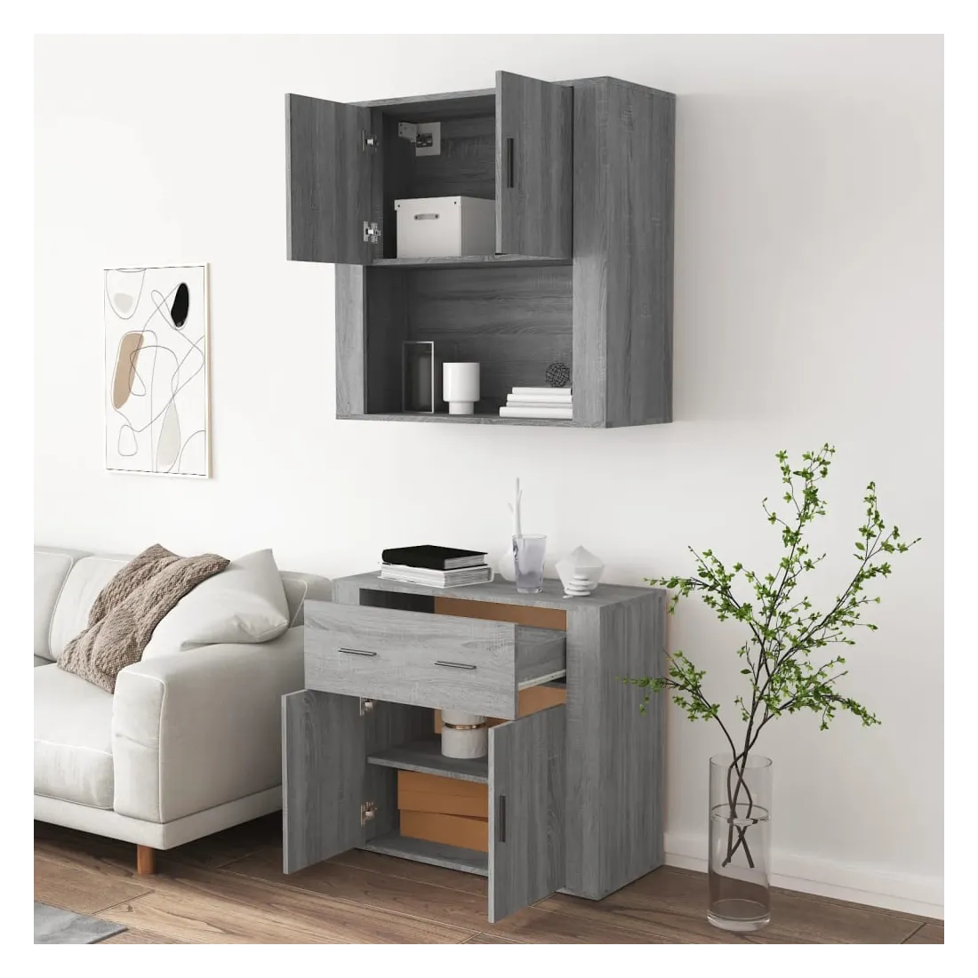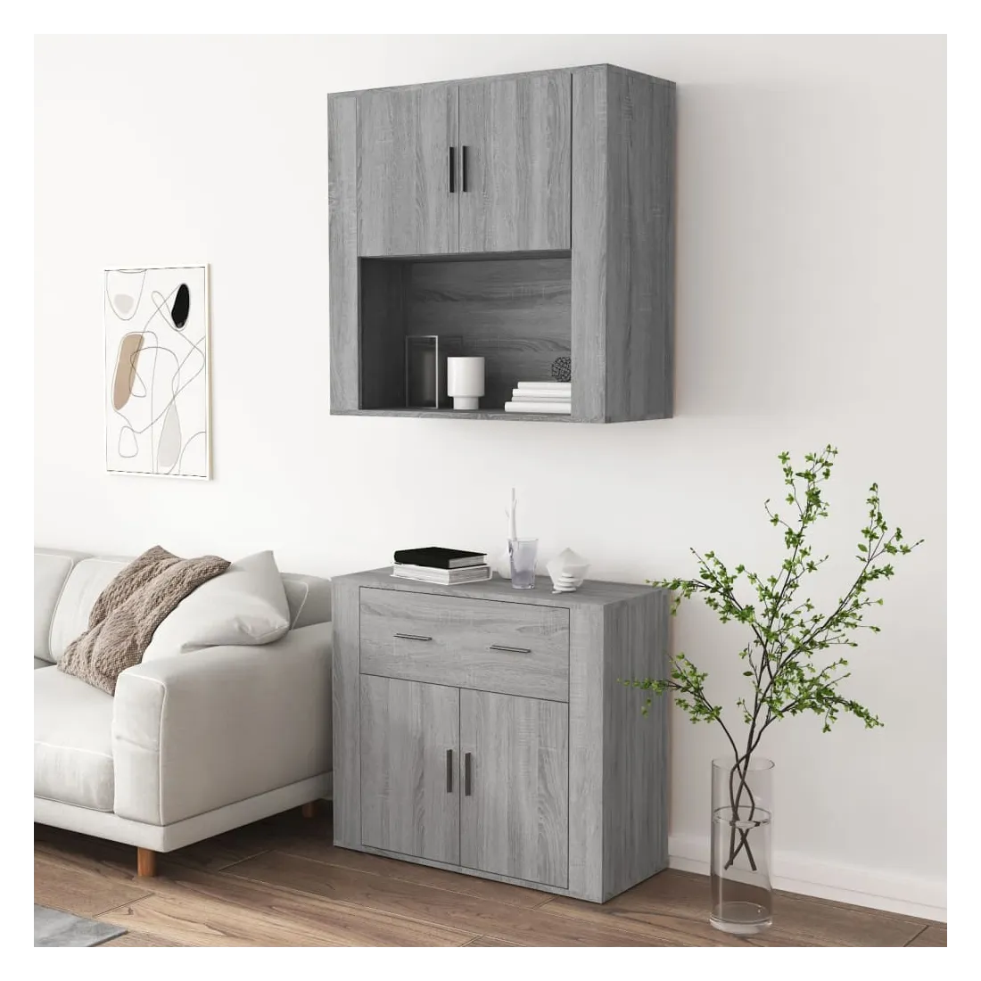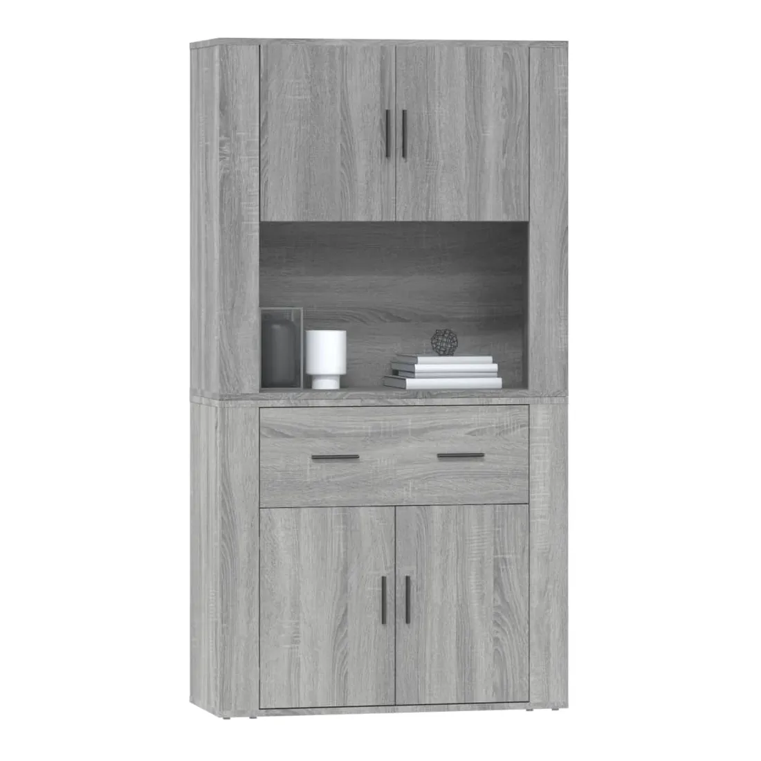 Cherchez-vous un buffet haut de gamme stylé ? Ce buffet haut ajoute un charme unique à votre intérieur existant ! Matériau durable : le bois d'ingénierie est d'une qualité exceptionnelle avec une surface lisse et présente également résistance, stabilité et résistance à l'humidité.Grand espace de rangement : le buffet offre un grand espace de rangement pour garder vos différents articles essentiels quotidiens bien organisés et facilement accessibles.Fonction murale : le meuble de rangement peut être fixé au mur sur le dessus du buffet pour créer un buffet haut, ce qui permet de gagner de l'espace au sol. Ainsi, vous pouvez maximiser votre espace de vie et garder la zone propre et bien rangée. Bon à savoir :Pour faciliter au maximum le montage, chaque produit est livré avec des instructions.Les vis et les chevilles pour l'intérieur du mur ne sont pas incluses. Nous vous conseillons de trouver et d'utiliser des vis et des chevilles adaptées spécifiquement à vos murs. Si vous n'êtes pas sûr, vous pouvez consulter un professionnel. Veuillez lire et suivre chaque étape des instructions. Attention :Pour éviter qu'il ne soit renversé, ce produit doit être utilisé avec le dispositif de fixation au mur fourni.