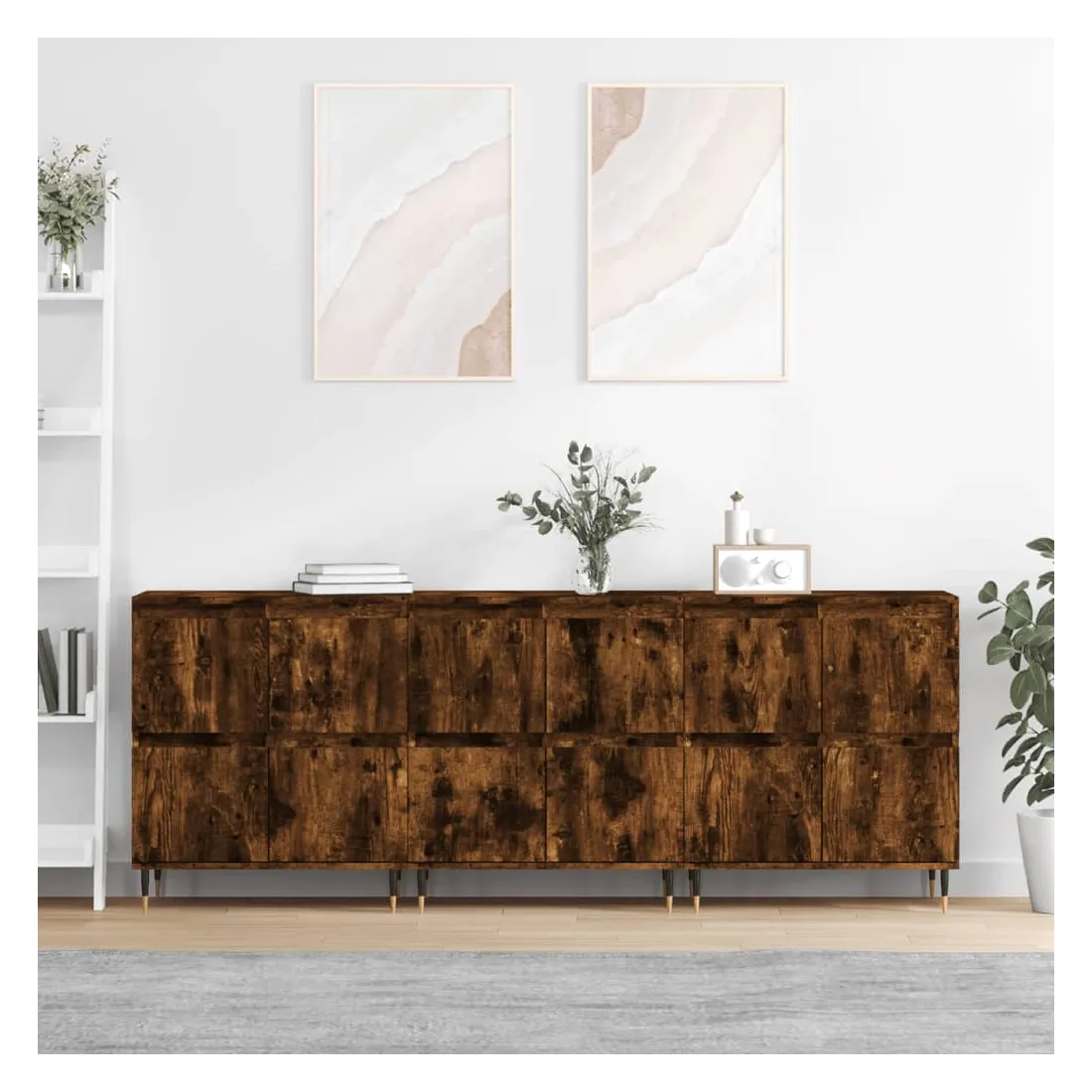 Ces buffets classiques, au look intemporel, sont conçus pour être un excellent supplément à votre maison. Matériau durable : le bois d'ingénierie est d'une qualité exceptionnelle avec une surface lisse et présente également résistance, stabilité et résistance à l'humidité.Grand espace de rangement : l'armoire offre un grand espace de rangement pour garder vos différents articles essentiels quotidiens bien organisés et facilement accessibles.Fonction d'affichage : vous pouvez également placer vos photos, décorations ou fleurs préférées sur l'armoire de rangement pour enrichir votre vie. Attention :Pour éviter qu'il ne soit renversé, ce produit doit être utilisé avec le dispositif de fixation au mur fourni.