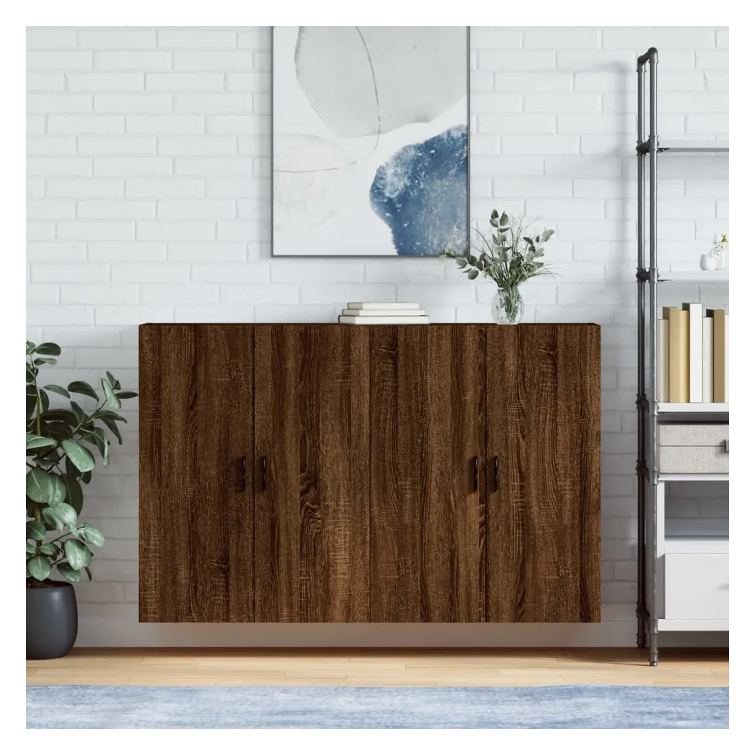 Ces armoires murales au design élégant apporteront une touche intemporelle à votre décoration intérieure. Matériau durable : le bois d'ingénierie est d'une qualité exceptionnelle avec une surface lisse et se caractérise également par sa solidité, stabilité et résistance à l'humidité. Fabriquée en bois d'ingénierie, cette armoire de rangement est robuste et durable.Grand espace de rangement : l'armoire d'affichage murale offre un grand espace de rangement pour garder vos différents articles essentiels quotidiens bien organisés et facilement accessibles.Fonction murale : l'armoire de rangement avec portes ne prend pas de place au sol. Vous pouvez la suspendre facilement au mur.Design pratique : gardez vos essentiels à l'abri de la poussière en les cachant derrière les portes. De plus, les poignées permettent d'ouvrir facilement l'armoire de rangement.Large application : grâce à son design simple, le placard mural convient à votre salon, chambre à coucher, bureau et à tout autre espace de vie. Bon à savoir :Les vis et les chevilles pour l'intérieur du mur ne sont pas incluses. Nous vous conseillons de trouver et d'utiliser des vis et des chevilles adaptées spécifiquement à vos murs. Si vous n'êtes pas sûr, vous pouvez consulter un professionnel. Veuillez lire et suivre chaque étape des instructions.