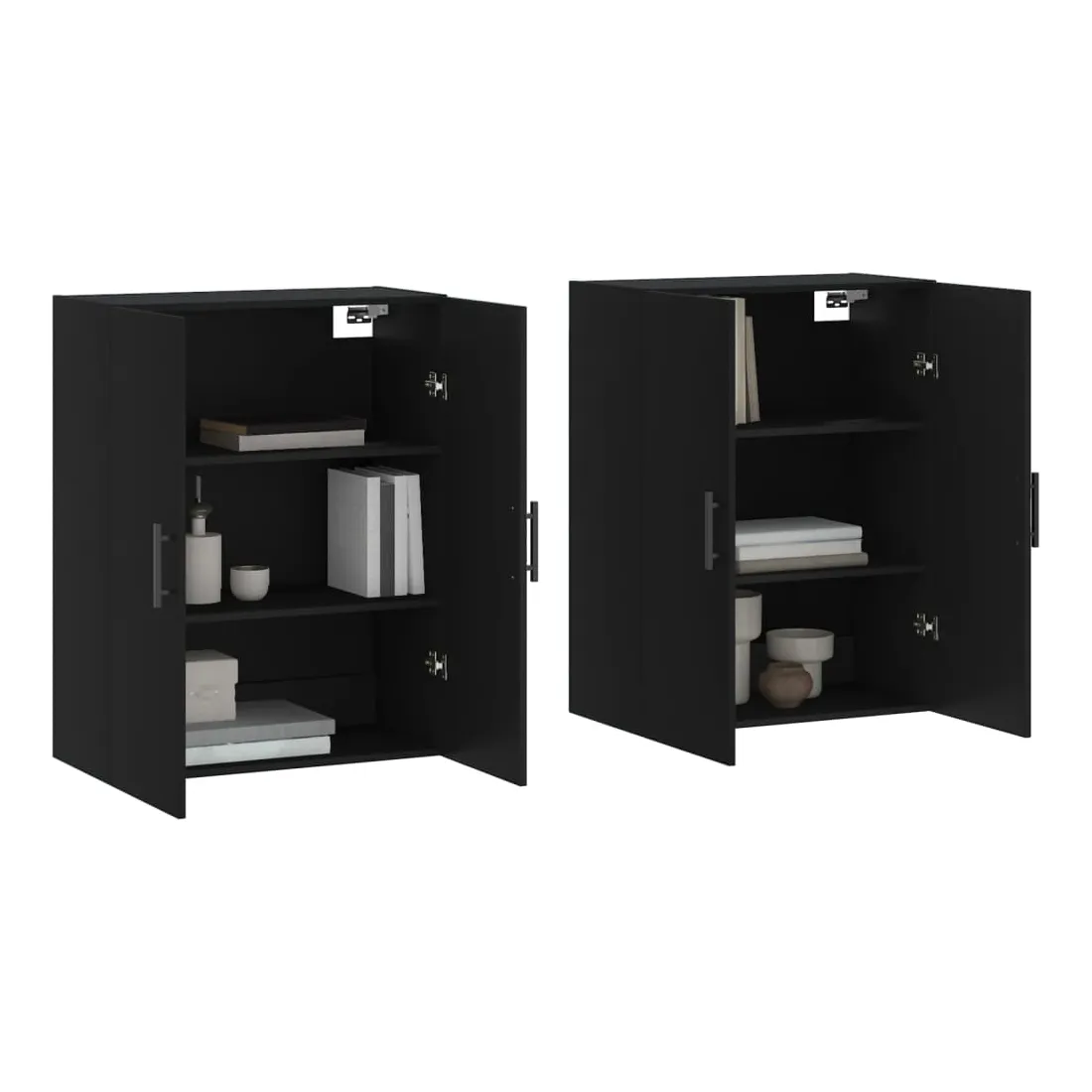 Ces armoires murales au design élégant apporteront une touche intemporelle à votre décoration intérieure. Matériau durable : le bois d'ingénierie est d'une qualité exceptionnelle avec une surface lisse et se caractérise également par sa solidité, stabilité et résistance à l'humidité. Fabriquée en bois d'ingénierie, cette armoire de rangement est robuste et durable.Grand espace de rangement : l'armoire d'affichage murale offre un grand espace de rangement pour garder vos différents articles essentiels quotidiens bien organisés et facilement accessibles.Fonction murale : l'armoire de rangement avec portes ne prend pas de place au sol. Vous pouvez la suspendre facilement au mur.Design pratique : gardez vos essentiels à l'abri de la poussière en les cachant derrière les portes. De plus, les poignées permettent d'ouvrir facilement l'armoire de rangement.Large application : grâce à son design simple, le placard mural convient à votre salon, chambre à coucher, bureau et à tout autre espace de vie. Bon à savoir :Les vis et les chevilles pour l'intérieur du mur ne sont pas incluses. Nous vous conseillons de trouver et d'utiliser des vis et des chevilles adaptées spécifiquement à vos murs. Si vous n'êtes pas sûr, vous pouvez consulter un professionnel. Veuillez lire et suivre chaque étape des instructions.