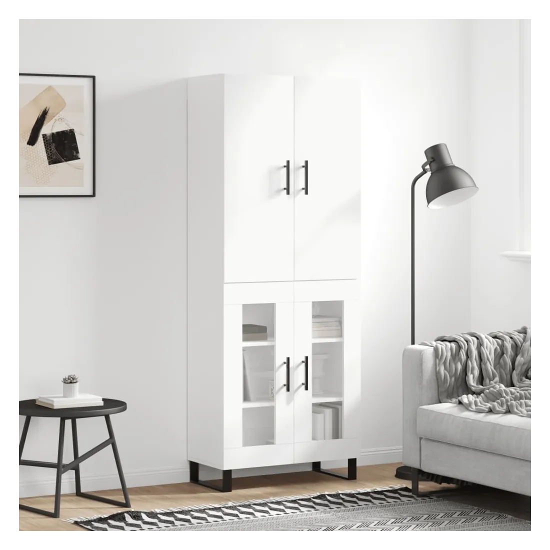 Cherchez-vous un buffet haut de gamme stylé ? Ce buffet haut ajoute un charme élégant à votre intérieur existant ! Matériau durable : le bois d'ingénierie est d'une qualité exceptionnelle avec une surface lisse et présente également résistance, stabilité et résistance à l'humidité.Grand espace de rangement : l'armoire latérale offre un grand espace de rangement pour garder vos différents articles essentiels quotidiens bien organisés et facilement accessibles.Design en verre : le design en verre met en valeur l'élégance de l'armoire latérale et vous permet d'exposer vos objets préférés.Porte pratique : gardez votre espace sans encombrement en cachant de petits articles essentiels derrière les portes de l'armoire de rangement.Pieds en métal : les pieds en métal ajoutent un style calme à votre intérieur tout en assurant la stabilité. Attention :Pour éviter qu'il ne soit renversé, ce produit doit être utilisé avec le dispositif de fixation au mur fourni. Bon à savoir :Les vis et les chevilles pour l'intérieur du mur ne sont pas incluses. Nous vous conseillons de trouver et d'utiliser des vis et des chevilles adaptées spécifiquement à vos murs. Si vous n'êtes pas sûr, vous pouvez consulter un professionnel. Veuillez lire et suivre chaque étape des instructions.