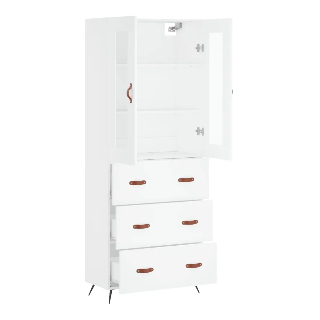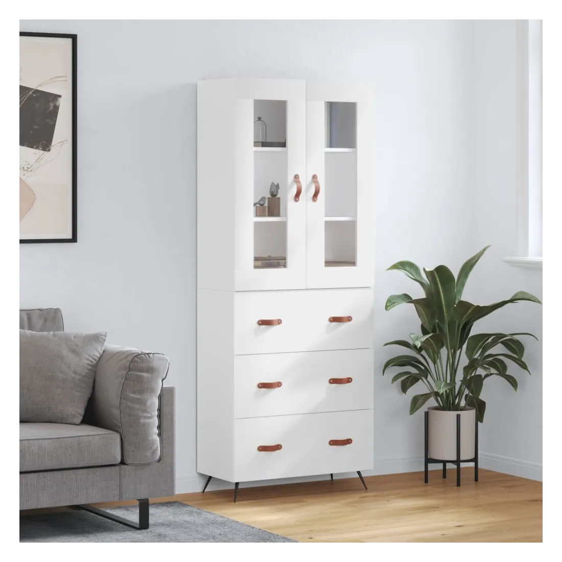 Cherchez-vous un buffet haut de gamme stylé ? Ce buffet haut ajoute un charme élégant à votre intérieur existant ! Matériau durable : le bois d'ingénierie est d'une qualité exceptionnelle avec une surface lisse et présente également résistance, stabilité et résistance à l'humidité. Grand espace de rangement : l'armoire offre un grand espace de rangement pour garder vos différents articles essentiels quotidiens bien organisés et facilement accessibles. Pieds en métal : les pieds en métal ajoutent un style calme à votre intérieur tout en assurant la stabilité. Attention : Pour éviter qu'il ne soit renversé, ce produit doit être utilisé avec le dispositif de fixation au mur fourni. Bon à savoir : Les vis et les chevilles pour l'intérieur du mur ne sont pas incluses. Nous vous conseillons