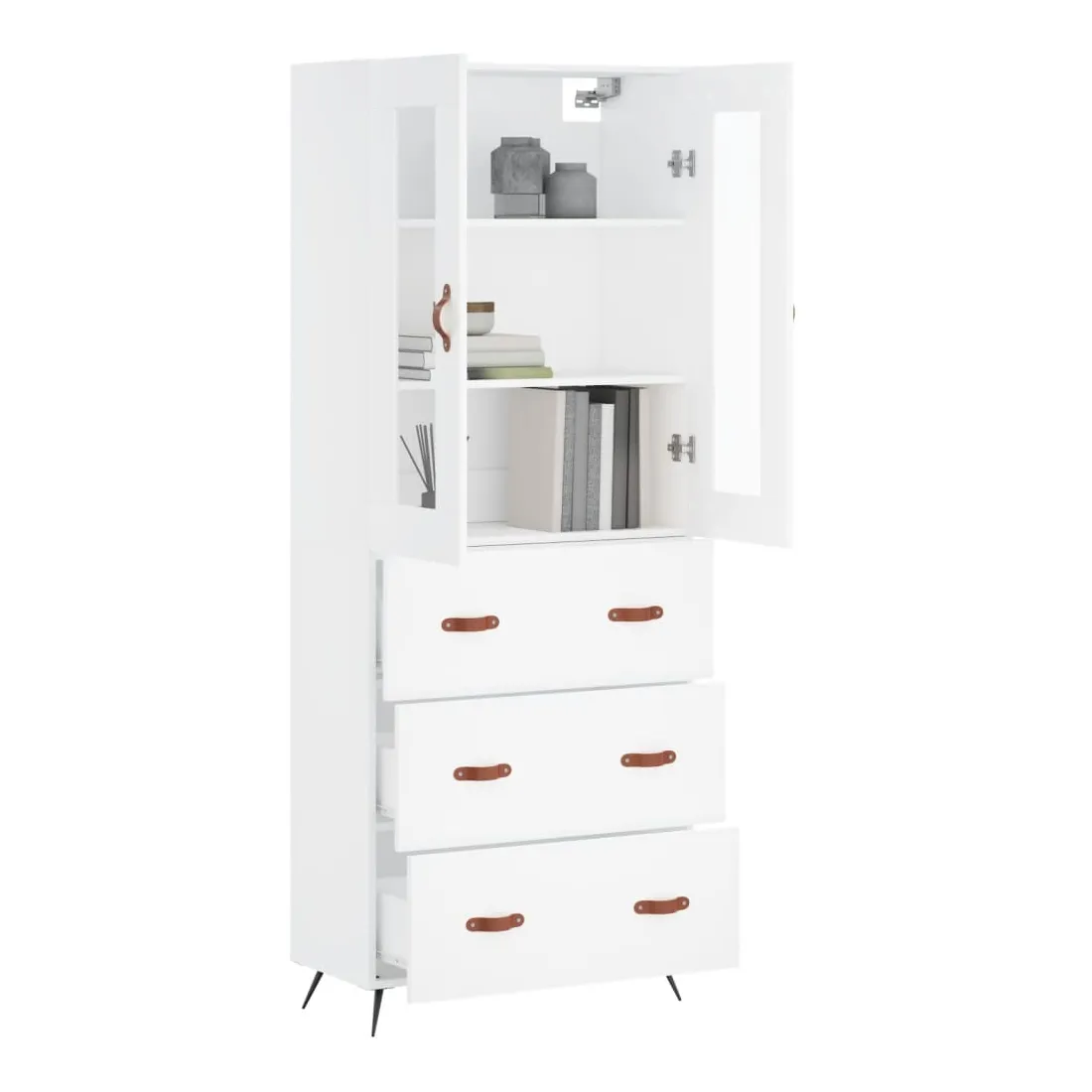 Cherchez-vous un buffet haut de gamme stylé ? Ce buffet haut ajoute un charme élégant à votre intérieur existant ! Matériau durable : le bois d'ingénierie est d'une qualité exceptionnelle avec une surface lisse et présente également résistance, stabilité et résistance à l'humidité.Grand espace de rangement : l'armoire offre un grand espace de rangement pour garder vos différents articles essentiels quotidiens bien organisés et facilement accessibles.Pieds en métal : les pieds en métal ajoutent un style calme à votre intérieur tout en assurant la stabilité. Attention :Pour éviter qu'il ne soit renversé, ce produit doit être utilisé avec le dispositif de fixation au mur fourni. Bon à savoir :Les vis et les chevilles pour l'intérieur du mur ne sont pas incluses. Nous vous conseillons de trouver et d'utiliser des vis et des chevilles adaptées spécifiquement à vos murs. Si vous n'êtes pas sûr, vous pouvez consulter un professionnel. Veuillez lire et suivre chaque étape des instructions.