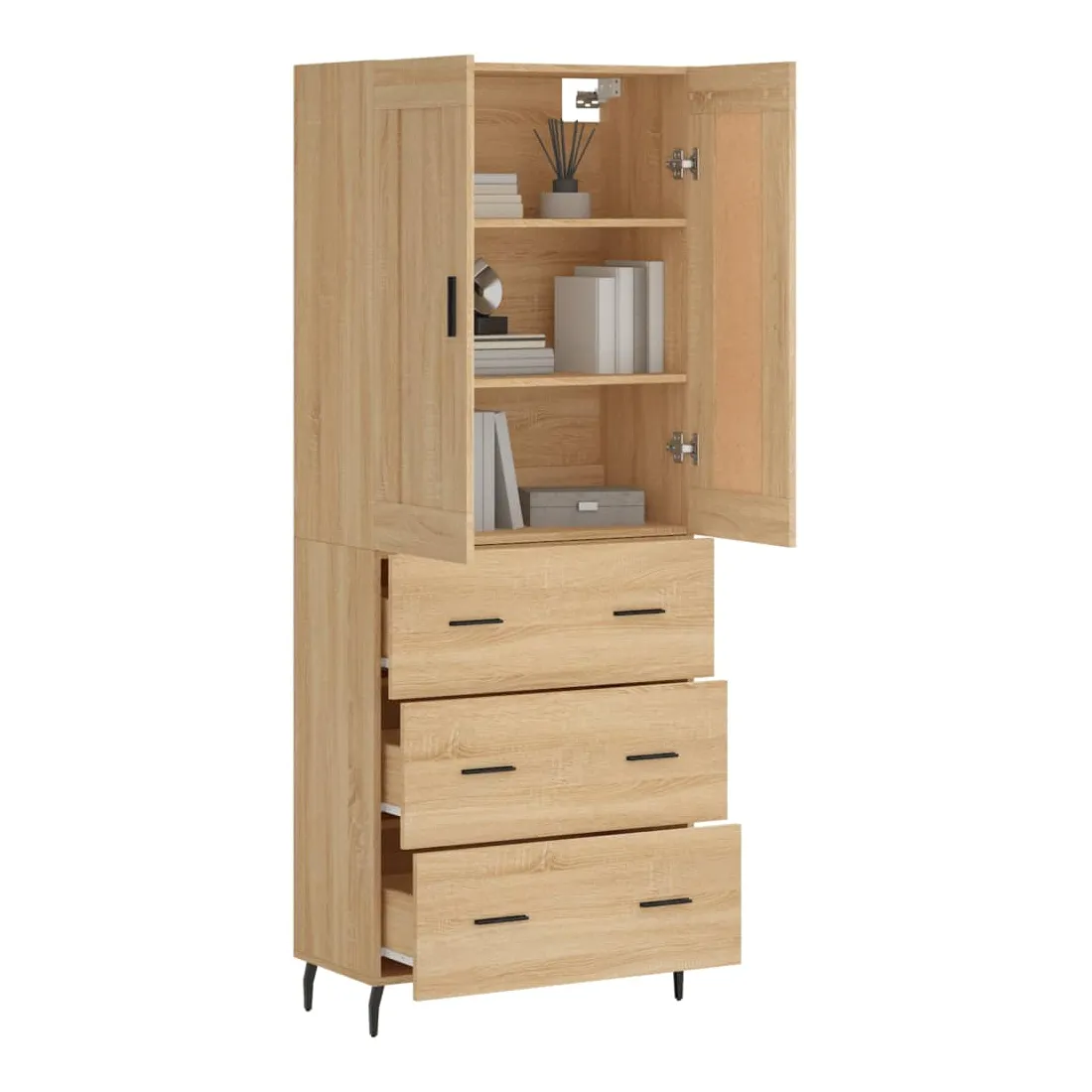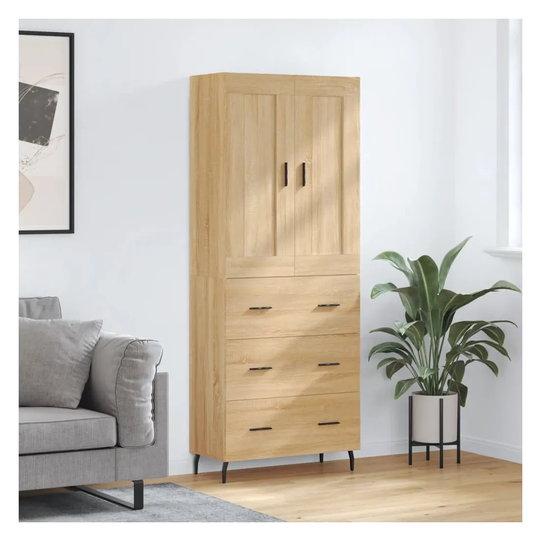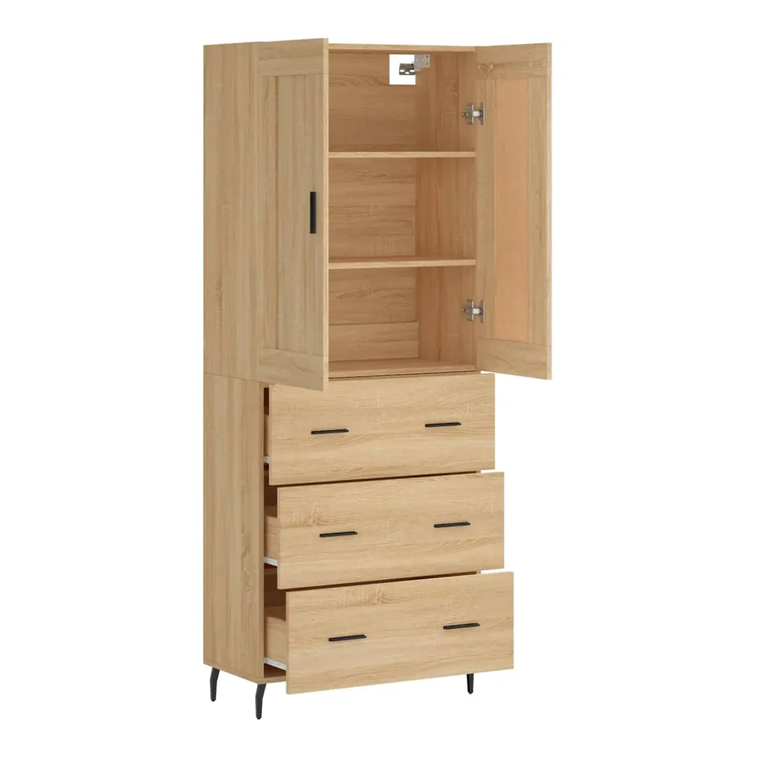 Cherchez-vous un buffet haut de gamme stylé ? Ce buffet haut ajoute un charme élégant à votre intérieur existant ! Matériau durable : le bois d'ingénierie est d'une qualité exceptionnelle avec une surface lisse et présente également résistance, stabilité et résistance à l'humidité.Grand espace de rangement : l'armoire offre un grand espace de rangement pour garder vos différents articles essentiels quotidiens bien organisés et facilement accessibles.Portes pratiques : gardez votre espace sans encombrement en cachant de petits articles essentiels derrière les portes de l'armoire de rangement.Pieds en métal : les pieds en métal ajoutent un style calme à votre intérieur tout en assurant la stabilité. Attention :Pour éviter qu'il ne soit renversé, ce produit doit être utilisé avec le dispositif de fixation au mur fourni. Bon à savoir :Les vis et les chevilles pour l'intérieur du mur ne sont pas incluses. Nous vous conseillons de trouver et d'utiliser des vis et des chevilles adaptées spécifiquement à vos murs. Si vous n'êtes pas sûr, vous pouvez consulter un professionnel. Veuillez lire et suivre chaque étape des instructions.