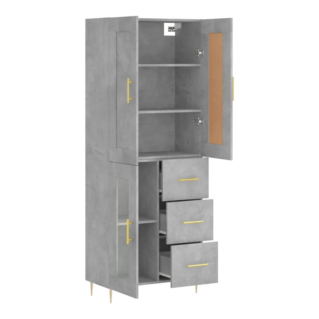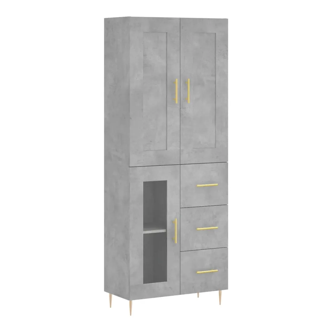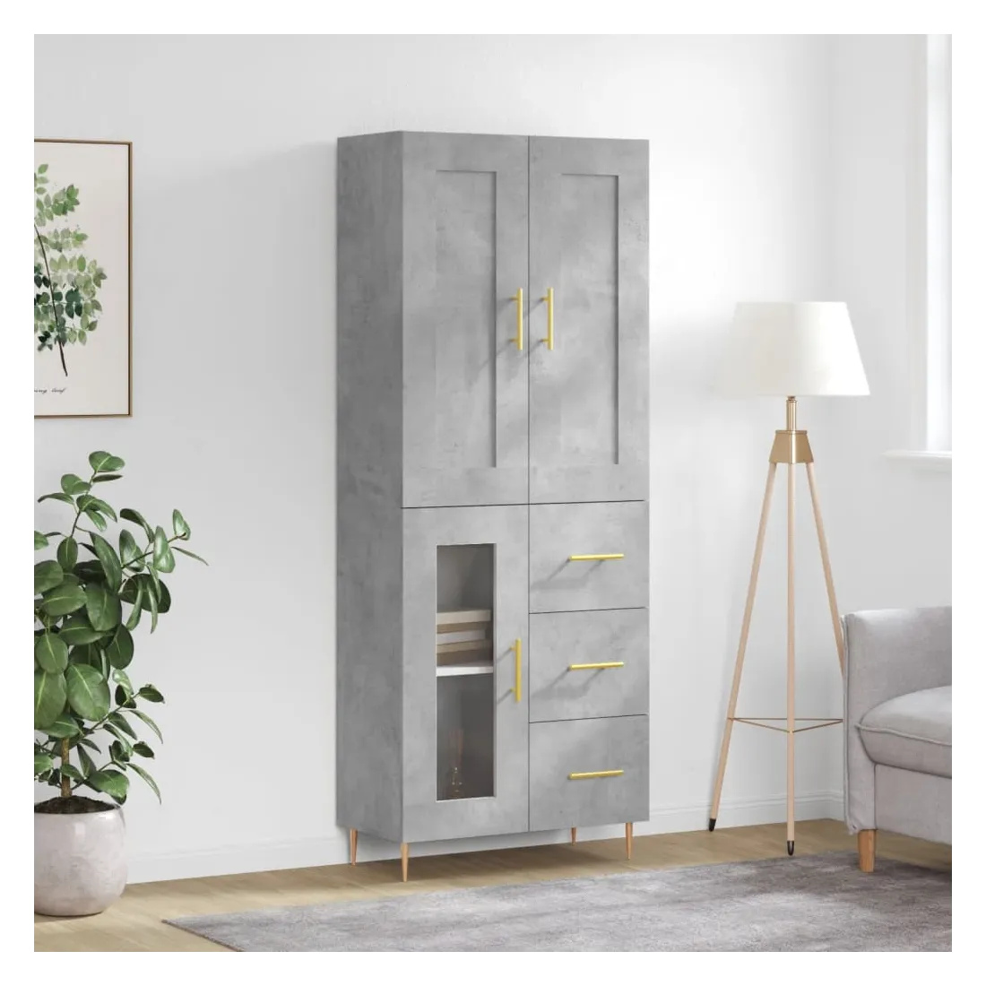 Buffet haut Gris béton 69,5x34x180 cm Bois d'ingénierie