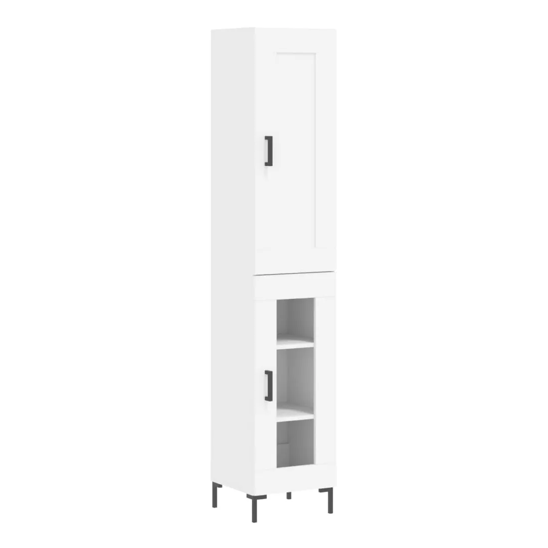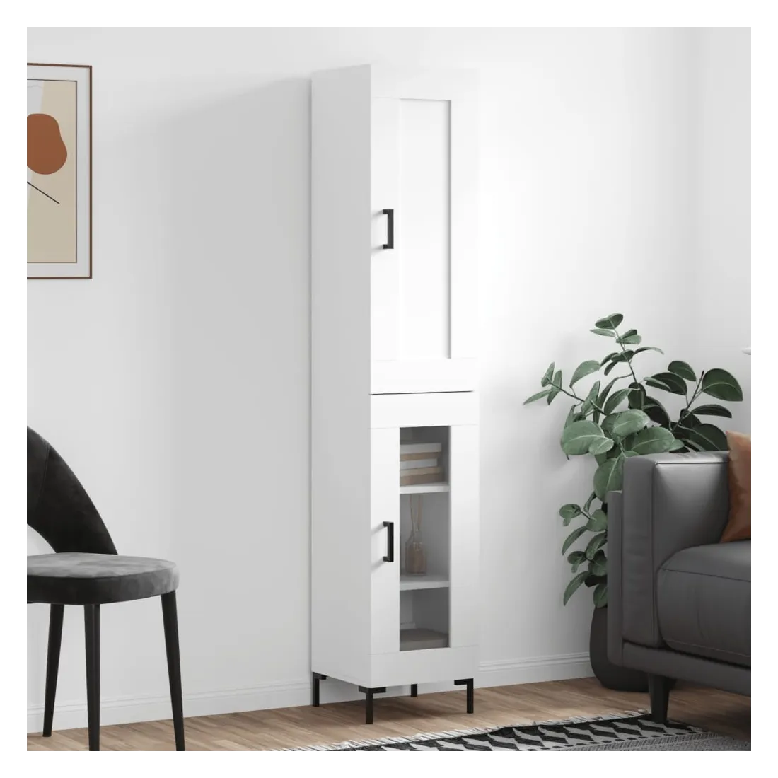 Cherchez-vous un buffet haut de gamme stylé ? Ce buffet haut ajoute un charme élégant à votre intérieur existant ! Matériau durable : le bois d'ingénierie est d'une qualité exceptionnelle avec une surface lisse et se caractérise par sa solidité, stabilité et résistance à l'humidité. Fabriquée en bois d'ingénierie, l'armoire est robuste et durable.Grand espace de rangement : l'armoire latérale offre un grand espace de rangement pour garder vos différents articles essentiels quotidiens bien organisés et facilement accessibles.Portes pratiques : gardez votre espace sans encombrement en cachant de petits objets essentiels derrière les portes de cette armoire haute. De plus, la porte en verre vous permet de voir clairement vos objets et de les retrouver facilement.Pieds en métal : les pieds en métal ajoutent un style calme à votre intérieur tout en assurant la stabilité. Attention :Pour éviter qu'il ne soit renversé, ce produit doit être utilisé avec le dispositif de fixation au mur fourni. Bon à savoir :Les vis et les chevilles pour l'intérieur du mur ne sont pas incluses. Nous vous conseillons de trouver et d'utiliser des vis et des chevilles adaptées spécifiquement à vos murs. Si vous n'êtes pas sûr, vous pouvez consulter un professionnel. Veuillez lire et suivre chaque étape des instructions.