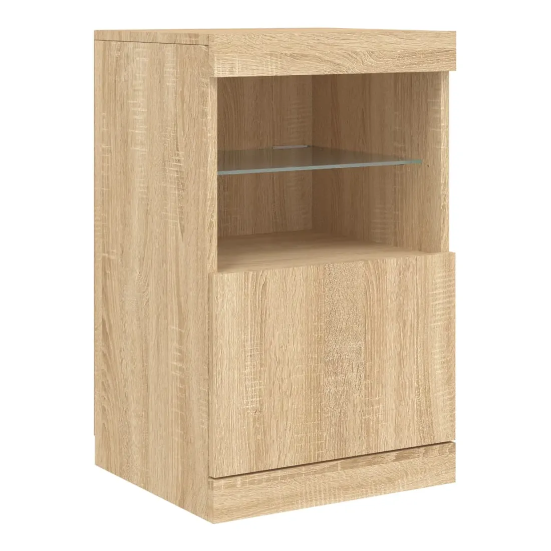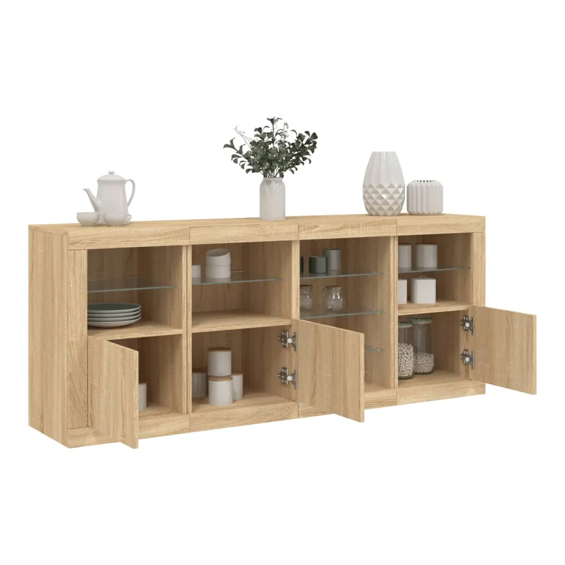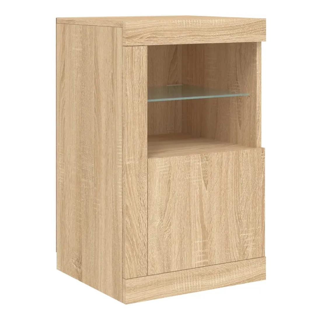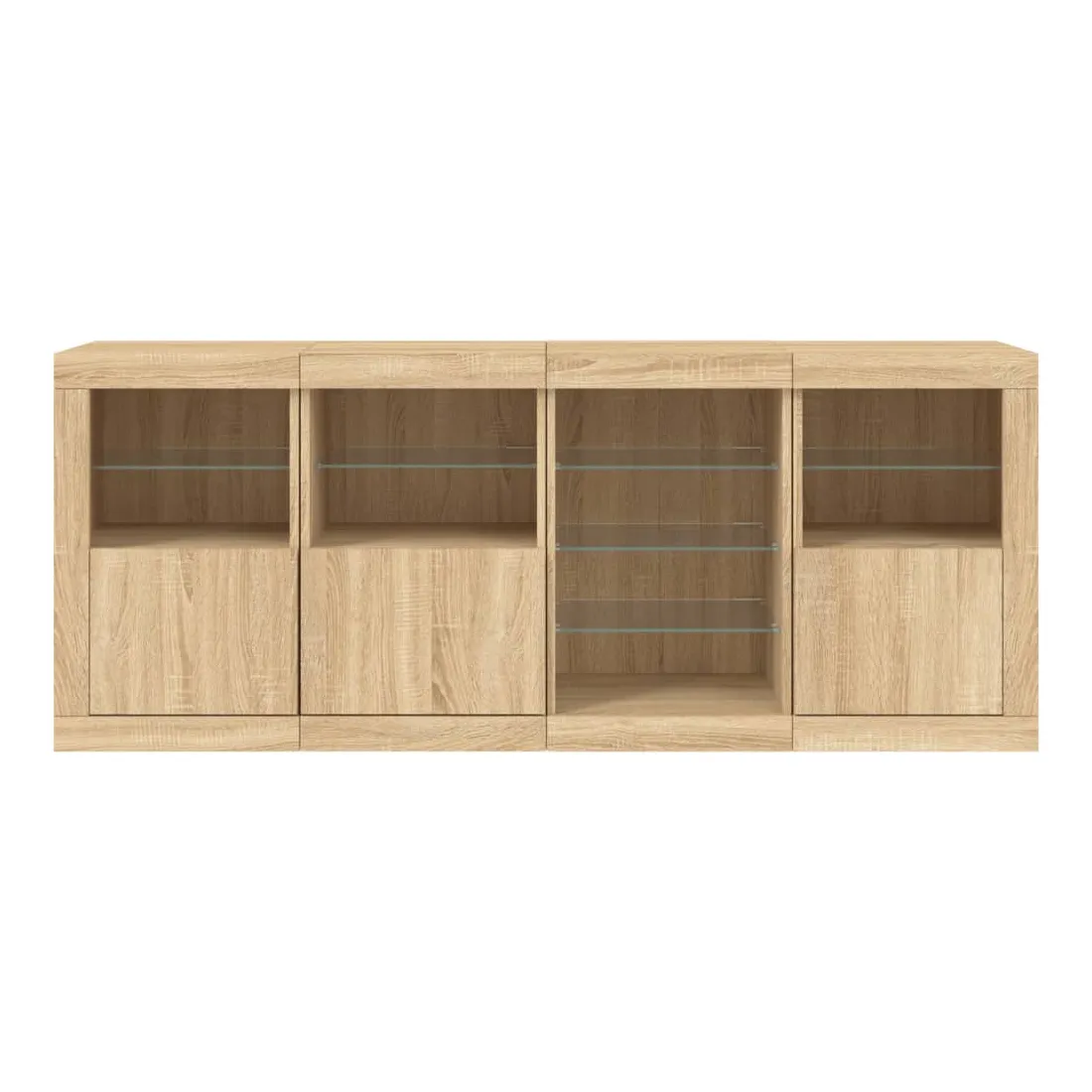Décorez votre pièce avec ce buffet moderne avec éclairage LED, il s'harmonise facilement avec les meubles de tout style de votre maison. Matériau durable : le bois d'ingénierie est d'une qualité exceptionnelle avec une surface lisse et présente également résistance, stabilité et résistance à l'humidité.Lumières LED RVB : le buffet est équipé de lumières LED RVB vibrantes. Avec divers menus personnalisables, vous pouvez changer sans effort la couleur des lumières et même les régler automatiquement. Ces lumières LED renforcent non seulement l'aspect contemporain du buffet, mais aussi son attrait pour la mode.Grand espace de rangement : l'armoire de rangement offre beaucoup d'espace pour garder vos objets du quotidien bien rangés et facilement accessibles.Fonction d'exposition : la partie supérieure robuste de l'armoire d'entrée est idéale pour exposer des objets décoratifs, des cadres photo ou des plantes en pot.Porte pratiques : gardez vos essentiels à l'abri de la poussière en les cachant derrière les portes de l'armoire latérale. Bon à savoir :Ce produit est doté d'un connecteur USB qui nécessite une source d'alimentation USB de 5V certifiée (non incluse). Attention :Pour éviter qu'il ne soit renversé, ce produit doit être utilisé avec le dispositif de fixation au mur fourni.