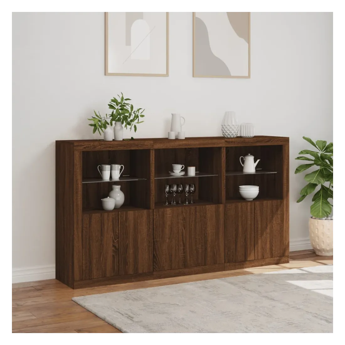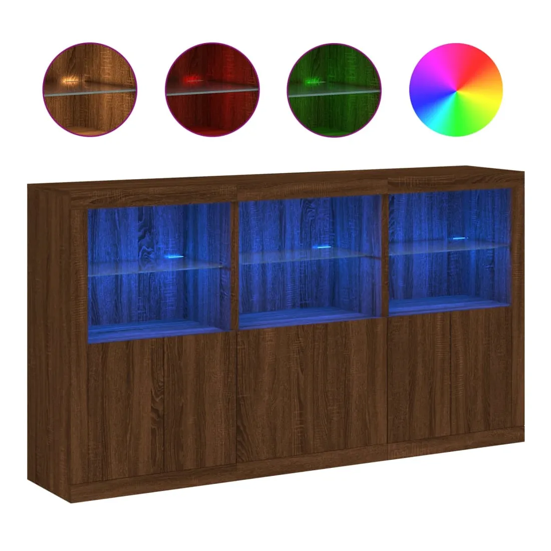 vidaXLDécorez votre pièce avec ce buffet moderne avec éclairage LED, il s'harmonise facilement avec les meubles de tout style de votre maison. Matériau durable : le bois d'ingénierie est d'une qualité exceptionnelle avec une surface lisse et présente également résistance, stabilité et résistance à l'humidité.Lumières LED RVB : le buffet est équipé de lumières LED RVB vibrantes. Avec divers menus personnalisables, vous pouvez changer sans effort la couleur des lumières et même les régler automatiquement. Ces lumières LED renforcent non seulement l'aspect contemporain du buffet, mais aussi son attrait pour la mode.Grand espace de rangement : l'armoire de rangement offre beaucoup d'espace pour garder vos objets du quotidien bien rangés et facilement accessibles.Fonction d'exposition : la partie supérieure robuste de l'armoire d'entrée est idéale pour exposer des objets décoratifs, des cadres photo ou des plantes en pot.Porte pratiques : gardez vos essentiels à l'abri de la poussière en les cachant derrière les portes de l'armoire latérale. Bon à savoir :Ce produit est doté d'un connecteur USB qui nécessite une source d'alimentation USB de 5V certifiée (non incluse). Attention :Pour éviter qu'il ne soit renversé, ce produit doit être utilisé avec le dispositif de fixation au mur fourni.