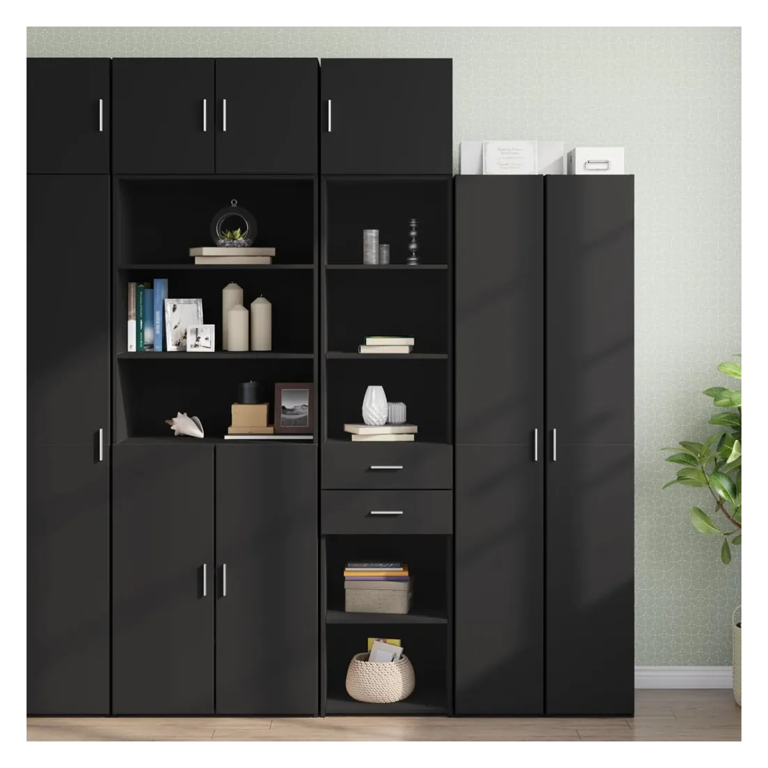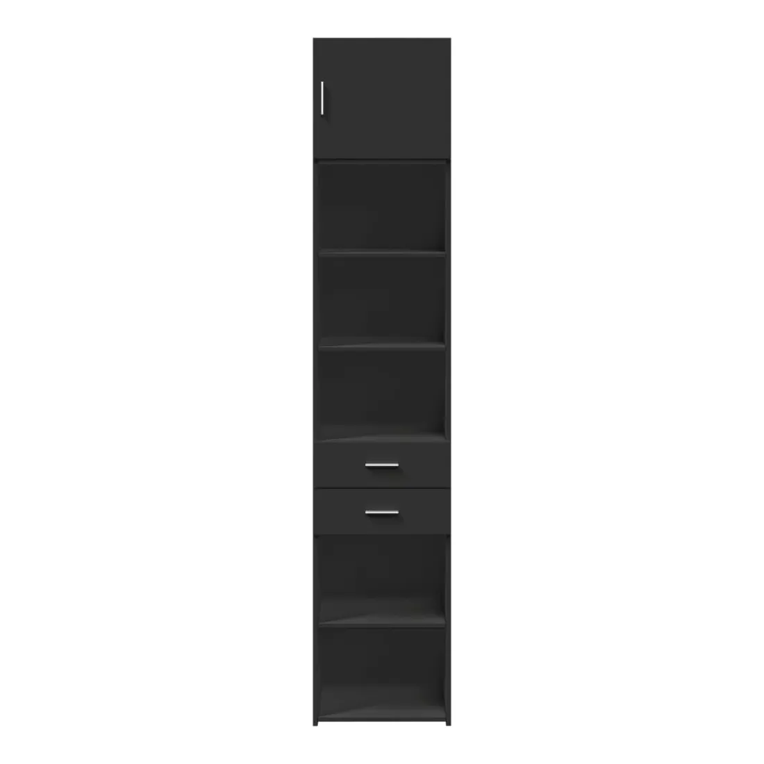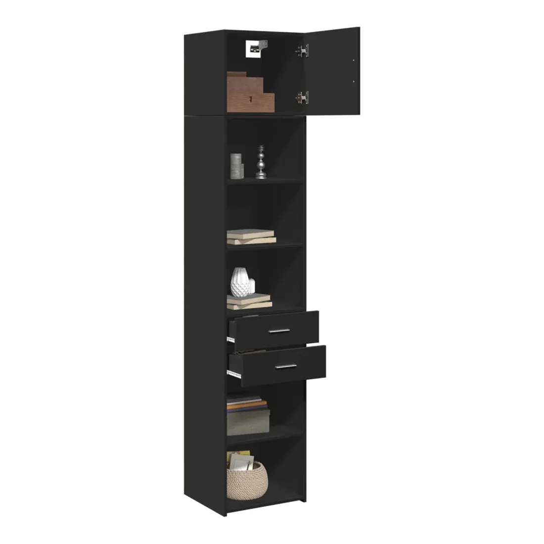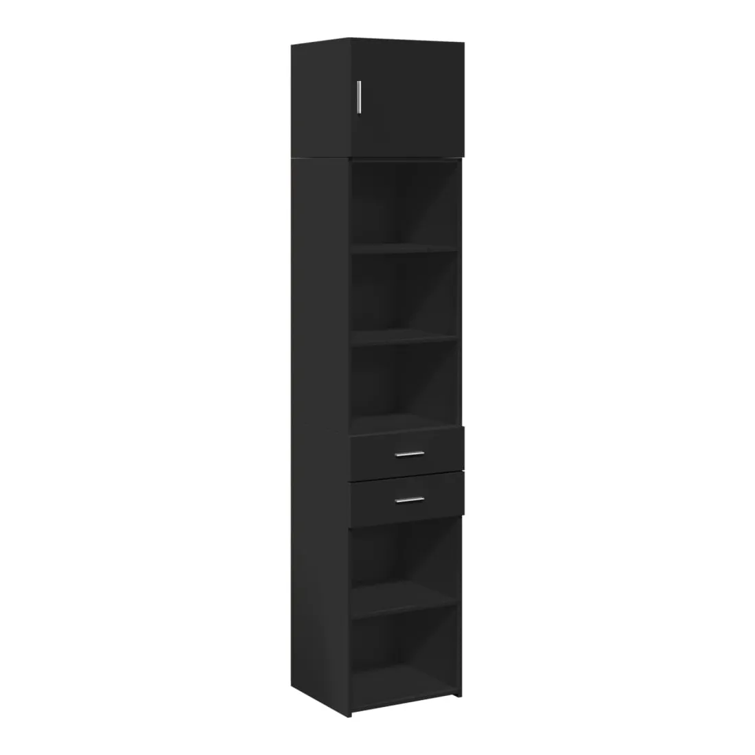 vidaXLCette armoire de rangement mince comprend deux armoires de tailles différentes, offrant un espace de rangement supplémentaire pour votre maison. Matériau stable et durable : le bois d'ingénierie est un matériau durable et stable dont la surface lisse résiste à l'humidité, au déformation et au fendillement, ce qui en fait un choix fiable pour une grande variété de projets.Grand espace de rangement : cette armoire de rangement est conçue avec plusieurs compartiments, offrant un grand espace de rangement pour les livres, les objets de collection, les décorations ou d’autres objets que vous devez ranger.Deux méthodes d’installation de la porte : vous pouvez installer la porte au côté droit ou gauche en fonction de vos besoins spécifiques.Économie d’espace : cette unité de rangement haute utilise efficacement l’espace vertical pour maximiser la capacité de stockage, ce qui en fait un meuble idéal pour les petits espaces ou les espaces limités.Large application : cette armoire de rangement polyvalente est un supplément fonctionnel pour plusieurs espaces, y compris la salle de bain, le salon, la chambre à coucher, la cuisine, la buanderie, le bureau et le garage. Attention :Pour éviter qu'il ne bascule, ce produit doit être utilisé avec le dispositif de fixation murale fourni. Bon à savoir :Les vis et les chevilles pour l'intérieur du mur ne sont pas incluses. Nous vous conseillons de trouver et d'utiliser des vis et des chevilles adaptées spécifiquement à vos murs. Si vous n'êtes pas sûr, vous pouvez consulter un professionnel. Veuillez lire et suivre chaque étape des instructions.
