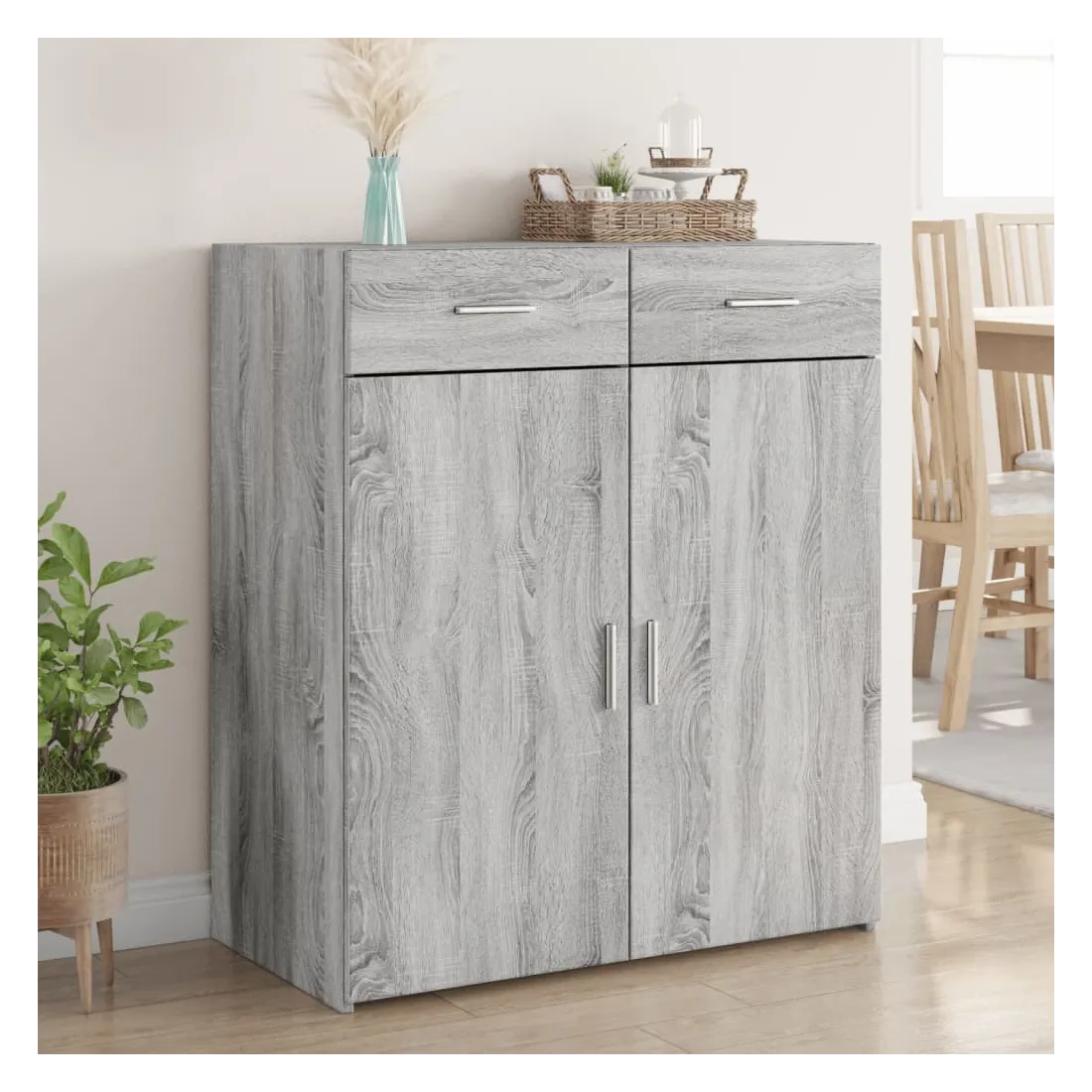 Ce buffet classique est destiné à être un supplément décoratif et pratique à votre maison. Matériau durable : le bois d'ingénierie est d'une qualité exceptionnelle avec une surface lisse et se caractérise également par sa solidité, sa stabilité et sa résistance à l'humidité.Grand espace de rangement : ce buffet avec 2 tiroirs offre un grand espace de rangement pour garder vos différents articles essentiels quotidiens bien organisés et facilement accessibles. Facile à nettoyer : l'armoire est facile à nettoyer à l'aide d'un chiffon humide et nécessite peu d'entretien.Portes pratiques : gardez votre espace sans encombrement en cachant vos articles essentiels derrière les portes de l'armoire de rangement.Attention :Pour éviter qu'il ne bascule, ce produit doit être utilisé avec le dispositif de fixation murale fourni.