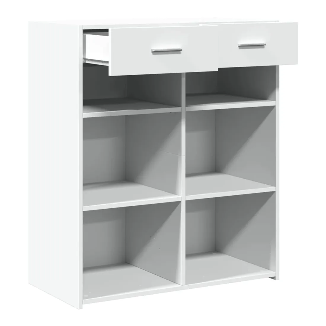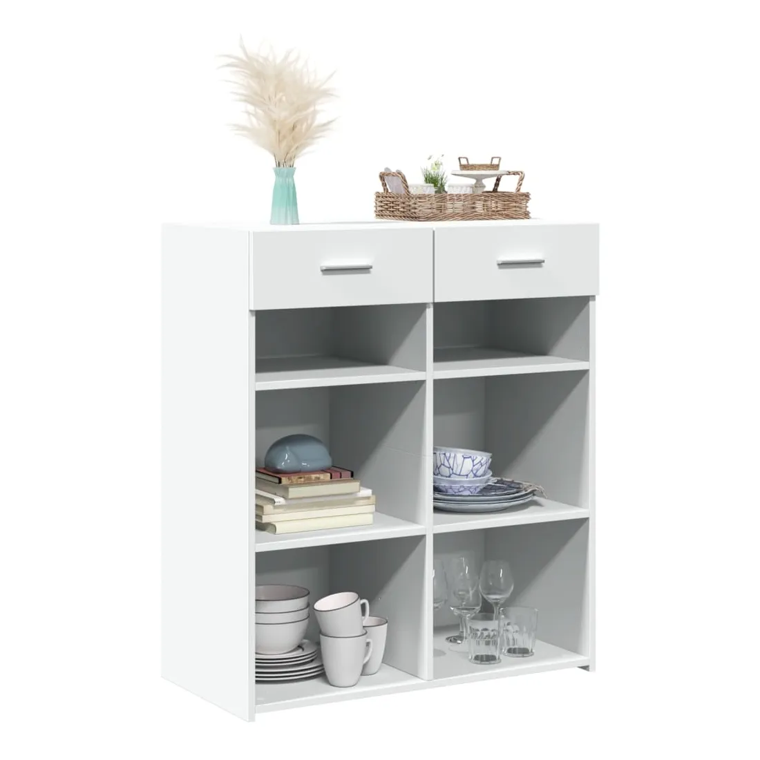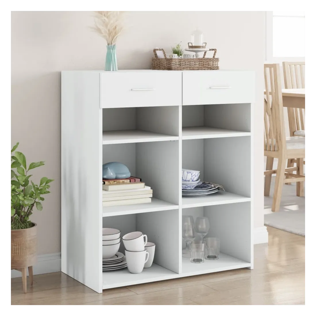 Ce buffet classique est destiné à être un supplément décoratif et pratique à votre maison. Matériau durable : le bois d'ingénierie est d'une qualité exceptionnelle avec une surface lisse et se caractérise également par sa solidité, sa stabilité et sa résistance à l'humidité.Grand espace de rangement : ce buffet avec 2 tiroirs offre un grand espace de rangement pour garder vos différents articles essentiels quotidiens bien organisés et facilement accessibles. Facile à nettoyer : l'armoire est facile à nettoyer à l'aide d'un chiffon humide et nécessite peu d'entretien.Attention :Pour éviter qu'il ne bascule, ce produit doit être utilisé avec le dispositif de fixation murale fourni.