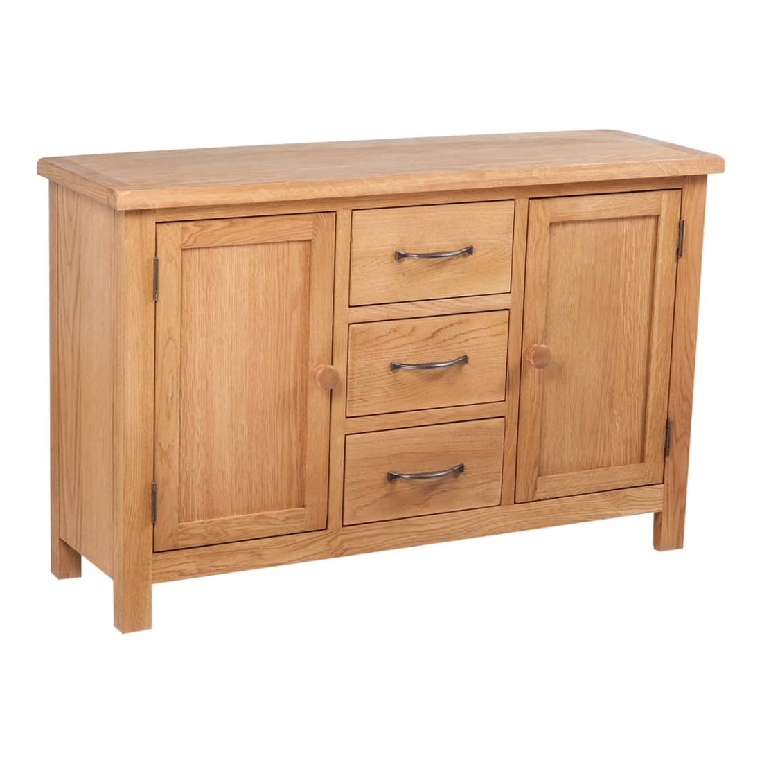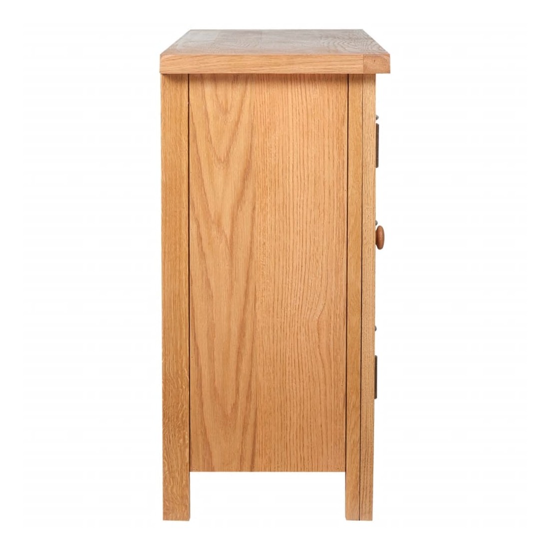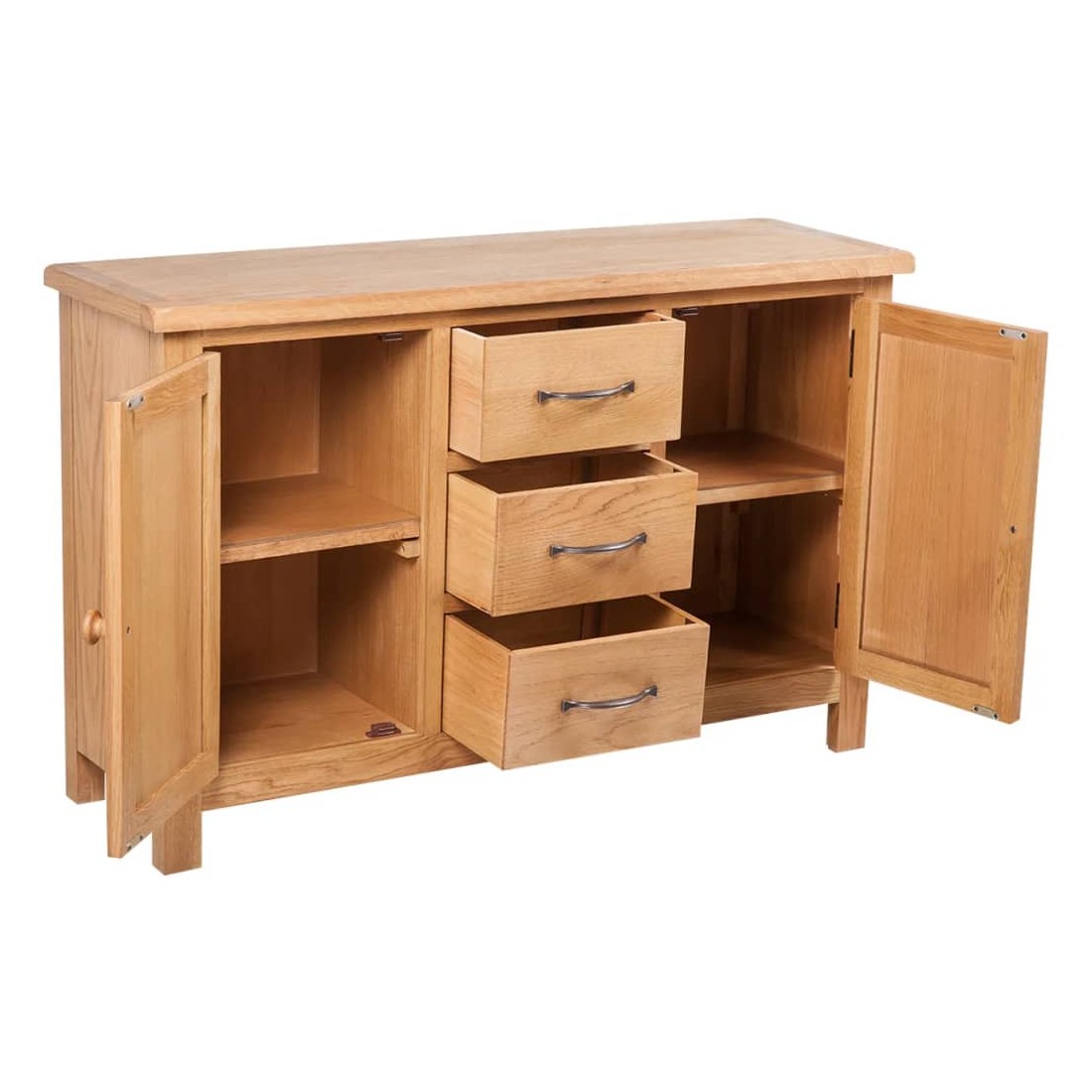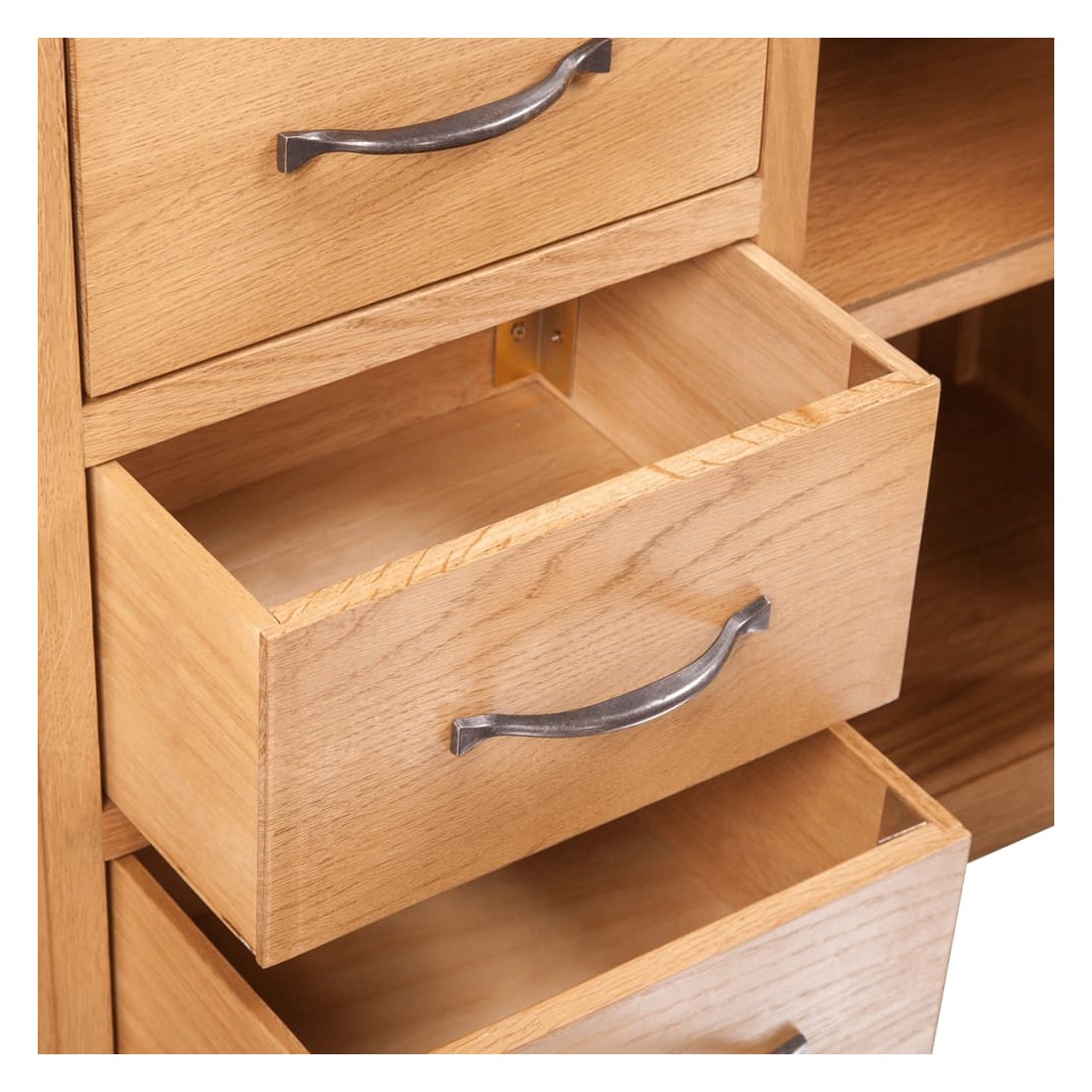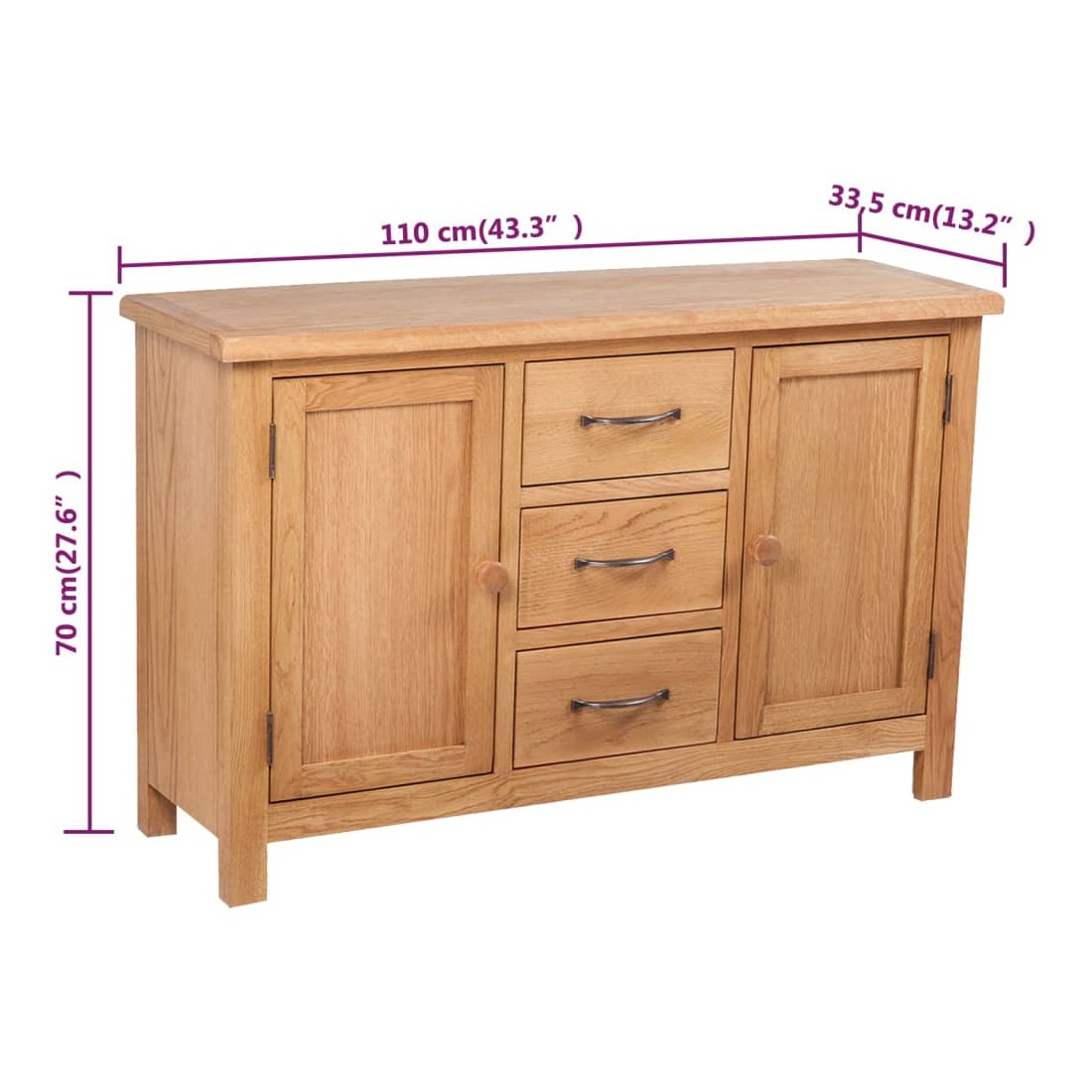 Notre buffet en bois de haute qualité, avec son aspect rustique, sera un excellent supplément à votre salon, salle à manger, couloir, etc. Ce buffet est habilement conçu en bois de chêne massif durable et hautement fonctionnel. Ses trois tiroirs et deux placards ont amplement d'espace pour ranger la vaisselle dans votre cuisine ou la papeterie dans votre bureau. L'assemblage est très facile.