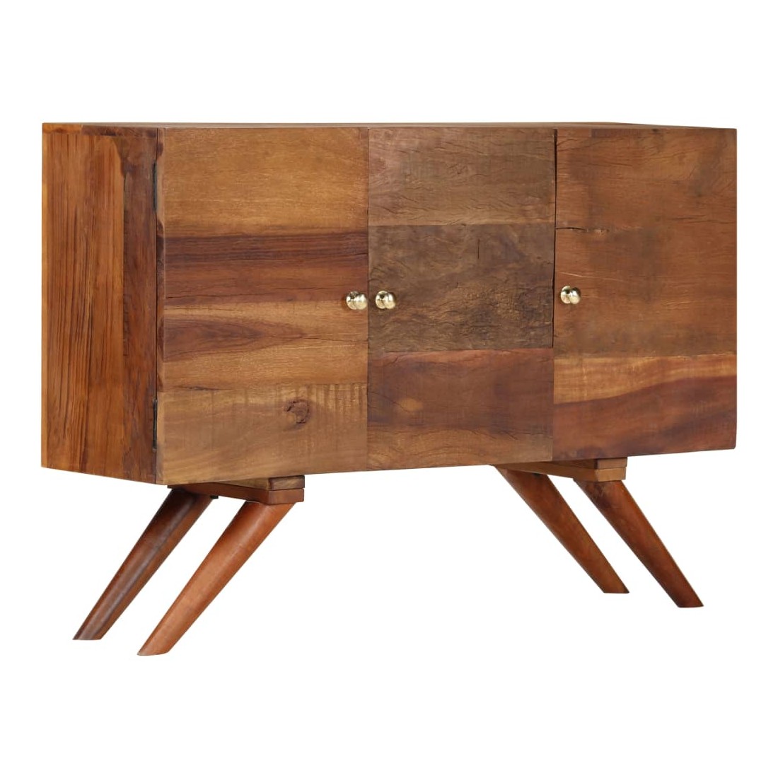 Ce buffet en bois massif sera un supplément décoratif ainsi que pratique à votre décoration. Le meuble est fait de bois de récupération massif provenant des solives, des planchers et des poutres de soutien de vieux bâtiments démolis et peut être composé de différents types de bois tels que le pin, le teck, le hêtre, le chêne, le cèdre, le bois de manguier, l'acacia, etc. Cela signifie que le bois de récupération conserve les caractéristiques de ces différents types de bois. Le bois de récupération est déjà vieilli, patiné et séché, donc il ne rétrécit pas et ne se plie pas. Les beaux grains de bois rendent chaque meuble unique et légèrement différent l'un de l'autre. Les signes d'usure et la structure du grain visible témoignent de la riche histoire du bois et donnent au meuble un aspect chaleureux et authentique. Chaque étape du processus de fabrication est réalisée avec le plus grand soin, que ce soit le polissage, la peinture ou le laquage. Conçu avec un grand espace de rangement, le buffet garde vos magazines, livres, DVD et appareils multimédias bien organisés et à portée de main. Il est facile à assembler. Remarque importante : les couleurs et les grains peuvent varier d'une pièce à l'autre, rendant chacune de nos armoires unique. La livraison est aléatoire, garantissant l'exclusivité et l'individualité de votre produit.
