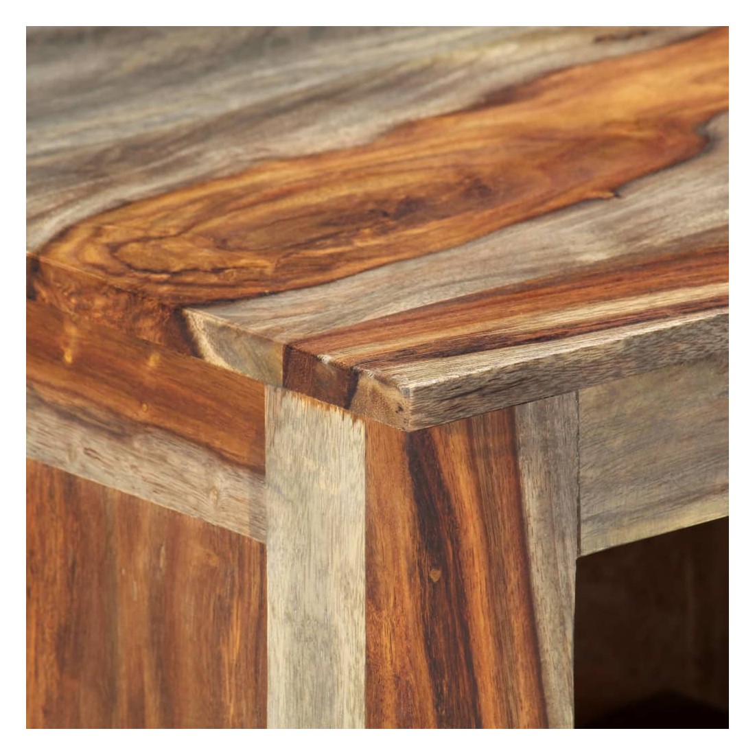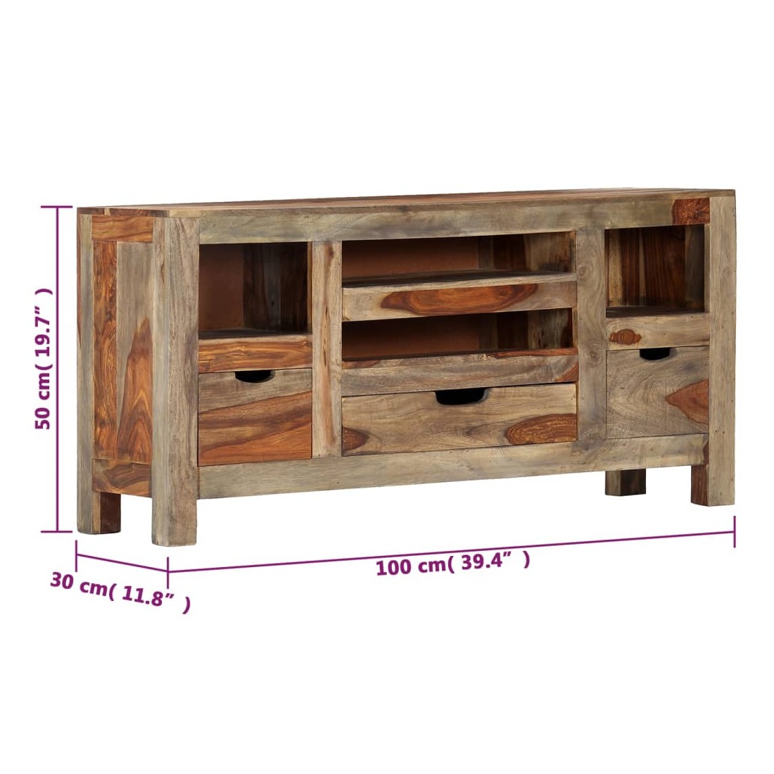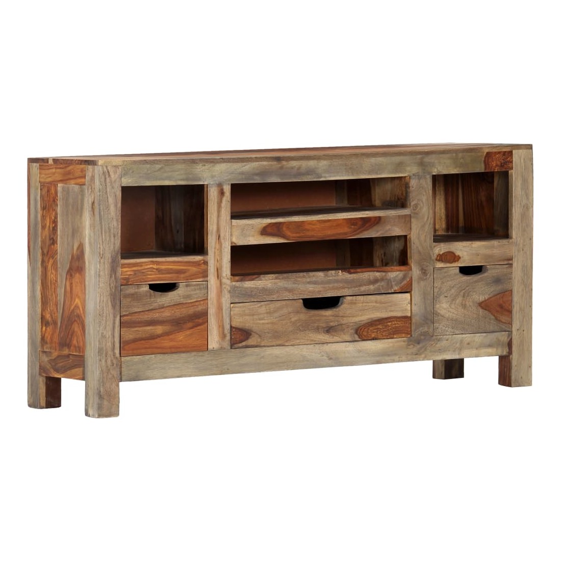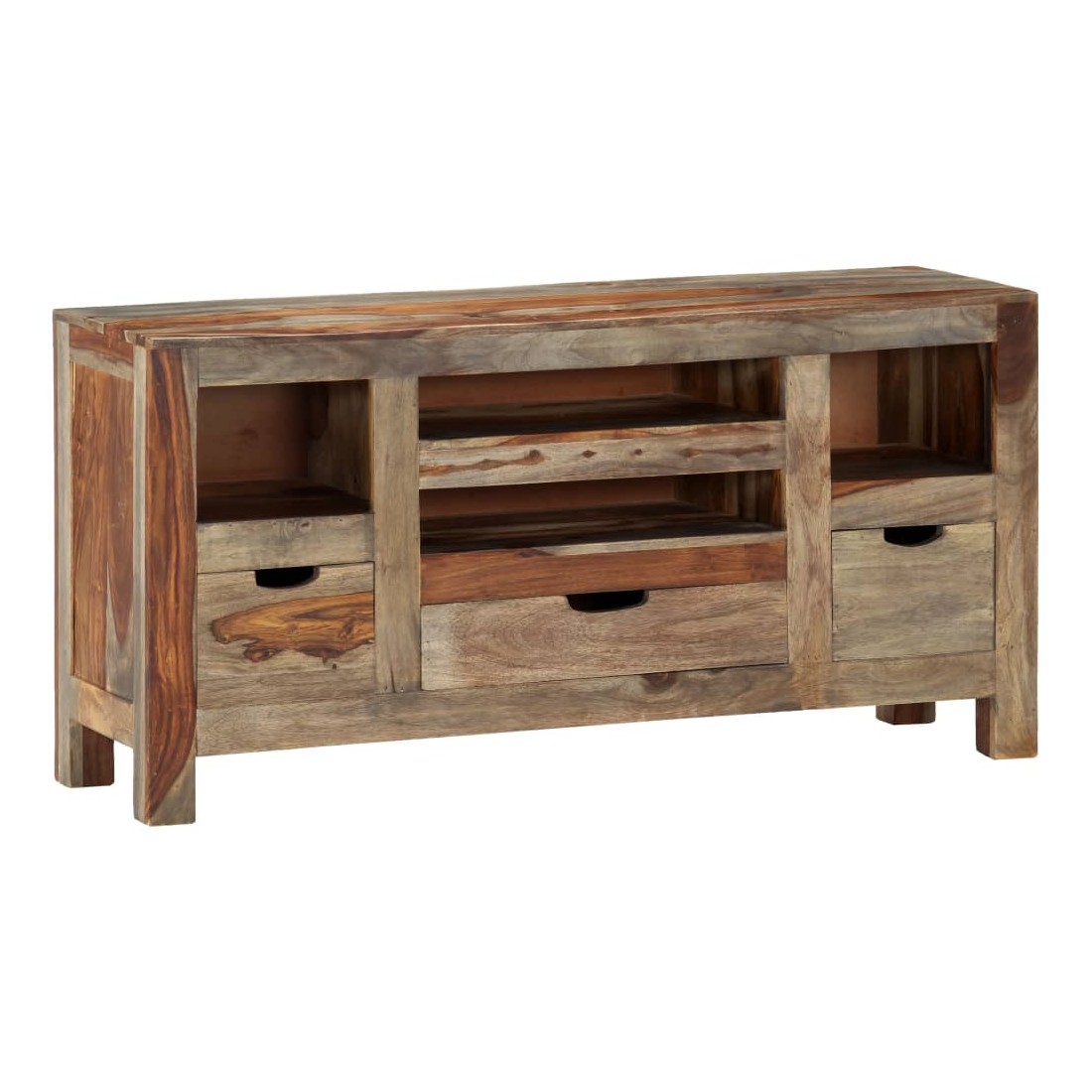 Introduisez une touche de charme rustique dans votre décoration intérieure avec notre élégant buffet en bois massif ! Le meuble est fait de bois massif , un bois dur tropical qui est célèbre pour ses grains naturels et sa texture lisse, également connu sous le nom de bois de rose ou palissandre. De plus, il ne se déforme pas, ne se fend pas et résiste à la pourriture naturelle. En conséquence, ce superbe meuble TV est extrêmement stable, durable et accrocheur. La fabrication exquise garantit que chaque étape du processus est réalisée avec le plus grand soin, que ce soit le polissage ou le laquage. Notre armoire en bois est entièrement fabriquée à la main et les grains de bois esthétiques rendent chaque pièce unique et légèrement différente l'une de l'autre. De plus, ce buffet dispose de 3 tiroirs et de 4 compartiments ouverts, offrant suffisamment d'espace pour ranger votre appareil multimédia, livres et autres articles divers. Remarque importante : les grains de bois varient d'une pièce à l'autre, rendant chaque pièce unique. La livraison est aléatoire, ce qui garantit l'exclusivité et l'individualité de votre produit.
