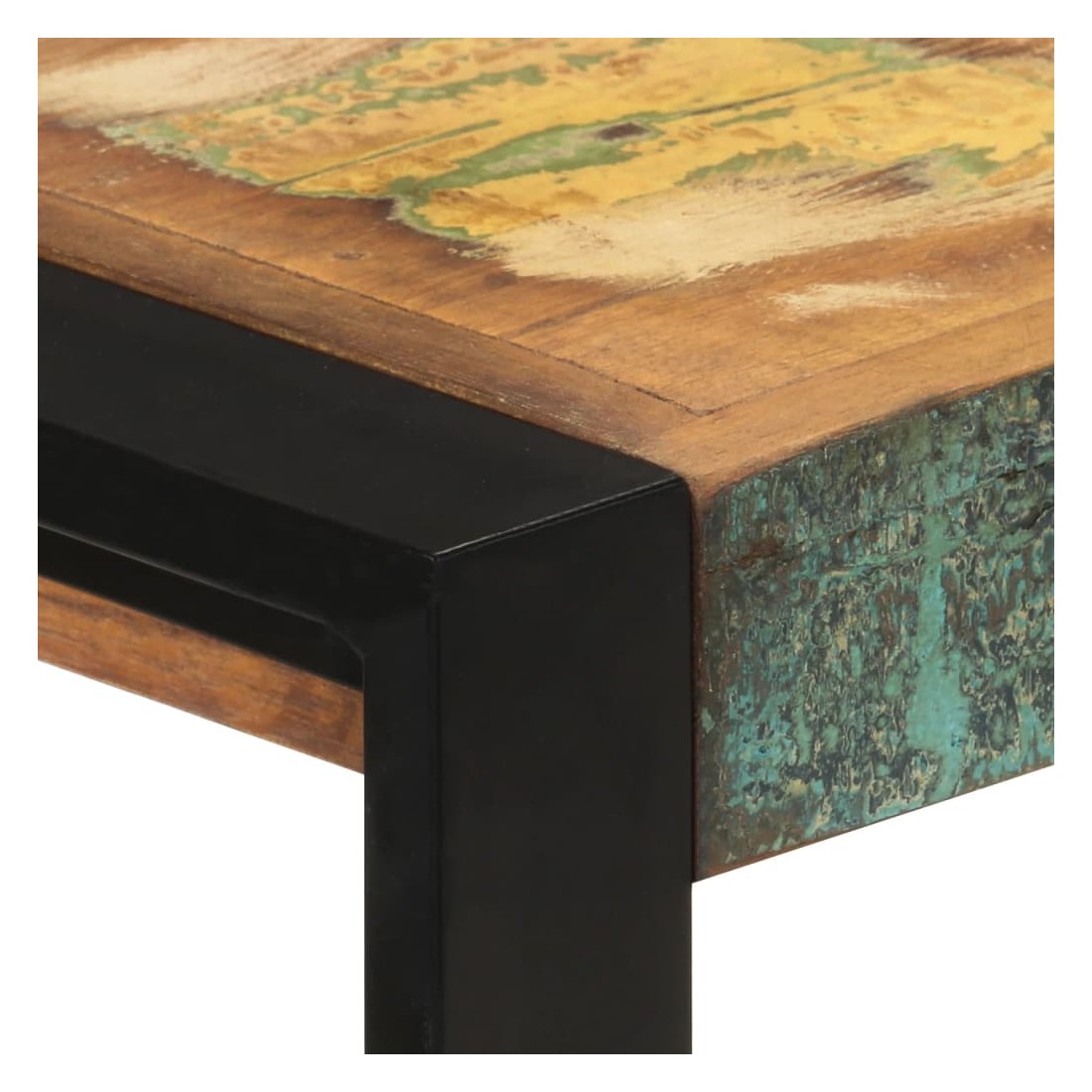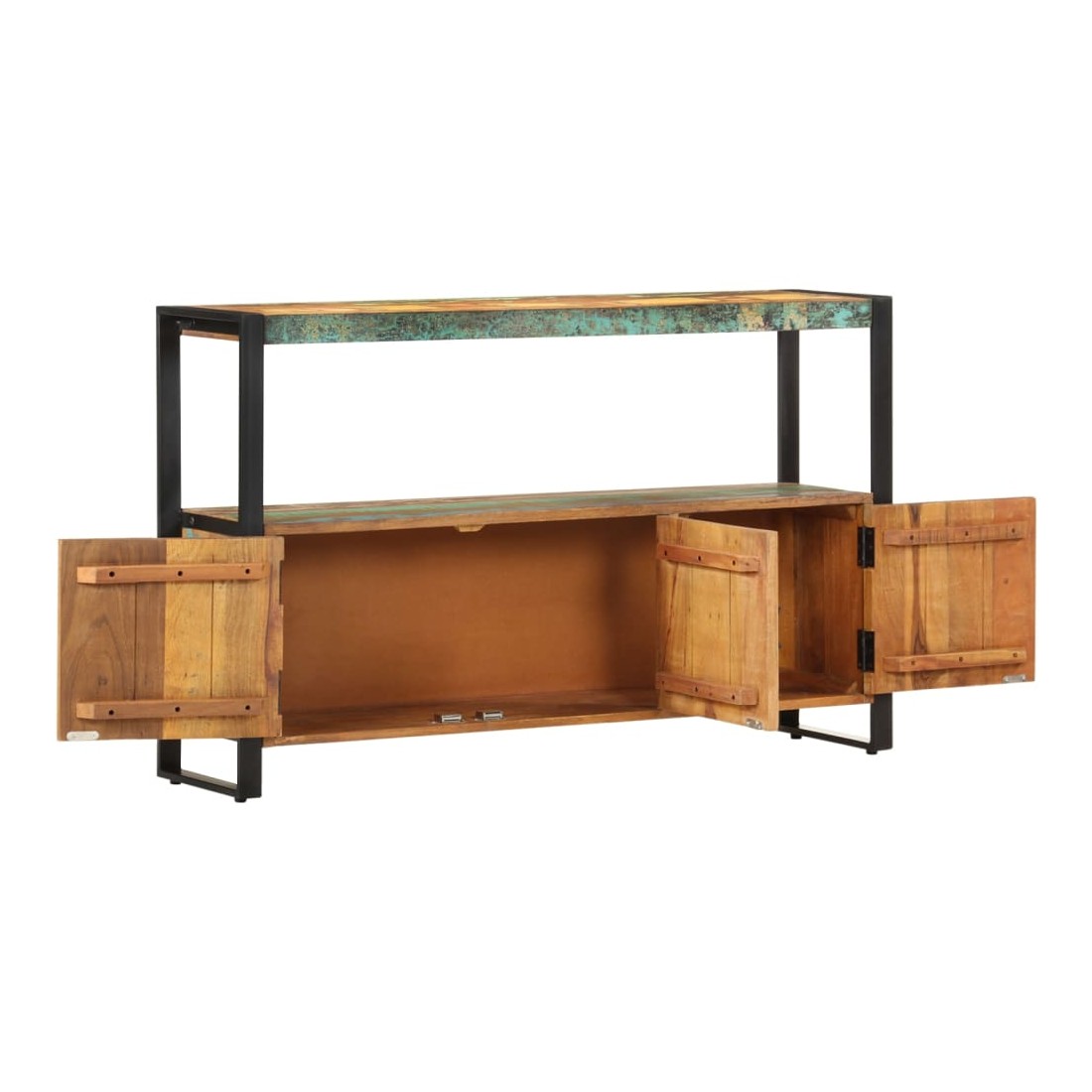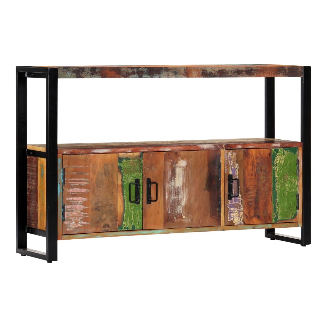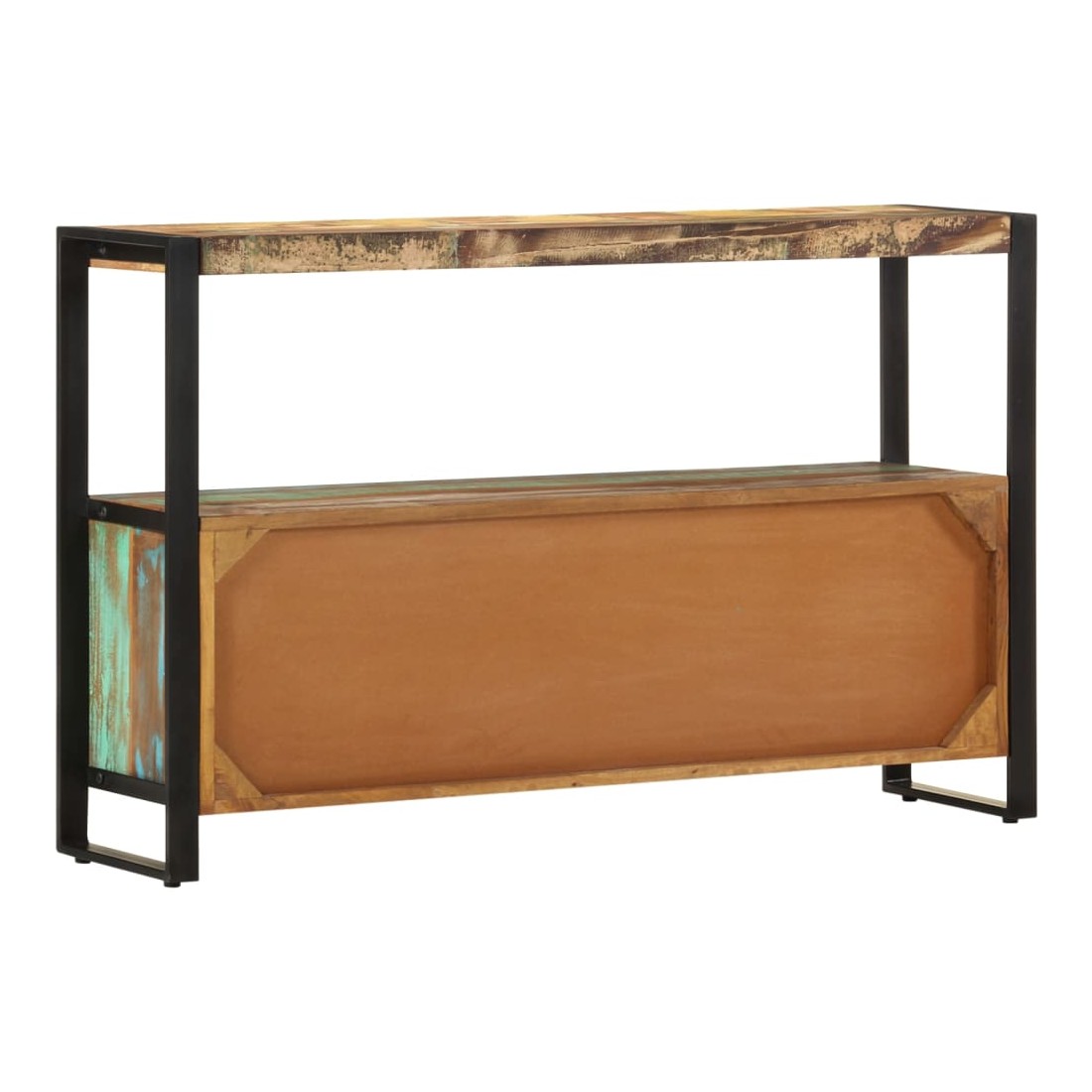 Sophistiqué et élégant, ce buffet en bois rappelle le charme vintage et le style industriel avec son cadre en acier enduit de poudre et son bois de récupération massif. Il sera certainement un supplément distinctif à votre maison. Cette table d'appoint est faite de bois de récupération solide provenant des solives, des planchers et des poutres de soutènement d'anciens bâtiments démolis et peut être composée de différents types de bois comme la pinède, le teck, le hêtre, le chêne, le cèdre, le bois de manguier, l'acacia, etc. Cela signifie que le bois de récupération conserve les caractéristiques de ces différents types de bois. Le bois de récupération est déjà vieilli, érodé et séché, donc il ne rétrécit ni se plie. Le savoir-faire exquis et les grains de bois esthétiquement attrayants