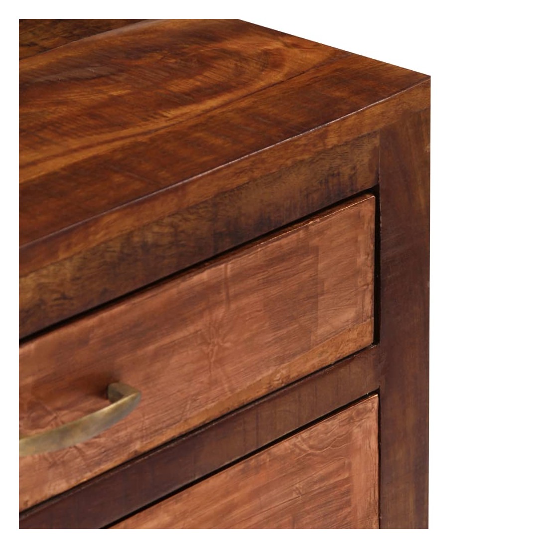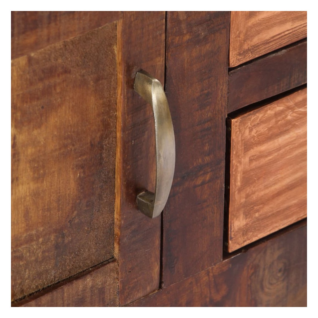 Ce buffet dégage un charme intemporel qui sera un supplément accrocheur à votre décoration intérieure. Cette armoire vintage est fabriquée en bois de manguier solide, un bois dur à grains denses. Le bois brut de manguier a non seulement la force de supporter le poids, mais résiste également à l'usure du temps. En conséquence, cette table d'appoint est extrêmement stable, durable et accrocheuse. Le savoir-faire exquis et les grains de bois élégants rendent chaque meuble distinctif et légèrement différent l'un de l'autre. De plus, cette armoire en bois solide dispose de 2 tiroirs et d'1 armoire avec porte, offrant un espace de stockage pour vos vêtements, livres, ainsi que divers autres articles. Remarque importante : Les couleurs et le grain du bois peuvent varier d'une pièce à l'autre,