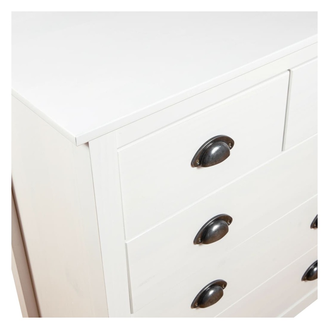 Le buffet moderne en bois est conçu pour être un supplément intemporel à votre décoration intérieure. L'armoire compacte dispose de 5 tiroirs coulissants, offrant suffisamment d'espace pour garder les petits objets organisés et à portée de main. De plus, le dessus de table rectangulaire peut être utilisé pour placer une corbeille de fruits ou afficher des objets décoratifs tels que des cadres photo ou des plantes en pot. Le meuble de rangement est facile à assembler. L'armoire latérale est également facile à nettoyer avec un chiffon sec.