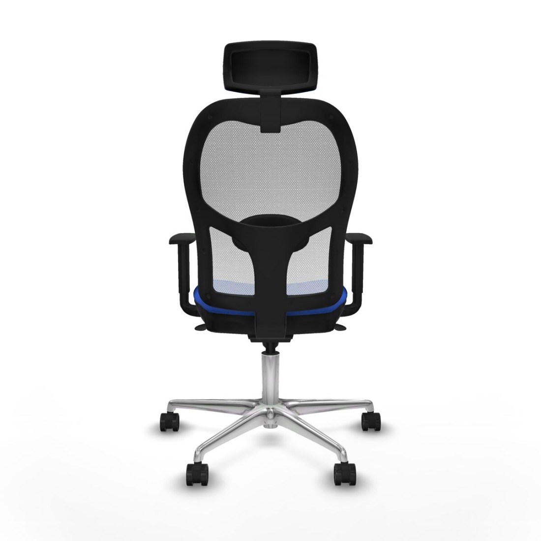 Piqueras y CrespoThe office chair with headrest 1D086N2 by Piqueras y Crespo belongs to the Jorquera category and is designed to provide an ergonomic and comfortable experience in professional environments requiring intensive use of up to 24 hours daily. This office chair stands out for its elegant and modern blue color, which fits perfectly in any workspace. It features a 2D adjustable headrest and a 1D lumbar support that help maintain correct posture and reduce the incidence of lower back pain, an essential detail for users who spend long hours seated. Its 5-position synchro mechanism allows adjustment of the backrest and seat inclination according to needs, while the backrest remains fixed to provide stability and constant support. Additionally, the seat height is fully adjustable, ranging from 48 to 61 cm, adapting to different heights and comfort preferences. The 1D adjustable armrests offer extra support for the arms during work, enhancing overall ergonomics. The chair has an interior seat reinforced with high-density injected polyurethane foam (50 mm and 50 Kg/m3), covered with a breathable mesh finish that promotes ventilation and prevents heat buildup, ideal for staying cool throughout the day. Its structure includes a polished aluminum 5-star base with a 720 mm diameter, a chrome piston for height adjustment, and 65 mm nylon wheels that facilitate mobility without damaging the floor. It supports a maximum weight of 120 kg, ensuring robustness and durability for demanding users. This chair is certified according to UNE-EN-1335, guaranteeing compliance with quality and ergonomic standards for office furniture. In summary, the Jorquera office chair by Piqueras y Crespo is a functional and sturdy option that combines attractive design with technical features promoting comfort, postural health, and efficiency during continuous work.