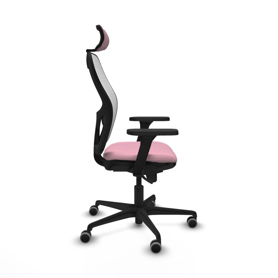Piqueras y CrespoThe Piqueras y Crespo 3D036G2 office chair with headrest is an ergonomic and functional solution designed for intensive use of up to 24 hours daily, making it a reliable choice for demanding professional environments. This office chair in pink combines attractive design with features focused on comfort and postural support. It includes a synchron mechanism with 5 positions that allows adjusting the backrest and seat tilt to suit different working postures, along with an adjustable height ranging from 48 cm to 61 cm, enabling personalized positioning for various users. Its structure features a headrest adjustable in two dimensions that provides cervical support and enhances comfort during long sessions. The 3D armrests offer multidimensional support, adjusting in height, depth, and angle, helping reduce arm and shoulder fatigue. The fixed backrest has a PVC frame and breathable mesh that promotes ventilation, keeping the seating experience fresh even after long hours. The high-density injected foam (50 mm thick and 50 Kg/m³) ensures lasting comfort and proper support on the seat, which has a reinforced PVC interior with a honeycomb structure for greater durability. The chair’s base is made of nylon with 5 spokes and a diameter of 680 mm, ensuring stability and mobility, and is equipped with 65 mm rubber-coated wheels specially designed for parquet floors, allowing smooth and silent movement without damaging the surface. It also features a black secretary lift piston for precise height adjustment. The chair supports a maximum recommended weight of 120 Kg and complies with UNE-EN-1335 standards, guaranteeing ergonomic and safety requirements. Its mesh and fabric finish, combined with the pink design, make this model an economical and modern alternative, ideal not only for offices but also for home workspaces or reception areas where functionality, aesthetics, and comfort are sought in a professional-use chair. In summary, this model offers a complete balance of advanced ergonomics, adaptability, and practical design for those needing a durable, breathable office chair.