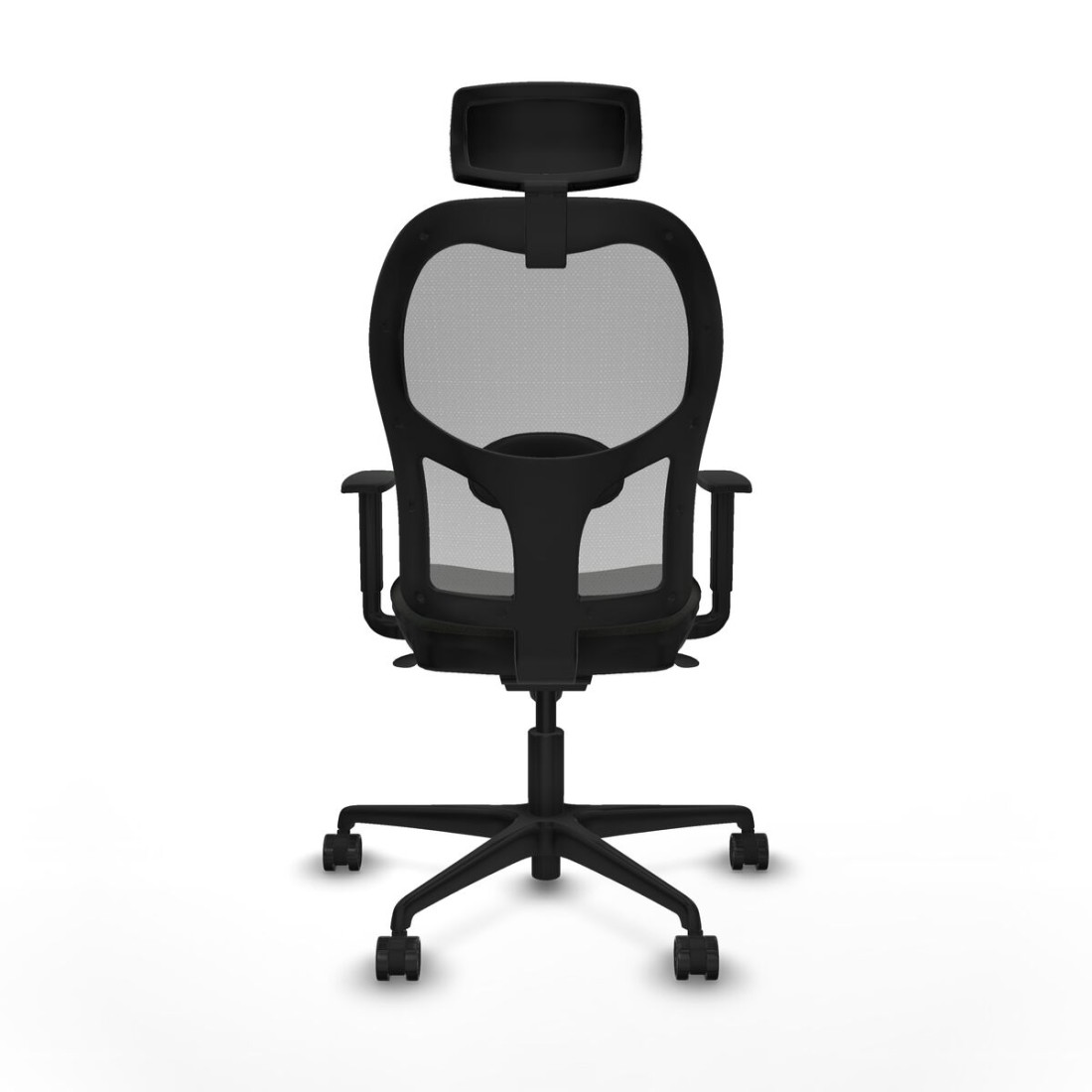 Piqueras y CrespoThe Jorquera office chair with headrest, model 1D036N2 from Piqueras y Crespo is designed to offer comfort and functionality in work environments requiring intensive use, supporting up to 24 continuous hours. Its robust construction supports a maximum weight of 120 kg, making it suitable for various users. This office chair combines a fixed backrest with a headrest adjustable in two dimensions (2D), providing additional ergonomic neck support, along with an adjustable lumbar support (1D) that promotes correct posture and reduces fatigue during long shifts. The 1D armrests allow forearm rest, increasing comfort while working. Its adjustment system includes a synchron mechanism with 5 positions that lets you tilt both the backrest and seat to suit user needs and ensure a comfortable, healthy posture, complemented by an adjustable seat height from 48 to 61 cm and a total height ranging from 121 to 134 cm. The 5-star nylon base with a 680 mm diameter and 65 mm nylon wheels with steel axle and pin ensure stability and silent mobility. The seat features an internal structure reinforced with PVC and a polyurethane foam core of 50 mm thickness and 50 Kg/m³ density, providing a durable and ergonomic seat. The exterior finish combines mesh and fabric in black, materials that enhance breathability, maintaining a comfortable temperature during use. Additionally, this chair includes a black gas lift that complements its sober, professional design, certified according to UNE-EN-1335 standards and BIFMA certification, guaranteeing product quality and safety. Weighing approximately 18 kg, the Jorquera chair is an ergonomic and functional solution, ideal for teleworking and office spaces demanding durable, adaptable furniture for long workdays. Its design balances durability with a focus on ergonomics and continuous comfort, positioning it as a recommended option in its category.