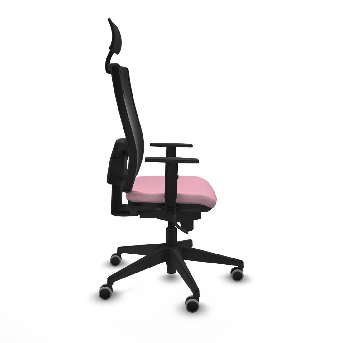Piqueras y CrespoThe Horna office chair from the renowned manufacturer Piqueras y Crespo, model 1D066G1, is a seat designed to offer a high level of comfort and functionality in demanding work environments. It is an office chair with a fixed headrest and a 100% PES breathable mesh backrest that promotes ventilation and prevents heat buildup during long sessions. It features a synchronised mechanism with 5 positions that allows simultaneous adjustment of the backrest and seat tilt, ensuring an ergonomic posture tailored to each user. It also includes adjustable lumbar support and a headrest that provides extra support for the cervical area, helping to prevent muscle discomfort. The seat height is adjustable between 46 and 53 cm, facilitating proper adaptation to different heights, supported by a height-adjustable backrest, which expands personalised adjustment options. The 1D arms offer ergonomic arm support and rest smoothly, increasing comfort by reducing tension in the shoulders and neck. Its structure incorporates a 5-spoke nylon base with fiberglass, 640 mm in diameter, ensuring stability and durability, while its 65 mm rubber-coated wheels are designed for quiet and safe movement on parquet or other delicate flooring. The injected foam with a density of 50 Kg/m³ and 50 mm thickness protects the seat’s integrity during intensive use without losing comfort. This model supports a maximum weight of 120 Kg and is certified according to UNE-EN-1335 standards, guaranteeing quality and safety. Its elegant pink finish adds a modern and distinctive touch to the workspace, combining aesthetics and practicality. Weighing approximately 20 kg and made with carefully selected materials, the Horna chair represents a balanced solution for offices requiring durable, ergonomic furniture suitable for continuous 24-hour use. In summary, this office chair is a solid technical option that integrates advanced adjustment, lumbar support, breathable design, and durable components for reliable performance in professional settings.