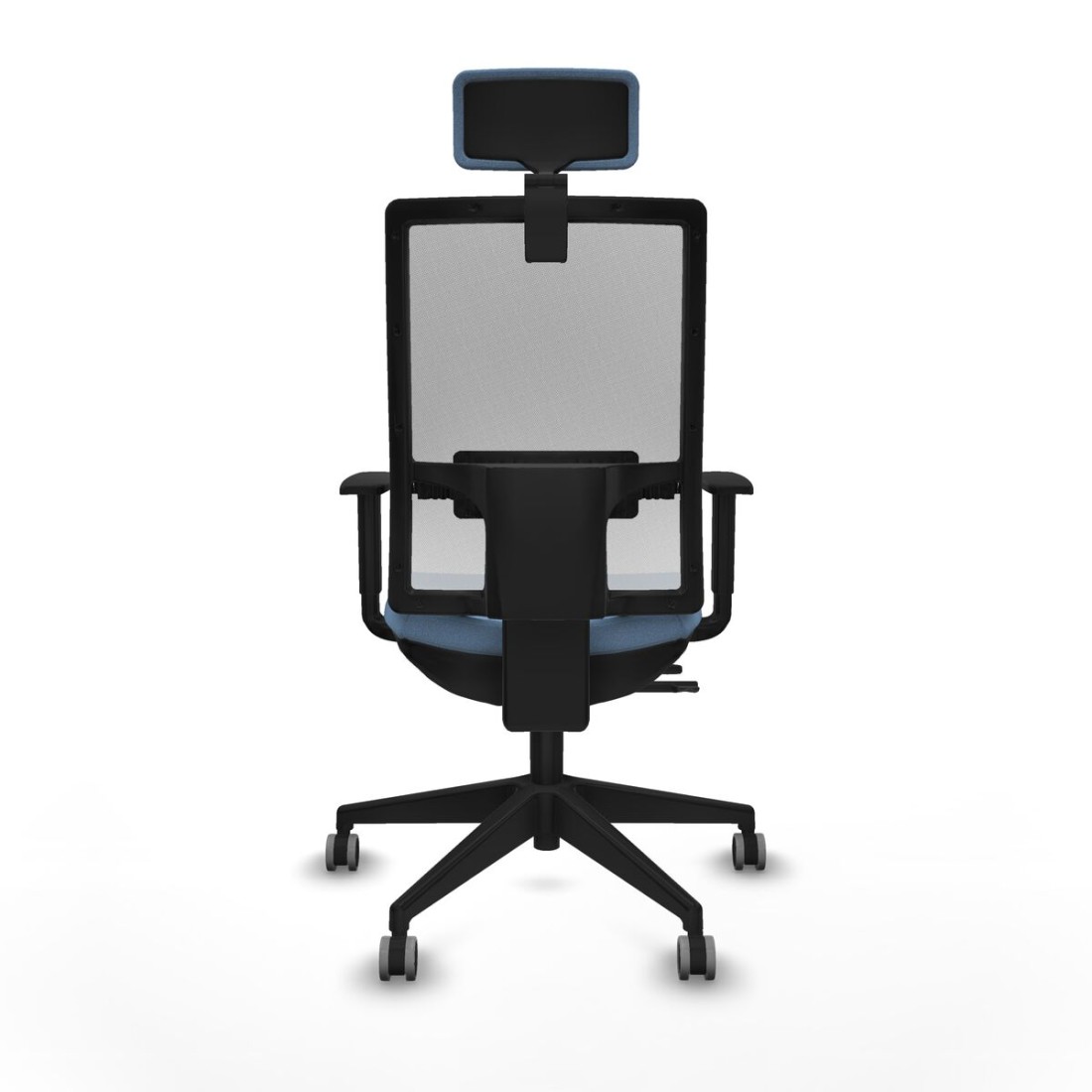 Piqueras y CrespoThe office chair with headrest model 1D066G2 from Piqueras y Crespo is an ergonomic solution designed for intensive use up to 24 hours, ideal for professional environments demanding comfort and support during long shifts. This model combines typical features of an office chair with functions of a gaming chair, offering great versatility and adaptability. Its main structure includes a nylon and fiberglass pyramidal base with 5 spokes measuring 640 mm in diameter, providing stability and durability, while its 65 mm rubberized nylon wheels ensure smooth and quiet movement on various floor types. The chair features a 2D adjustable headrest and a 1D adjustable lumbar support, key elements to maintain correct posture and reduce cervical and lumbar fatigue. It also includes 1D armrests that offer extra forearm support, and a Sincro/Traslack mechanism that allows simultaneous and comfortable adjustment of the backrest and seat tilt, with three locking positions and up to 5 cm horizontal seat slide for maximum customization. The seat is made of laminated wood and high-density injected polyurethane foam (50 mm and 25 Kg/m3), covered by a 1 mm plastic outer shell that ensures seat integrity, while the backrest has a 100% PES breathable mesh fabric that promotes ventilation and helps keep cool during extended use. Seat height is adjustable between 46 and 53 cm, adapting to different users, while total height ranges from 128 to 143 cm, offering full ergonomics. This chair, weighing approximately 17 kg and finished in an attractive sky blue color, complies with UNE-EN-1335 standards, certifying its quality and safety. Thanks to these technical features, the Horna chair combines functionality, durability, and comfort, becoming a reliable support for workstations requiring attention to postural health and furniture resilience. In short, it is an option that offers a balanced combination of design, ergonomics, and adjustability to enhance the workspace experience.