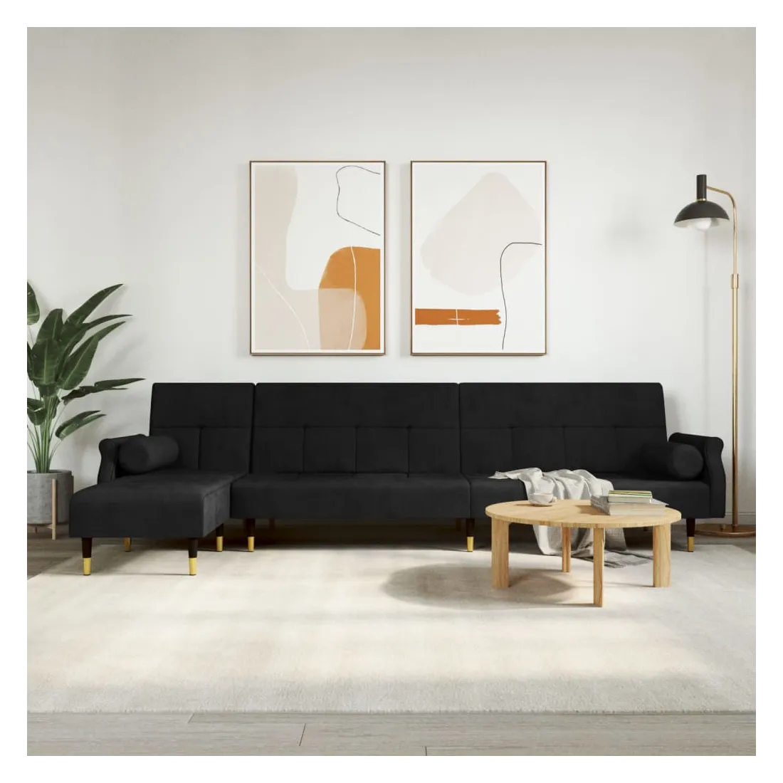 Ce canapé-lit en forme de L est parfait pour accueillir des invités pendant la nuit tout en offrant un espace confortable pour s'asseoir pendant la journée. Canapé-lit multifonctionnel : le canapé-lit est un choix judicieux pour les espaces limités. Il possède 3 positions convertibles pour s'asseoir, se prélasser et dormir, donc il peut être un canapé-lit inclinable confortable pour un usage quotidien ou un lit temporaire pour les invités.Velours doux : le velours est un tissu doux et luxueux qui se reconnaît à son tas dense de fibres uniformément coupées qui ont une touche lisse. Le tissu en velours présente un toucher doux distinctif, ce qui le rend confortable au toucher.Cadre robuste et stable : le cadre en contreplaqué du canapé-lit assure robustesse et stabilité.Expérience d'assise confortable : doté d'un revêtement en velours enveloppant une mousse haute densité, ce canapé-lit pliable offre un endroit confortable et douillet pour s'asseoir et dormir. Ses accoudoirs et son dossier offrent également une détente supplémentaire. Remarque :Le produit est assemblé à côté d'un canapé-lit et d'une chaise longue. Vous pouvez mettre la chaise longue à droite ou à gauche selon vos préférences.