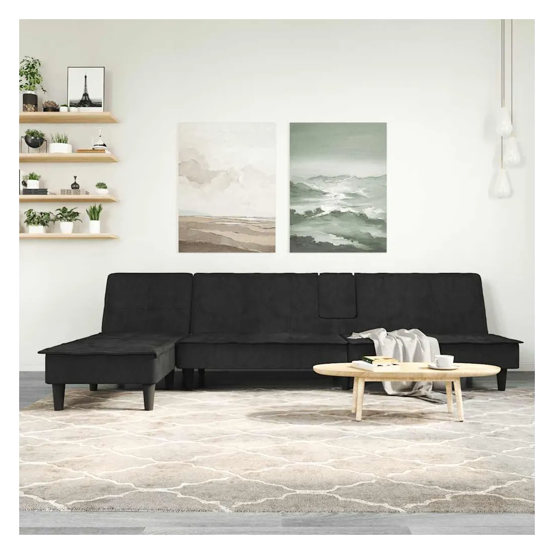 Ce canapé-lit en forme de L est parfait pour accueillir des invités pendant la nuit tout en offrant un espace confortable pour s'asseoir pendant la journée. Canapé-lit multifonctionnel : le canapé-lit est un choix judicieux pour les espaces limités. Il possède 3 positions convertibles pour s'asseoir, se prélasser et dormir, donc il peut être un canapé-lit inclinable confortable pour un usage quotidien ou un lit temporaire pour les invités.Velours doux : le velours est un tissu doux et luxueux qui se reconnaît à son tas dense de fibres uniformément coupées qui ont une touche lisse. Le tissu en velours présente un toucher doux distinctif, ce qui le rend confortable au toucher.Cadre robuste et stable : le cadre en contreplaqué du canapé-lit assure robustesse et stabilité.Design pratique : le canapé-lit de jour est équipé d'une table à thé pliable avec deux porte-gobelets. La table à thé est également équipée de deux types de ports USB, qui peuvent être utilisés pour recharger les téléphones, les tablettes, etc.Expérience d'assise confortable : doté d'un revêtement en velours enveloppant une mousse haute densité, ce canapé-lit pliable offre un endroit confortable et douillet pour s'asseoir et dormir. Son dossier offre également une détente supplémentaire. Remarque :Le produit est assemblé à côté d'un canapé-lit et d'une chaise longue. Vous pouvez mettre la chaise longue à droite ou à gauche selon vos préférences.