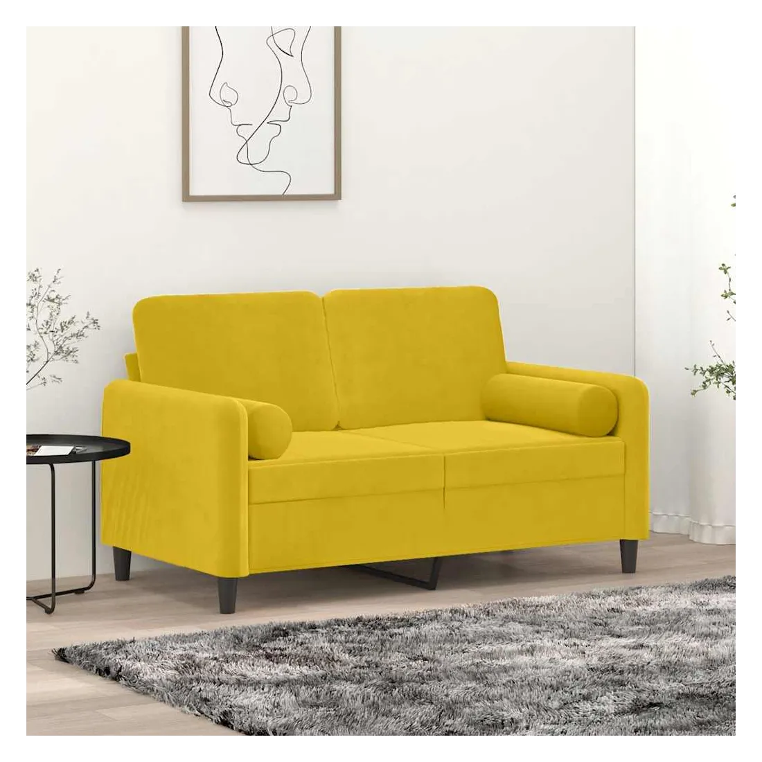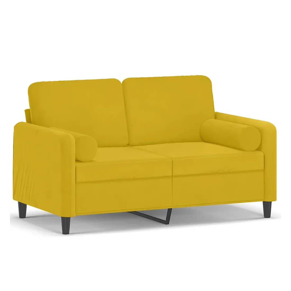 Ce canapé 2 places, qui se démarque par son design moderne et ses coussins décoratifs, sera un excellent endroit pour discuter, regarder la télévision ou simplement vous détendre. Velours doux : le velours est un tissu doux et luxueux qui se reconnaît à son tas dense de fibres uniformément coupées qui ont une touche lisse. Le tissu en velours présente un toucher doux distinctif, ce qui le rend agréable au toucher.Cadre robuste et stable : le cadre en métal du canapé de salon assure robustesse et stabilité.Housses d'oreillers amovibles : grâce à la fermeture éclair, les housses de ces oreillers de traversin sont faciles à retirer et à nettoyer en cas de besoin.Expérience d'assise confortable : le canapé est très confortable avec les sièges, les accoudoirs et les oreillers de dossier bien rembourrés. En outre, les oreillers décoratifs peuvent ajouter un confort supplémentaire lorsque vous êtes assis ou allongé.