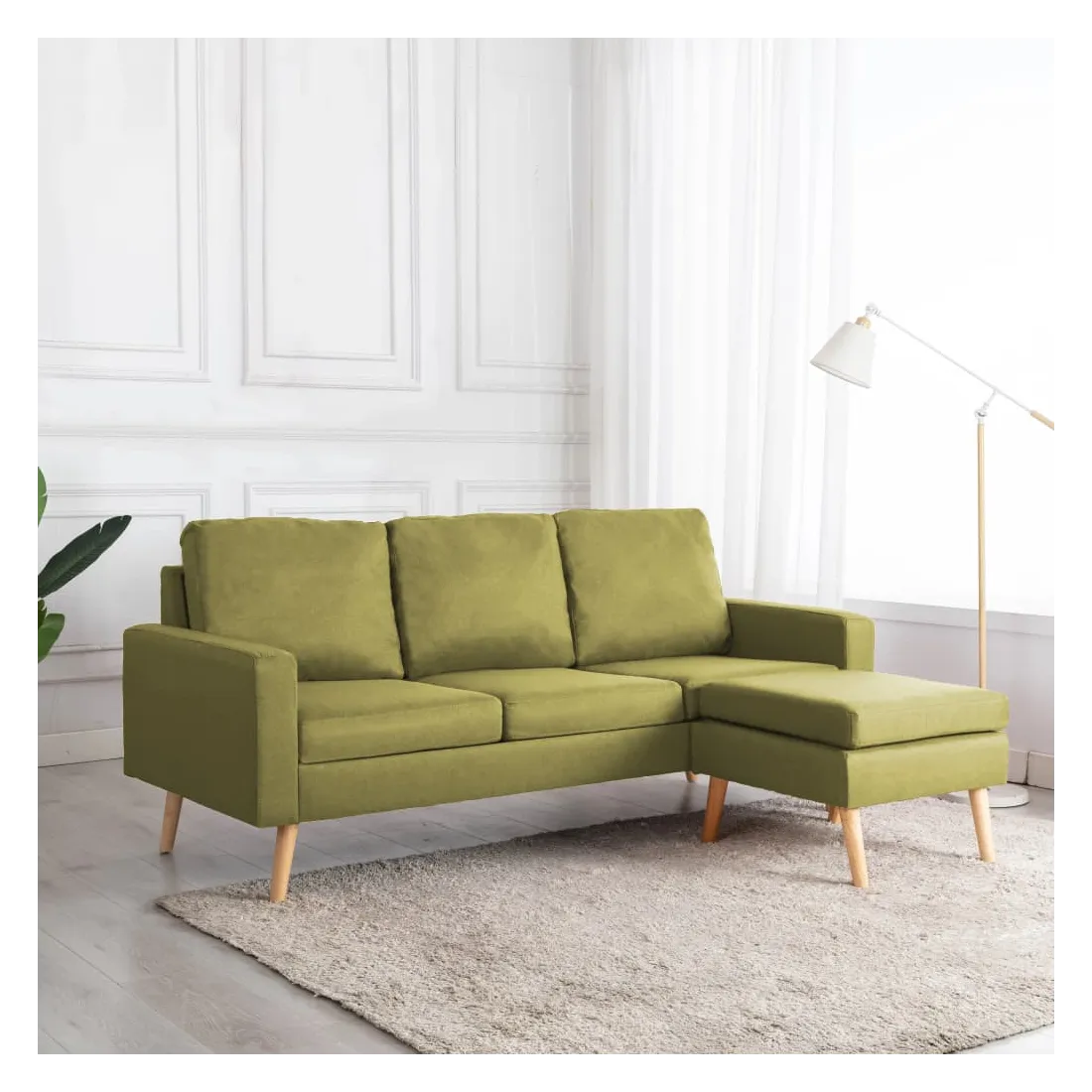 Ce canapé à 3 places avec repose-pied est conçu pour une expérience d'assise incroyable et répond parfaitement à vos besoins. Ce canapé est rembourré en tissu doux au toucher et dispose de coussins bien rembourrés, offrant un espace confortable pour vous détendre. Le cadre en bois assure le support et la stabilité de toute la construction. Vous pouvez placer le repose-pied n'importe où, selon votre confort et votre détente.