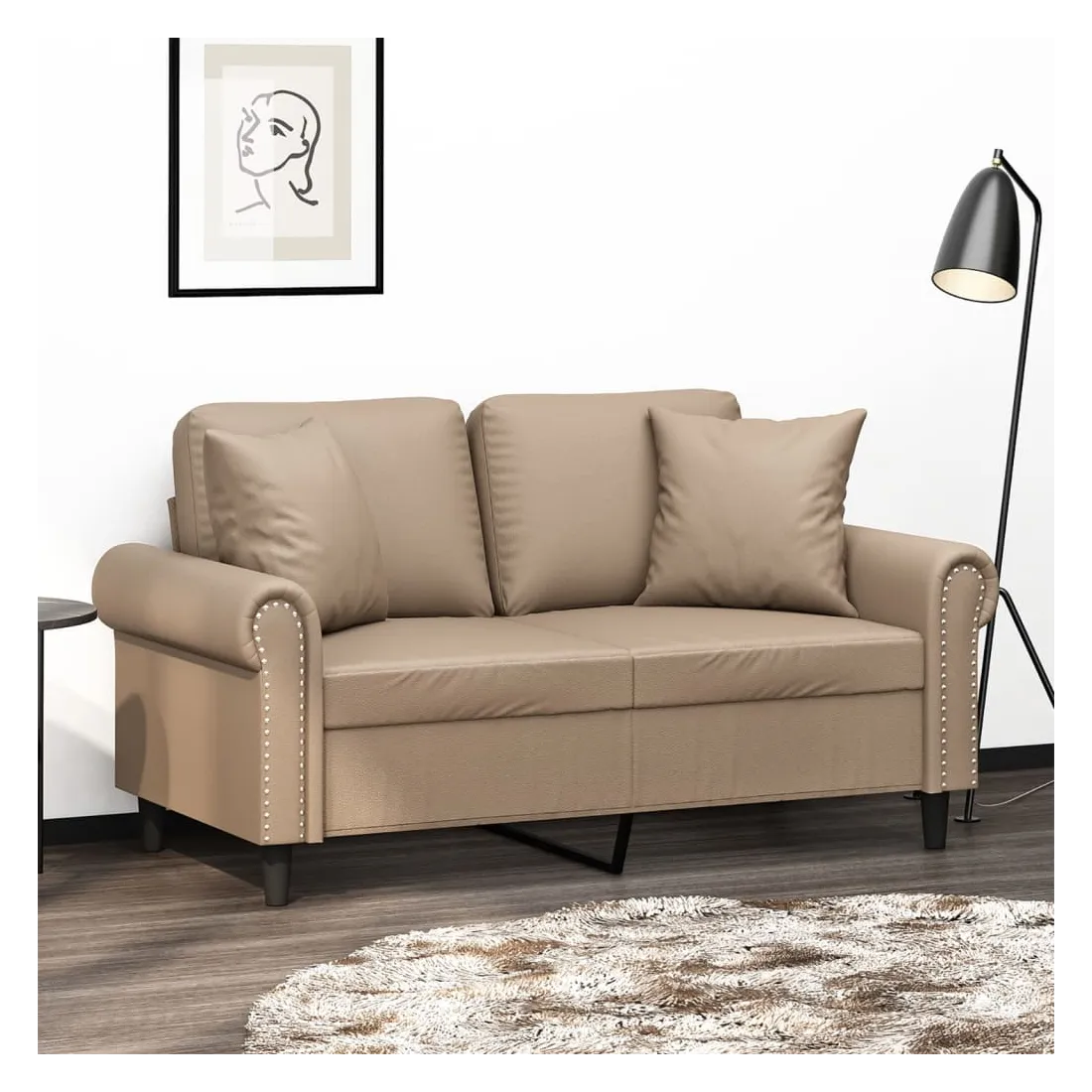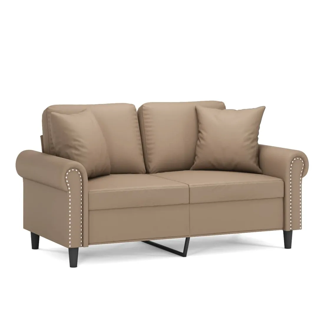 Ce canapé 2 places, qui se démarque par son design moderne et ses coussins décoratifs, sera un excellent endroit pour discuter, regarder la télévision ou simplement vous détendre. Similicuir durable : le similicuir de qualité supérieure est un matériau très durable. Il est résistant aux taches, ce qui le rend facile à nettoyer avec un chiffon humide. La surface lisse donne également un aspect luxueux et la beauté du cuir véritable.Cadre robuste et stable : le cadre en métal du canapé de salon assure robustesse et stabilité.Oreillers décoratifs avec inserts : ces oreillers de canapé sont livrés avec des inserts en coton PP, vous n'avez donc pas besoin d'acheter des rembourrages.Expérience d'assise confortable : le canapé est très confortable avec les sièges, les accoudoirs et les oreillers de dossier bien rembourrés. En outre, les oreillers décoratifs peuvent ajouter un confort supplémentaire lorsque vous êtes assis ou allongé.
