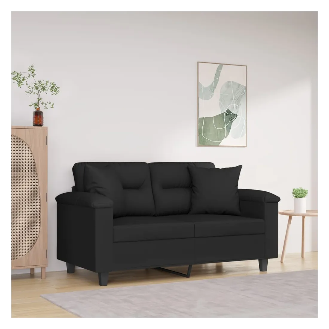 Ce canapé 2 places, qui se démarque par son design moderne et ses coussins décoratifs, sera un excellent endroit pour discuter, regarder la télévision ou simplement vous détendre. Microfibre résistant : le microfibre est un tissu synthétique composé de fibres ultra-fines, particulièrement résistantes aux taches. Le tissu en microfibre est un excellent choix pour le rembourrage des meubles en raison de sa durabilité et de son nettoyage facile.Cadre robuste et stable : le cadre en métal du canapé de salon assure robustesse et stabilité.Oreillers décoratifs avec inserts : ces oreillers décoratifs sont livrés avec des inserts en coton PP, vous n'avez donc pas besoin d'acheter des rembourrages.Expérience d'assise confortable : le canapé est très confortable avec les sièges, les accoudoirs et les oreillers de dossier bien rembourrés. En outre, les oreillers décoratifs peuvent ajouter un confort supplémentaire lorsque vous êtes assis ou allongé.
