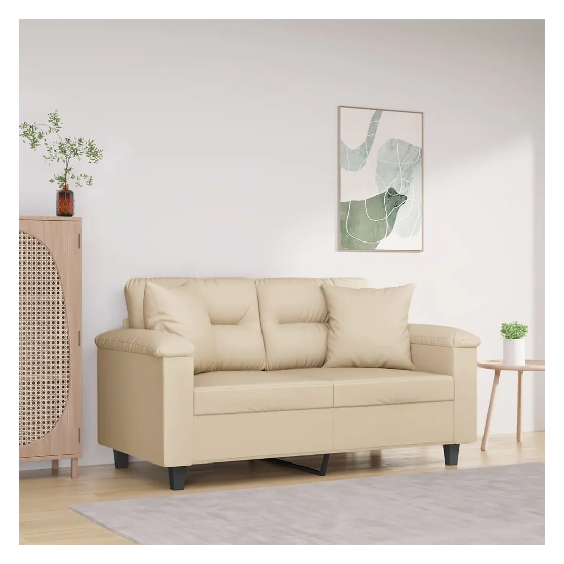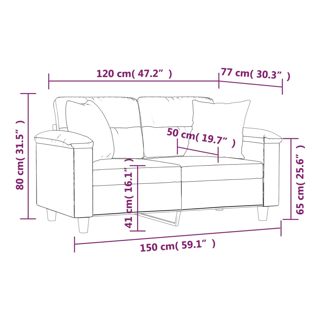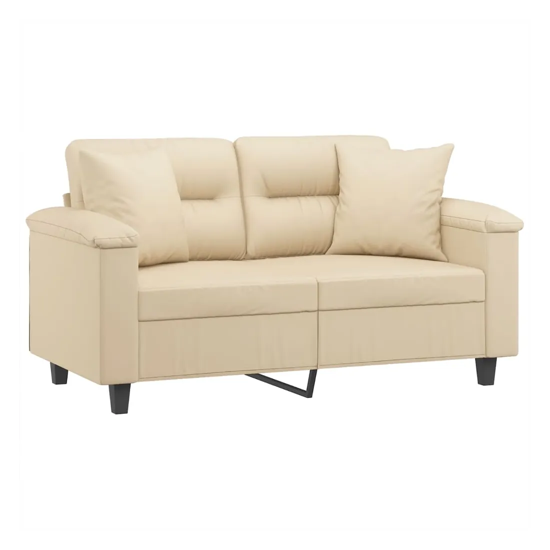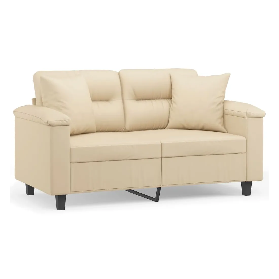 Ce canapé 2 places, qui se démarque par son design moderne et ses coussins décoratifs, sera un excellent endroit pour discuter, regarder la télévision ou simplement vous détendre. Microfibre résistant : le microfibre est un tissu synthétique composé de fibres ultra-fines, particulièrement résistantes aux taches. Le tissu en microfibre est un excellent choix pour le rembourrage des meubles en raison de sa durabilité et de son nettoyage facile.Cadre robuste et stable : le cadre en métal du canapé de salon assure robustesse et stabilité.Oreillers décoratifs avec inserts : ces oreillers décoratifs sont livrés avec des inserts en coton PP, vous n'avez donc pas besoin d'acheter des rembourrages.Expérience d'assise confortable : le canapé est très confortable avec les sièges, les accoudoirs et les oreillers de dossier bien rembourrés. En outre, les oreillers décoratifs peuvent ajouter un confort supplémentaire lorsque vous êtes assis ou allongé.