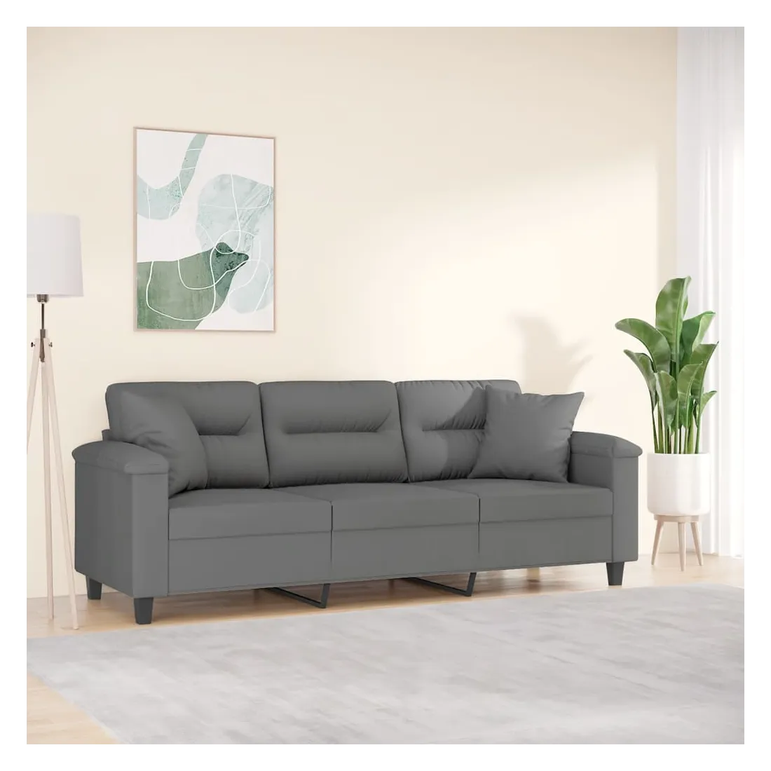 Ce canapé 3 places, qui se démarque par son design moderne et ses coussins décoratifs, sera un excellent endroit pour discuter, regarder la télévision ou simplement vous détendre. Microfibre résistant : le microfibre est un tissu synthétique composé de fibres ultra-fines, particulièrement résistantes aux taches. Le tissu en microfibre est un excellent choix pour le rembourrage des meubles en raison de sa durabilité et de son nettoyage facile.Cadre robuste et stable : le cadre en métal du canapé de salon assure robustesse et stabilité.Oreillers décoratifs avec inserts : ces oreillers décoratifs sont livrés avec des inserts en coton PP, vous n'avez donc pas besoin d'acheter des rembourrages.Expérience d'assise confortable : le canapé est très confortable avec les sièges, les accoudoirs et les oreillers de dossier bien rembourrés. En outre, les oreillers décoratifs peuvent ajouter un confort supplémentaire lorsque vous êtes assis ou allongé.