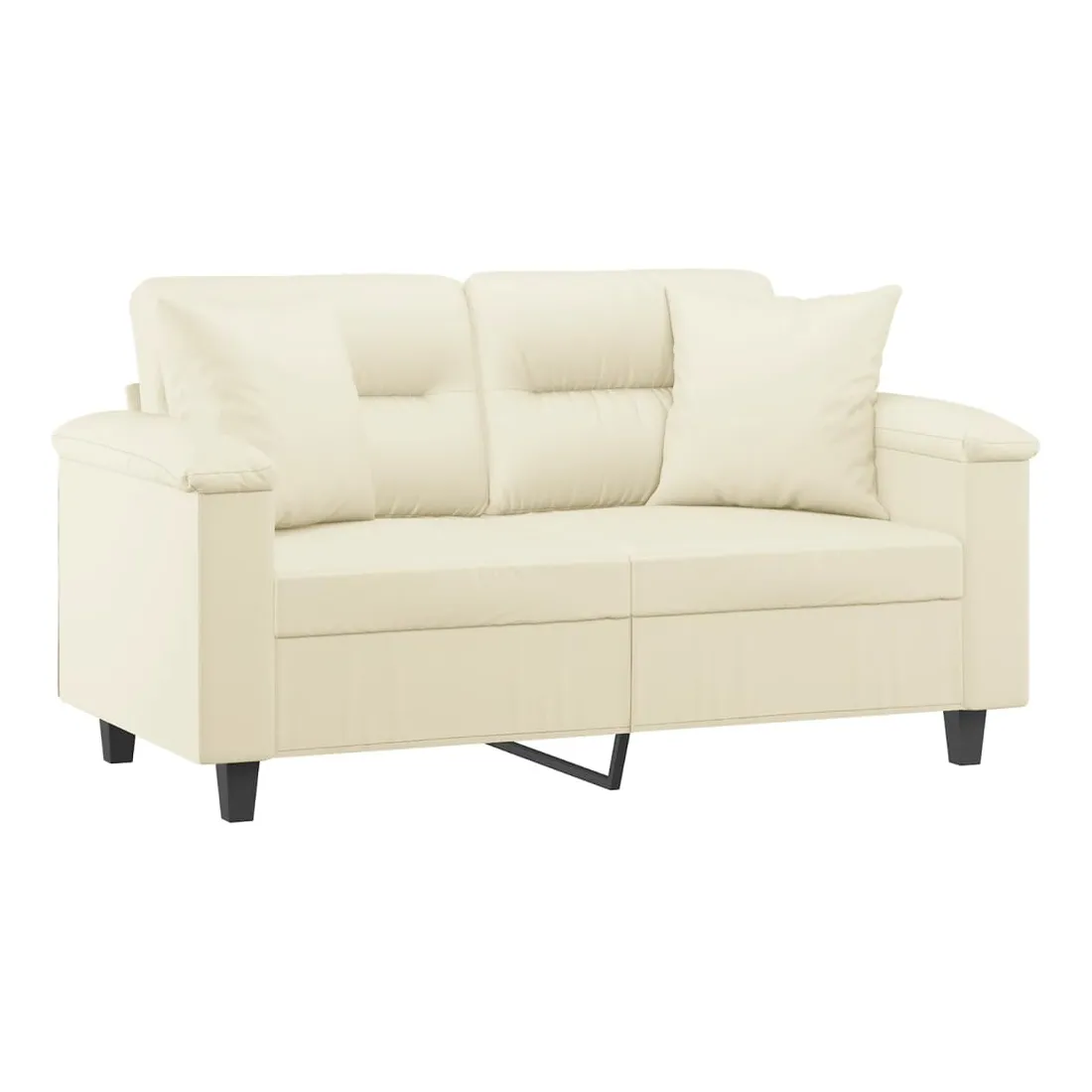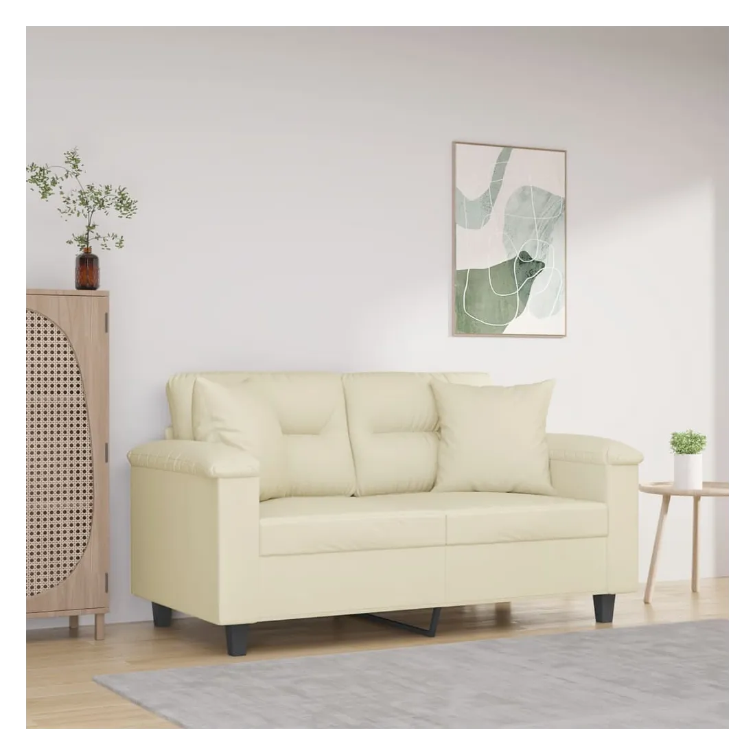 Ce canapé 2 places, qui se démarque par son design moderne et ses coussins décoratifs, sera un excellent endroit pour discuter, regarder la télévision ou simplement vous détendre. Similicuir durable : le similicuir de qualité supérieure est un matériau très durable. Il est résistant aux taches, ce qui le rend facile à nettoyer avec un chiffon humide. La surface lisse donne également un aspect luxueux et la beauté du cuir véritable.Cadre robuste et stable : le cadre en métal du canapé de salon assure robustesse et stabilité.Oreillers décoratifs avec inserts : ces oreillers décoratifs sont livrés avec des inserts en coton PP, vous n'avez donc pas besoin d'acheter des rembourrages.Expérience d'assise confortable : le canapé est très confortable avec les sièges, les accoudoirs et les oreillers de dossier bien rembourrés. En outre, les oreillers décoratifs peuvent ajouter un confort supplémentaire lorsque vous êtes assis ou allongé.