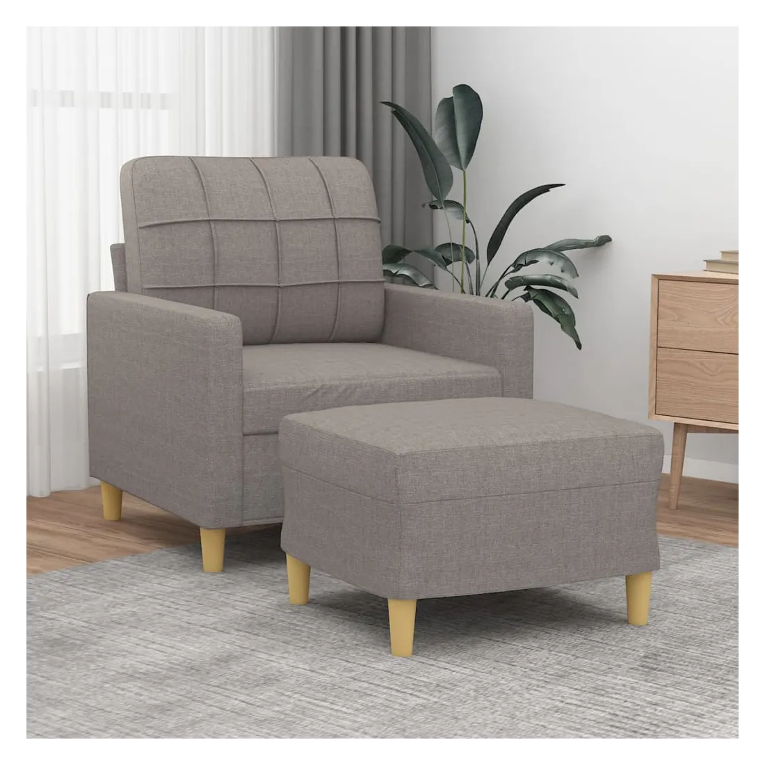 Ce fauteuil avec repose-pied est un excellent endroit pour discuter, lire, regarder la télévision ou simplement vous détendre. Il est destiné à être un point central de votre maison. Tissu durable : le tissu présente un aspect simple et épuré tout en restant respirant et durable.Structure robuste et stable : la structure en contreplaqué et en métal du canapé avec repose-pieds assure robustesse et stabilité.Expérience d'assise confortable : le fauteuil est très confortable avec le siège, les accoudoirs et le coussin de dossier bien rembourrés.Repose-pied polyvalent : ce repose-pied convient pour reposer vos pieds lorsque vous êtes allongé dans un canapé ou un fauteuil inclinable, ou pour vous offrir un siège supplémentaire dans votre pièce. De plus, le design simple et la taille compacte le rendent idéal pour presque tous vos espaces de vie.Design accrocheur : doté d'un design simple mais moderne, ce canapé avec repose-pied est destiné à attirer l'attention dans votre pièce.