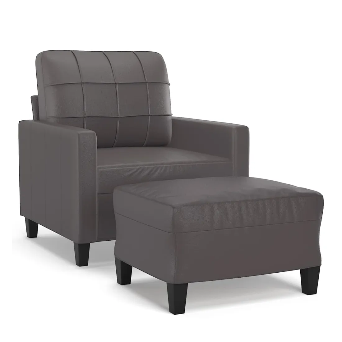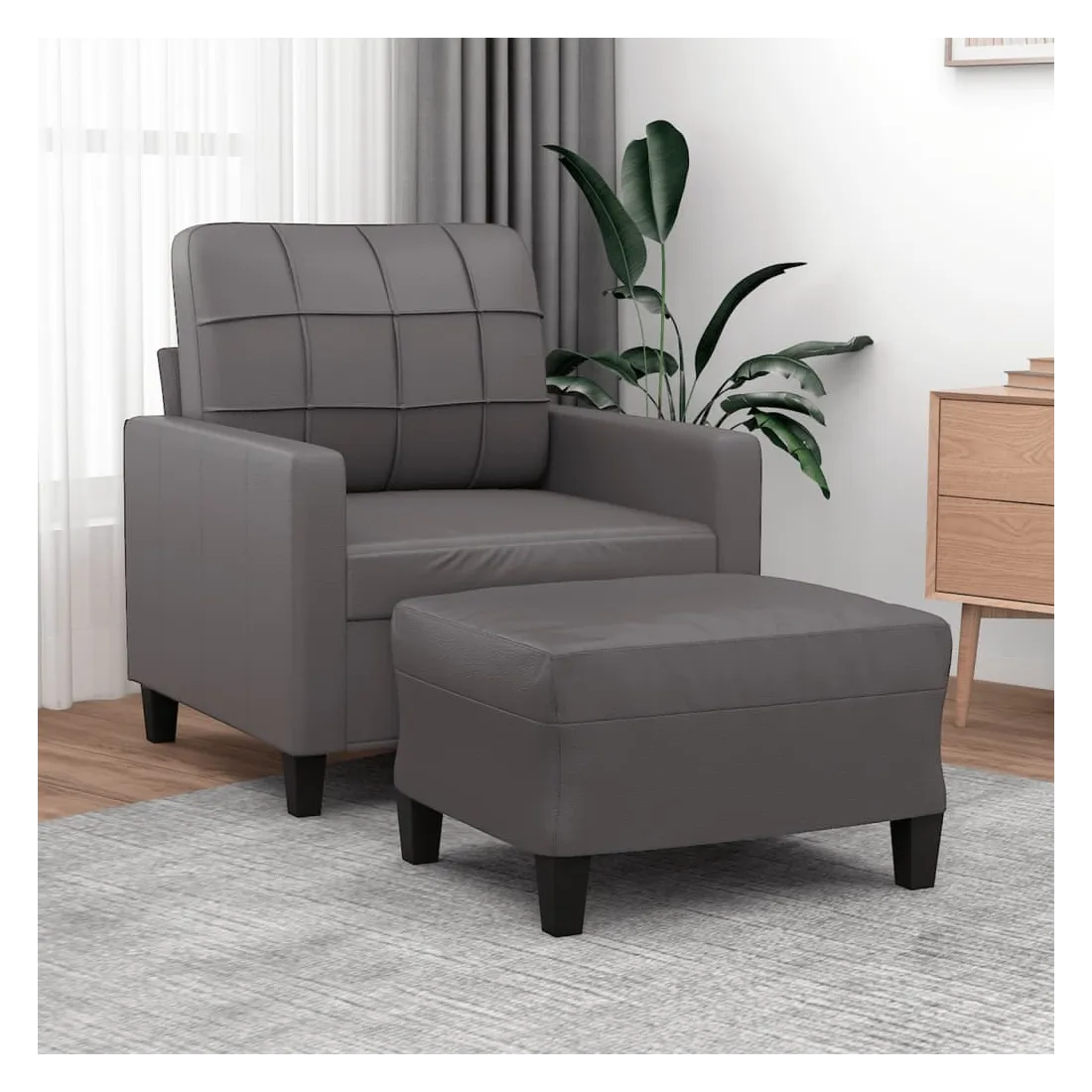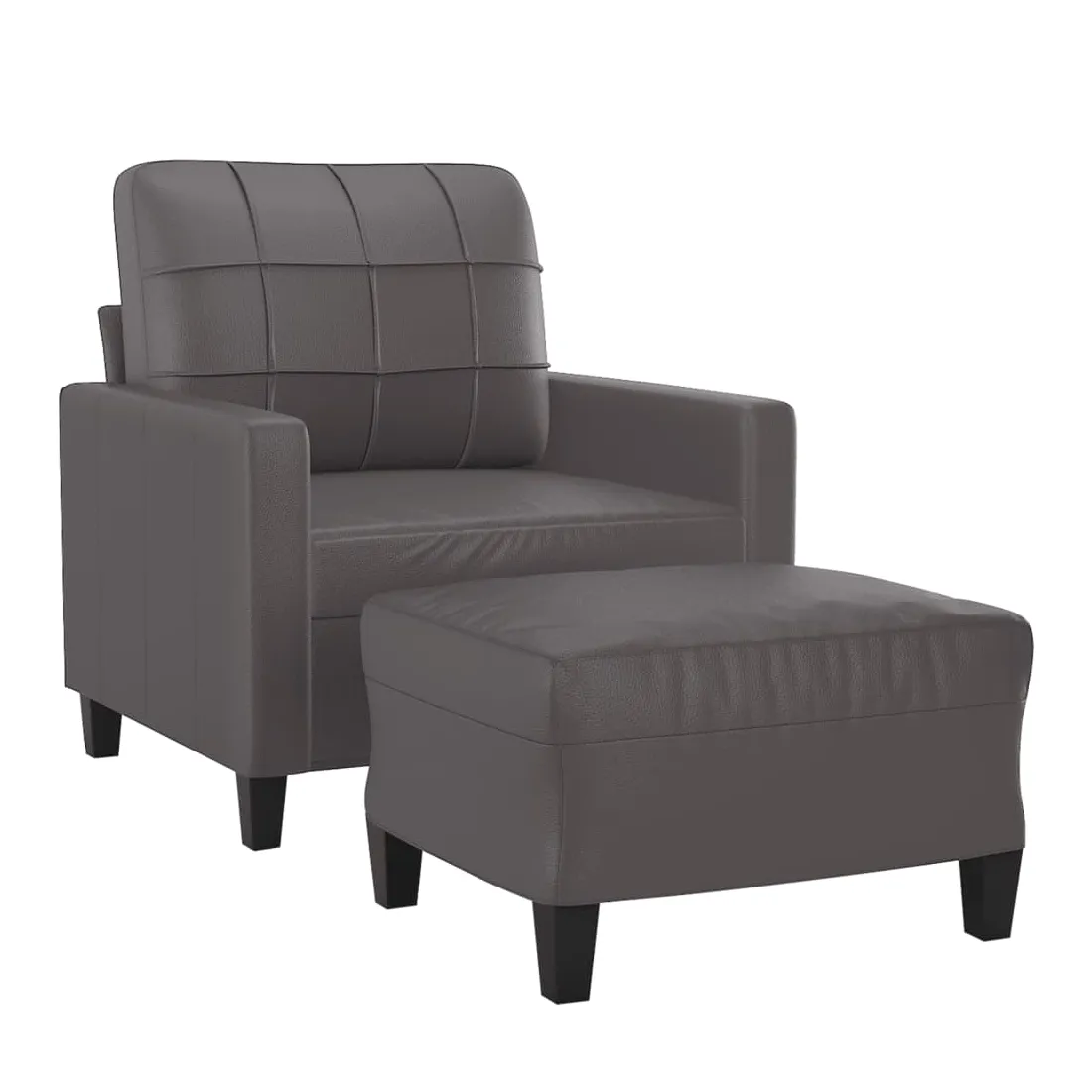 Ce fauteuil avec repose-pied est un excellent endroit pour discuter, lire, regarder la télévision ou simplement vous détendre. Il est destiné à être un point central de votre maison. Similicuir durable : le similicuir de qualité supérieure est un matériau très durable. Il est résistant aux taches, ce qui le rend facile à nettoyer avec un chiffon humide. La surface lisse donne également un aspect luxueux et la beauté du cuir véritable.Structure robuste et stable : la structure en contreplaqué et en métal du canapé avec repose-pieds assure robustesse et stabilité.Expérience d'assise confortable : le fauteuil est très confortable avec le siège, les accoudoirs et le coussin de dossier bien rembourrés.Repose-pied polyvalent : ce repose-pied convient pour reposer vos pieds lorsque vous êtes allongé dans un canapé ou un fauteuil inclinable, ou pour vous offrir un siège supplémentaire dans votre pièce. De plus, le design simple et la taille compacte le rendent idéal pour presque tous vos espaces de vie.Design accrocheur : doté d'un design simple mais moderne, ce canapé avec repose-pied est destiné à attirer l'attention dans votre pièce.