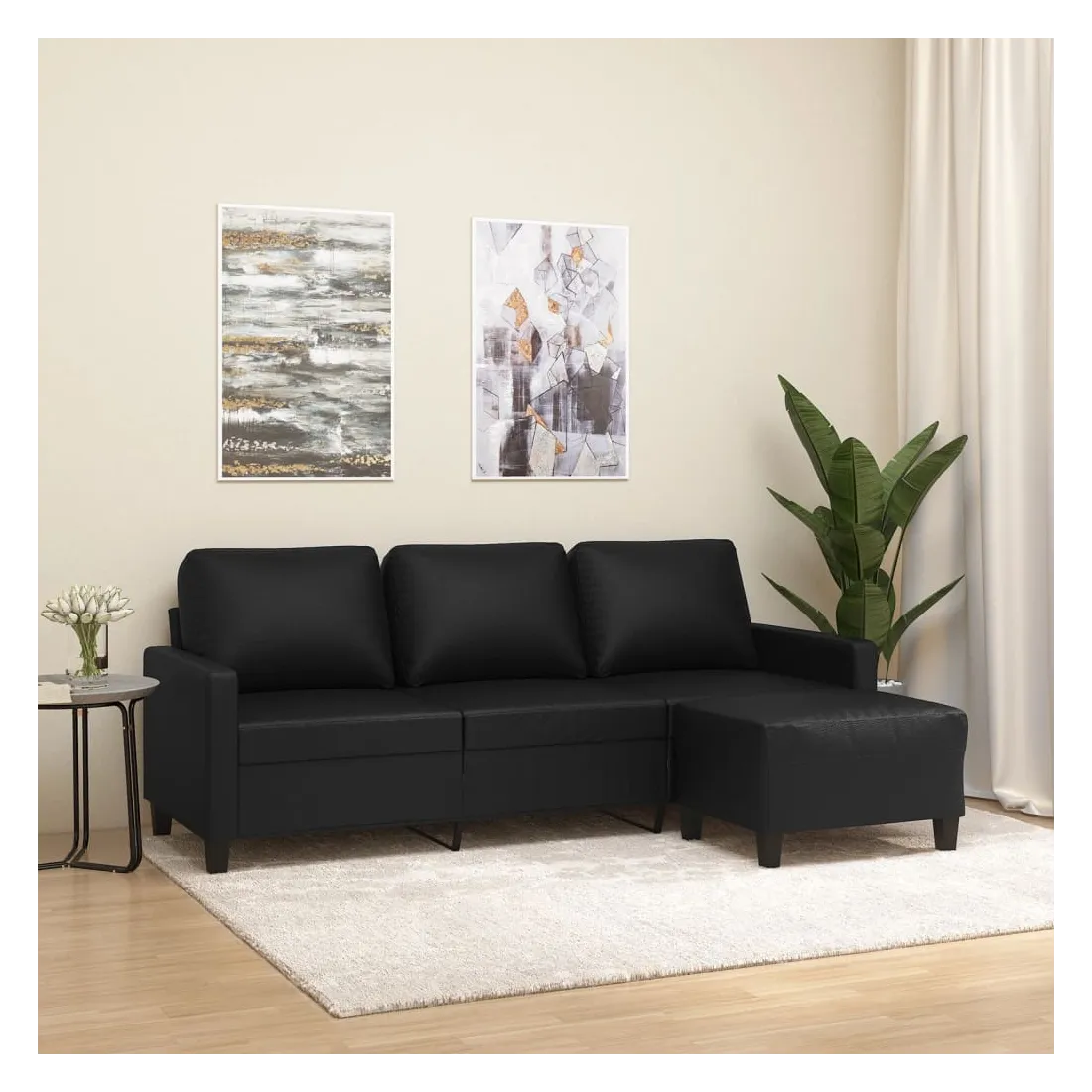 Ce canapé à 3 places avec repose-pieds est un excellent endroit pour discuter, lire, regarder la télévision ou simplement vous détendre. Il est destiné à être un point central dans votre maison. Similicuir durable : le similicuir de qualité supérieure est un matériau très durable. Il est résistant aux taches, ce qui le rend facile à nettoyer avec un chiffon humide. La surface lisse donne également un aspect luxueux et la beauté du cuir véritable.Structure robuste et stable : la structure en contreplaqué et en métal du canapé avec repose-pieds assure robustesse et stabilité.Expérience d'assise confortable : le fauteuil est très confortable avec les sièges, les accoudoirs et les coussins de dossier bien rembourrés.Repose-pied polyvalent : ce repose-pied convient pour reposer vos pieds lorsque vous êtes allongé dans un canapé ou un fauteuil inclinable, ou pour vous offrir un siège supplémentaire dans votre pièce. De plus, le design simple et la taille compacte le rendent idéal pour presque tous vos espaces de vie.Design accrocheur : doté d'un design simple mais moderne, ce canapé avec repose-pied est destiné à attirer l'attention dans votre pièce.