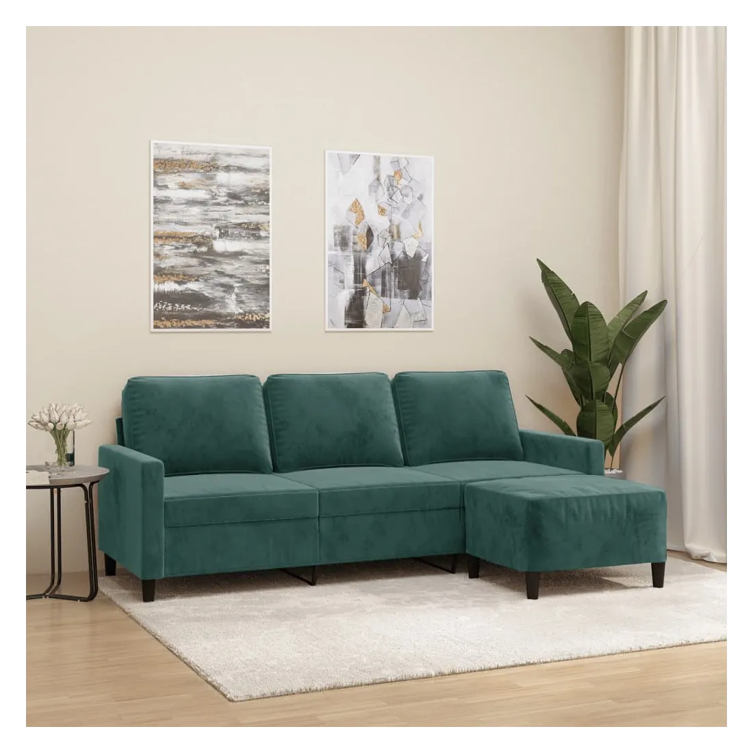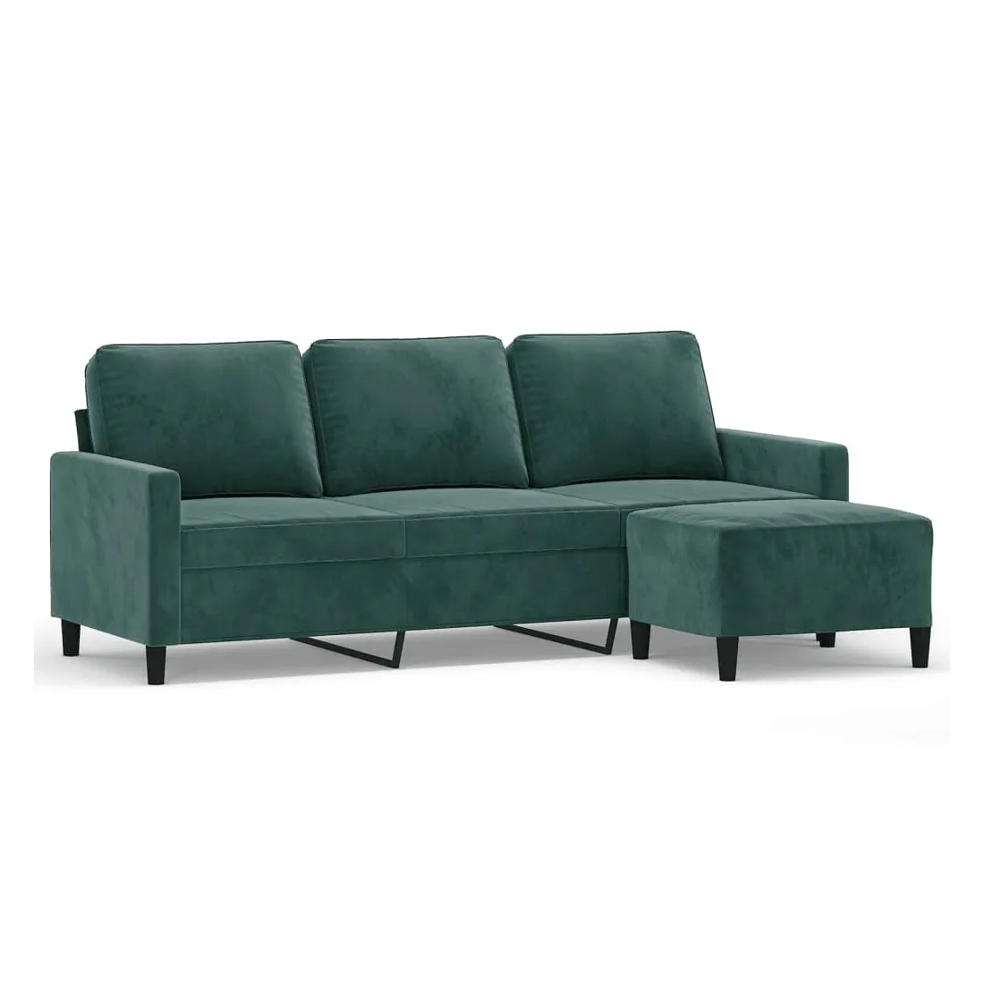 Ce canapé à 3 places avec repose-pieds est un excellent endroit pour discuter, lire, regarder la télévision ou simplement vous détendre. Il est destiné à être un point central dans votre maison. Velours durable : le velours est un tissu doux et confortable, agréable au toucher.Structure robuste et stable : la structure en contreplaqué et en métal du canapé avec repose-pieds assure robustesse et stabilité.Expérience d'assise confortable : le fauteuil est très confortable avec les sièges, les accoudoirs et les coussins de dossier bien rembourrés.Repose-pied polyvalent : ce repose-pied convient pour reposer vos pieds lorsque vous êtes allongé dans un canapé ou un fauteuil inclinable, ou pour vous offrir un siège supplémentaire dans votre pièce. De plus, le design simple et la taille compacte le rendent idéal pour presque tous vos espaces de vie.Design accrocheur : doté d'un design simple mais moderne, ce canapé avec repose-pied est destiné à attirer l'attention dans votre pièce.