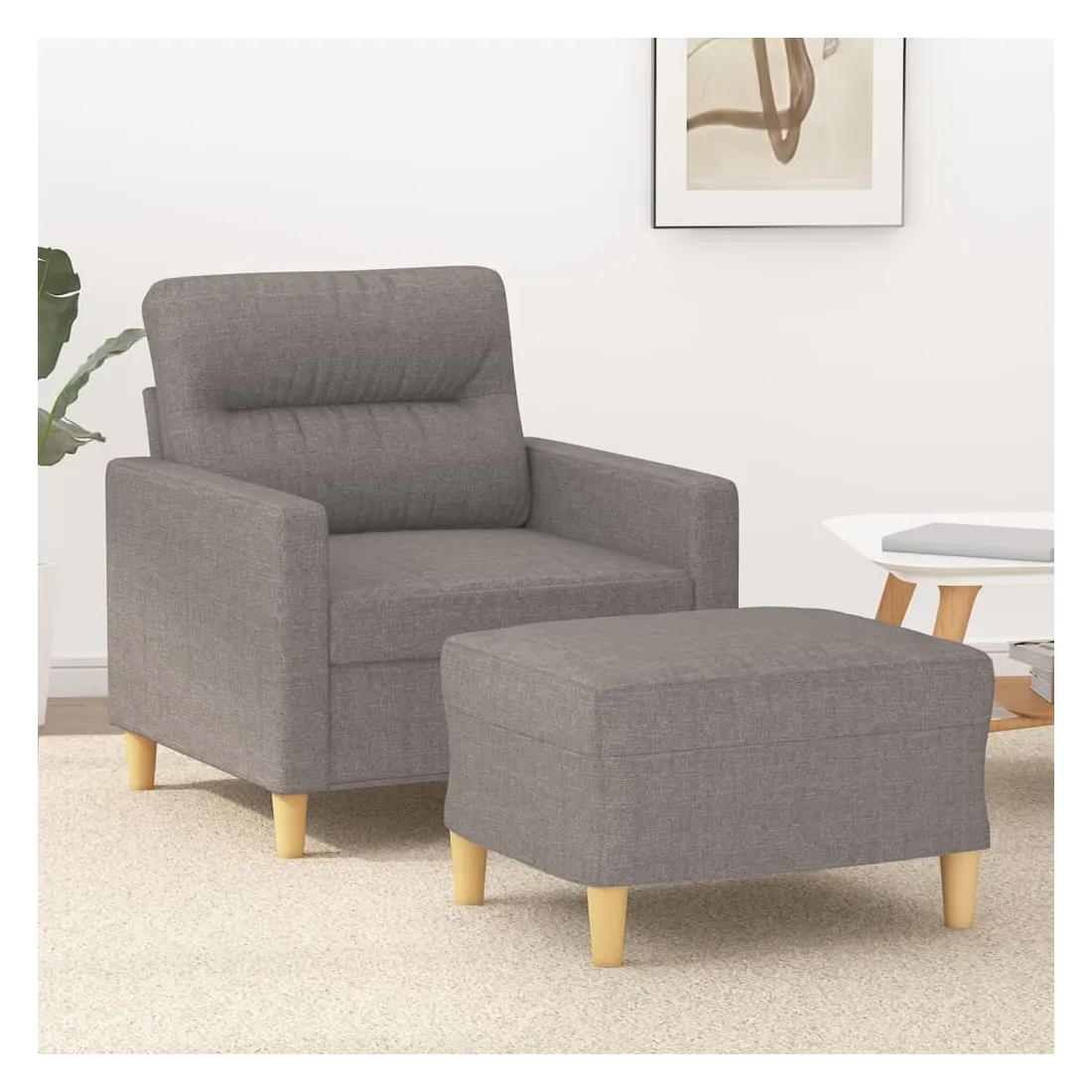 Ce fauteuil avec repose-pied est un excellent endroit pour discuter, lire, regarder la télévision ou simplement vous détendre. Il est destiné à être un point central de votre maison. Tissu durable : le tissu présente un aspect simple et épuré tout en restant respirant et durable.Structure robuste et stable : la structure en contreplaqué et en métal du canapé avec repose-pieds assure robustesse et stabilité.Expérience d'assise confortable : le fauteuil est très confortable avec le siège, les accoudoirs et le coussin de dossier bien rembourrés.Repose-pied polyvalent : ce repose-pied convient pour reposer vos pieds lorsque vous êtes allongé dans un canapé ou un fauteuil inclinable, ou pour vous offrir un siège supplémentaire dans votre pièce. De plus, le design simple et la taille compacte le rendent idéal pour presque tous vos espaces de vie.Design accrocheur : doté d'un design simple mais moderne, ce canapé avec repose-pied est destiné à attirer l'attention dans votre pièce.