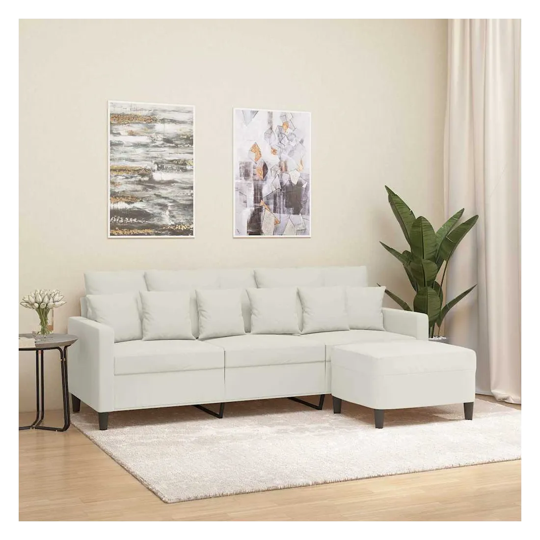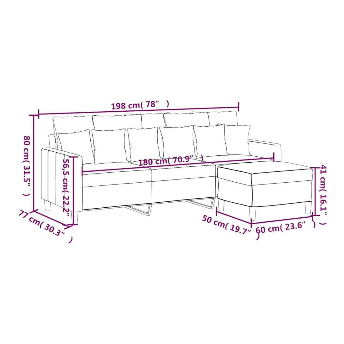 Ce canapé à 3 places avec repose-pieds est un excellent endroit pour discuter, lire, regarder la télévision ou simplement vous détendre. Il est destiné à être un point central dans votre maison. Velours durable : le velours est un tissu doux et confortable, agréable au toucher.Structure robuste et stable : la structure en contreplaqué et en métal du canapé avec repose-pieds assure robustesse et stabilité.Expérience d'assise confortable : le fauteuil est très confortable avec les sièges, les accoudoirs et les coussins de dossier bien rembourrés.Repose-pied polyvalent : ce repose-pied convient pour reposer vos pieds lorsque vous êtes allongé dans un canapé ou un fauteuil inclinable, ou pour vous offrir un siège supplémentaire dans votre pièce. De plus, le design simple et la taille compacte le rendent idéal pour presque tous vos espaces de vie.Design accrocheur : doté d'un design simple mais moderne, ce canapé avec repose-pied est destiné à attirer l'attention dans votre pièce.