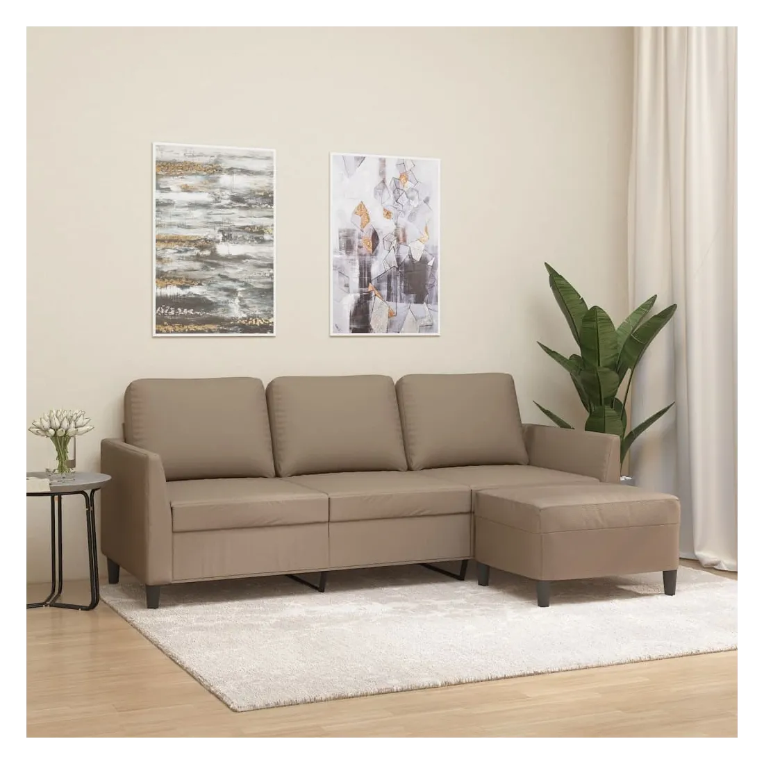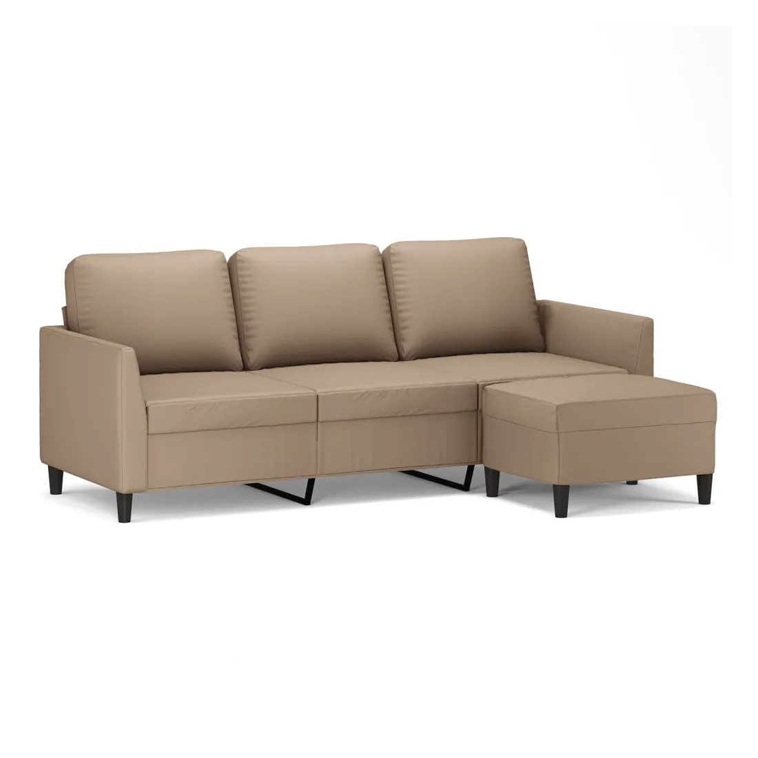 Ce canapé à 3 places avec repose-pieds est un excellent endroit pour discuter, lire, regarder la télévision ou simplement vous détendre. Il est destiné à être un point central dans votre maison. Similicuir durable : le similicuir de qualité supérieure est un matériau très durable. Il est résistant aux taches, ce qui le rend facile à nettoyer avec un chiffon humide. La surface lisse donne également un aspect luxueux et la beauté du cuir véritable.Structure robuste et stable : la structure en contreplaqué et en métal du canapé avec repose-pieds assure robustesse et stabilité.Expérience d'assise confortable : le fauteuil est très confortable avec les sièges, les accoudoirs et les coussins de dossier bien rembourrés.Repose-pied polyvalent : ce repose-pied convient pour reposer vos pieds lorsque vous êtes allongé dans un canapé ou un fauteuil inclinable, ou pour vous offrir un siège supplémentaire dans votre pièce. De plus, le design simple et la taille compacte le rendent idéal pour presque tous vos espaces de vie.Design accrocheur : doté d'un design simple mais moderne, ce canapé avec repose-pied est destiné à attirer l'attention dans votre pièce.