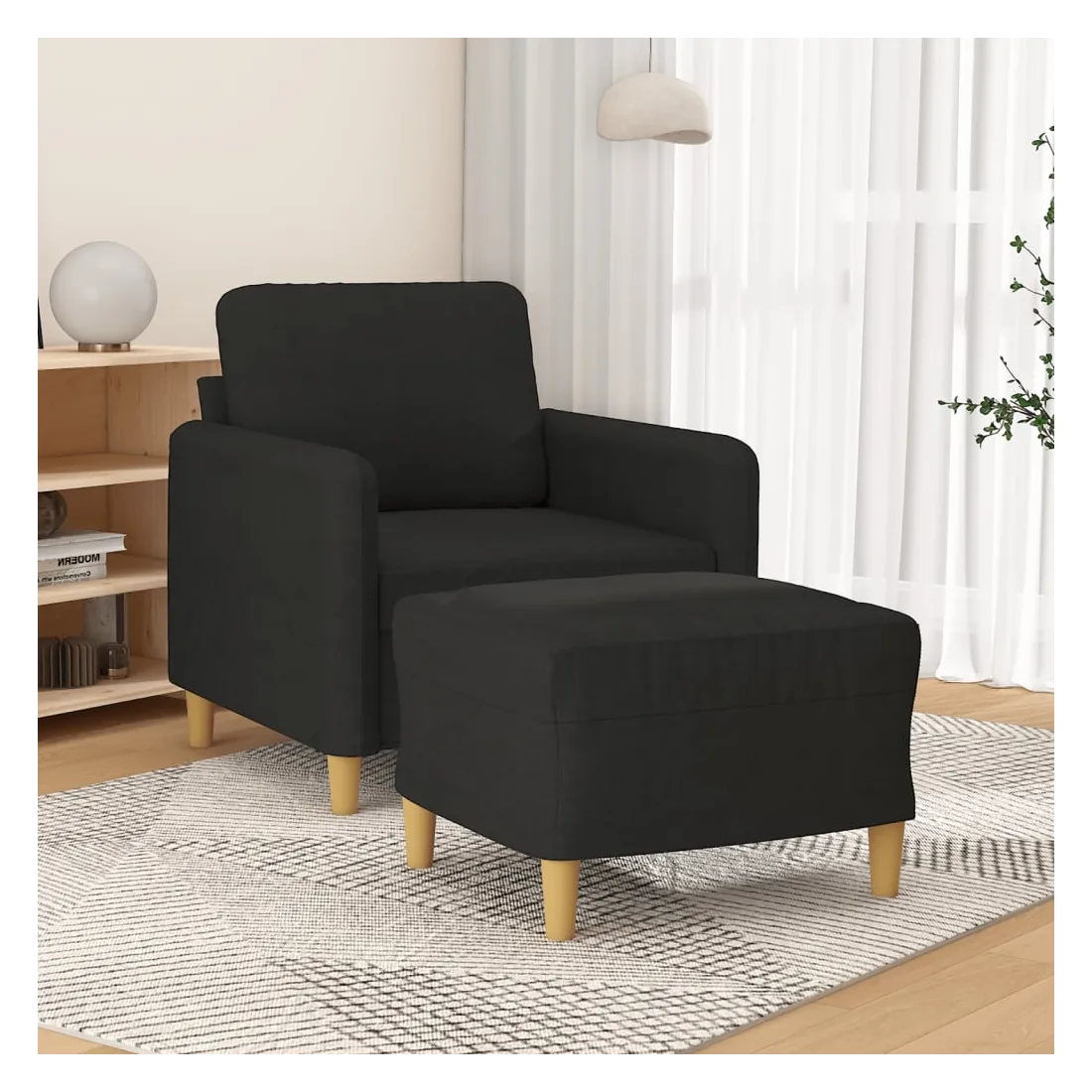 Ce fauteuil avec repose-pied est un excellent endroit pour discuter, lire, regarder la télévision ou simplement vous détendre. Il est destiné à être un point central de votre maison. Tissu durable : le tissu présente un aspect simple et épuré tout en restant respirant et durable.Structure robuste et stable : la structure en contreplaqué et en métal du canapé avec repose-pieds assure robustesse et stabilité.Expérience d'assise confortable : le fauteuil est très confortable avec le siège, les accoudoirs et le coussin de dossier bien rembourrés.Repose-pied polyvalent : ce repose-pied convient pour reposer vos pieds lorsque vous êtes allongé dans un canapé ou un fauteuil inclinable, ou pour vous offrir un siège supplémentaire dans votre pièce. De plus, le design simple et la taille compacte le rendent idéal pour presque tous vos espaces de vie.Design accrocheur : doté d'un design simple mais moderne, ce canapé avec repose-pied est destiné à attirer l'attention dans votre pièce.
