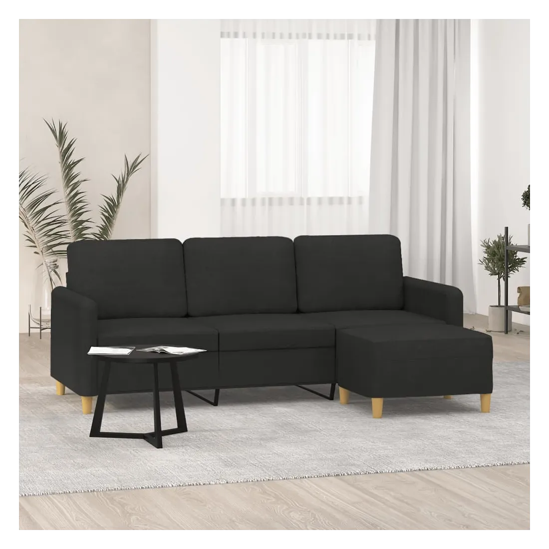 Ce canapé à 3 places avec repose-pieds est un excellent endroit pour discuter, lire, regarder la télévision ou simplement vous détendre. Il est destiné à être un point central dans votre maison. Tissu durable : le tissu présente un aspect simple et épuré tout en restant respirant et durable.Structure robuste et stable : la structure en contreplaqué et en métal du canapé avec repose-pieds assure robustesse et stabilité.Expérience d'assise confortable : le fauteuil est très confortable avec les sièges, les accoudoirs et les coussins de dossier bien rembourrés.Repose-pied polyvalent : ce repose-pied convient pour reposer vos pieds lorsque vous êtes allongé dans un canapé ou un fauteuil inclinable, ou pour vous offrir un siège supplémentaire dans votre pièce. De plus, le design simple et la taille compacte le rendent idéal pour presque tous vos espaces de vie.Design accrocheur : doté d'un design simple mais moderne, ce canapé avec repose-pied est destiné à attirer l'attention dans votre pièce.
