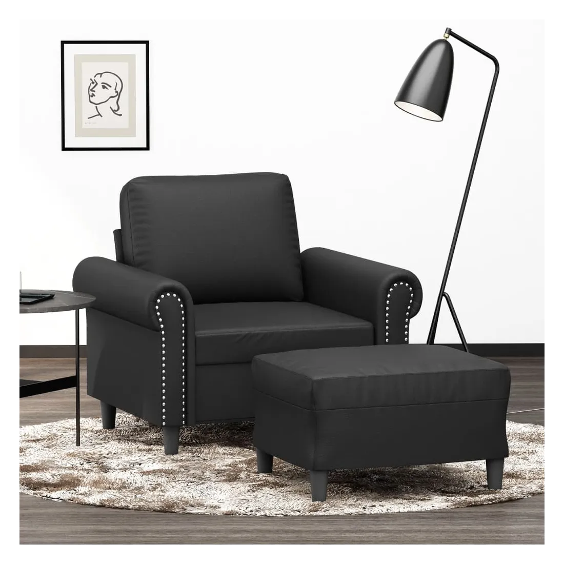 Ce fauteuil avec repose-pied est un excellent endroit pour discuter, lire, regarder la télévision ou simplement vous détendre. Il est destiné à être un point central de votre maison. Similicuir durable : le similicuir de qualité supérieure est un matériau très durable. Il est résistant aux taches, ce qui le rend facile à nettoyer avec un chiffon humide. La surface lisse donne également un aspect luxueux et la beauté du cuir véritable.Structure robuste et stable : la structure en contreplaqué et en métal du canapé avec repose-pieds assure robustesse et stabilité.Expérience d'assise confortable : le fauteuil est très confortable avec le siège, les accoudoirs et le coussin de dossier bien rembourrés.Repose-pied polyvalent : ce repose-pied convient pour reposer vos pieds lorsque vous êtes allongé dans un canapé ou un fauteuil inclinable, ou pour vous offrir un siège supplémentaire dans votre pièce. De plus, le design simple et la taille compacte le rendent idéal pour presque tous vos espaces de vie.Design accrocheur : doté d'un design simple mais moderne, ce canapé avec repose-pied est destiné à attirer l'attention dans votre pièce.