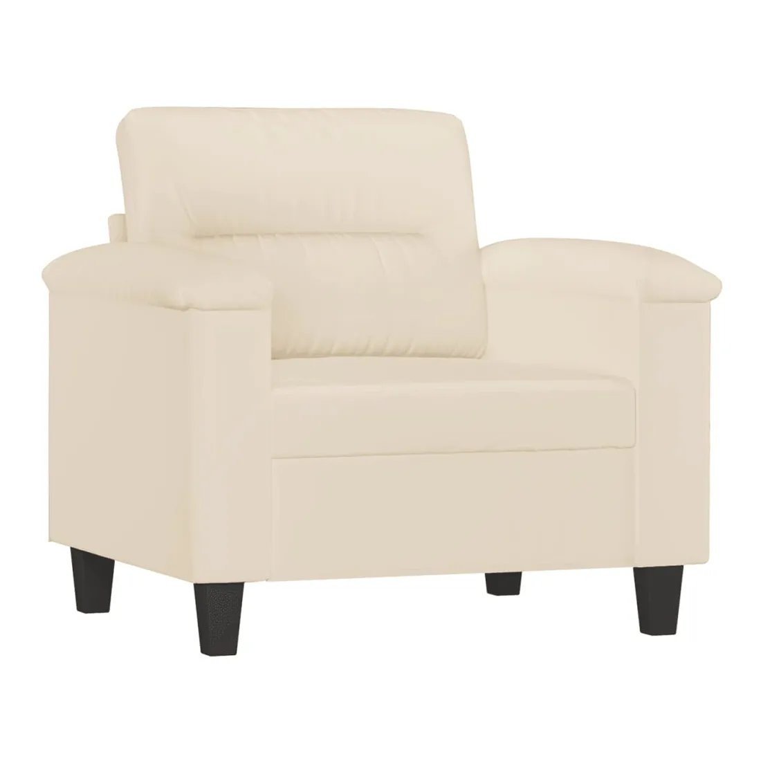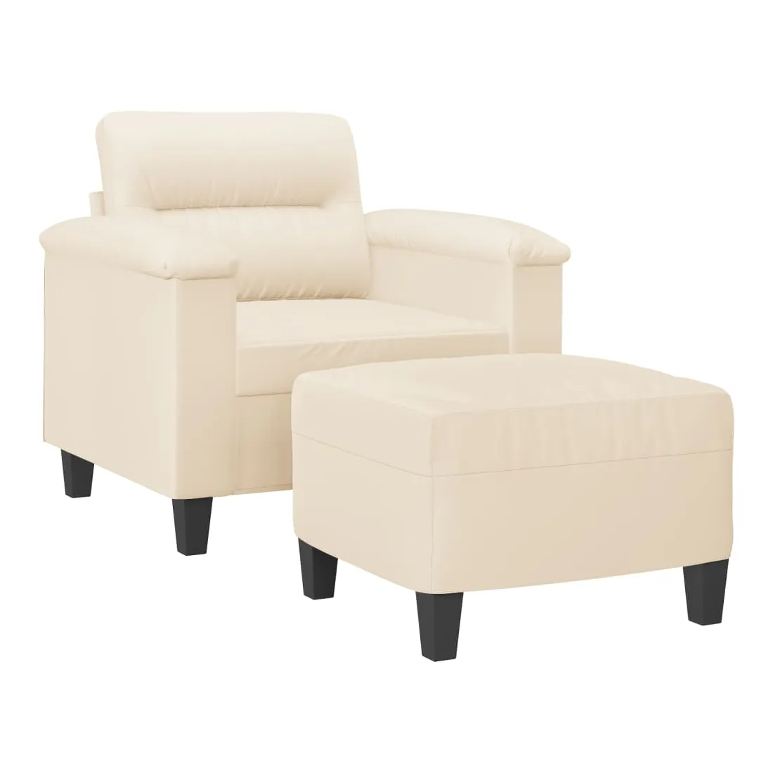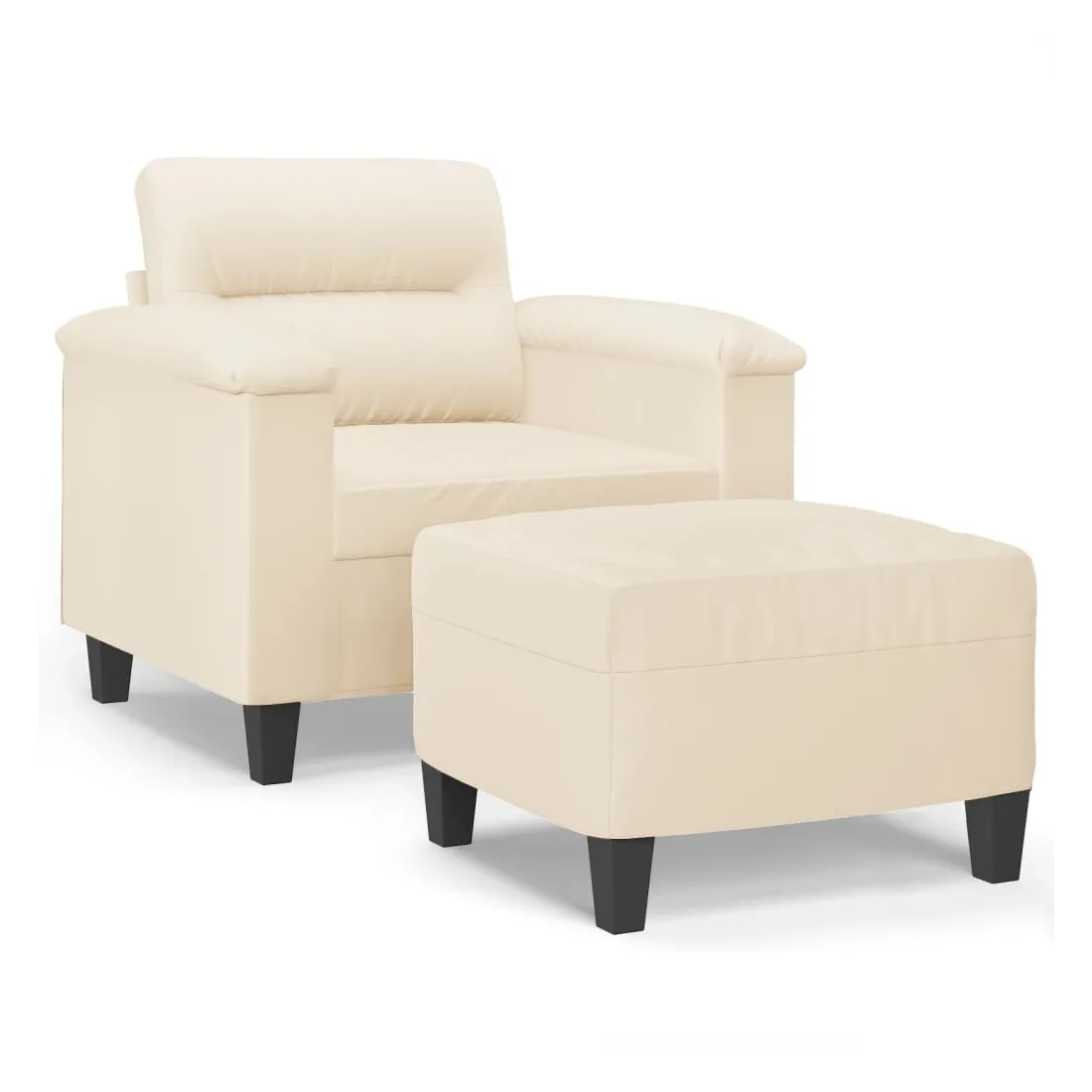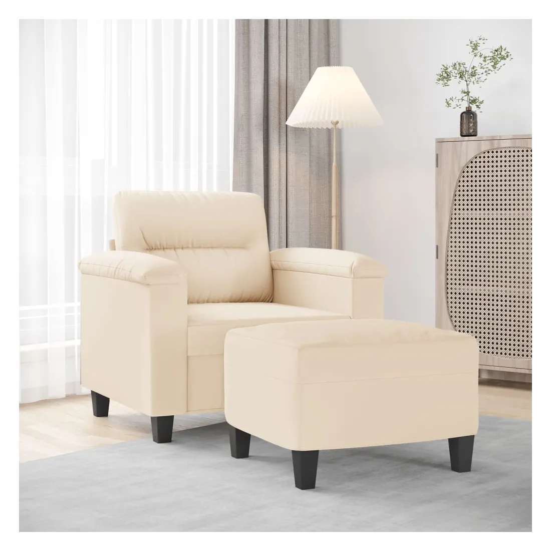 Ce fauteuil avec repose-pied est un excellent endroit pour discuter, lire, regarder la télévision ou simplement vous détendre. Il est destiné à être un point central de votre maison. Tissu microfibre durable : le microfibre est un tissu synthétique composé de fibres ultra-fines, particulièrement résistantes aux taches. Le tissu en microfibre est un excellent choix pour le rembourrage des meubles en raison de sa durabilité et de son nettoyage facile.Structure robuste et stable : la structure en contreplaqué et en métal du canapé avec repose-pieds assure robustesse et stabilité.Expérience d'assise confortable : le fauteuil est très confortable avec le siège, les accoudoirs et le coussin de dossier bien rembourrés.Repose-pied polyvalent : ce repose-pied convient pour reposer vos pieds lorsque vous êtes allongé dans un canapé ou un fauteuil inclinable, ou pour vous offrir un siège supplémentaire dans votre pièce. De plus, le design simple et la taille compacte le rendent idéal pour presque tous vos espaces de vie.Design accrocheur : doté d'un design simple mais moderne, ce canapé avec repose-pied est destiné à attirer l'attention dans votre pièce.