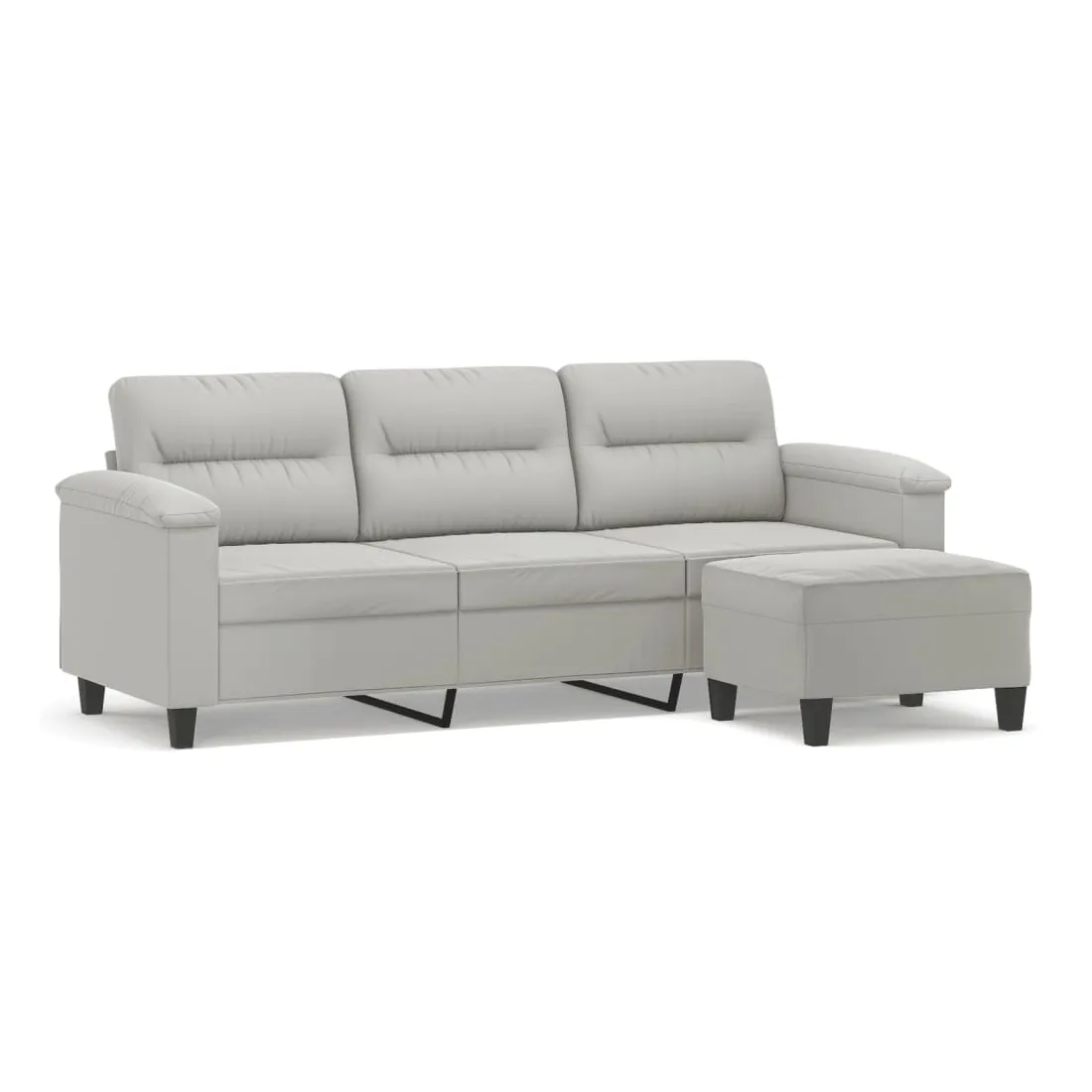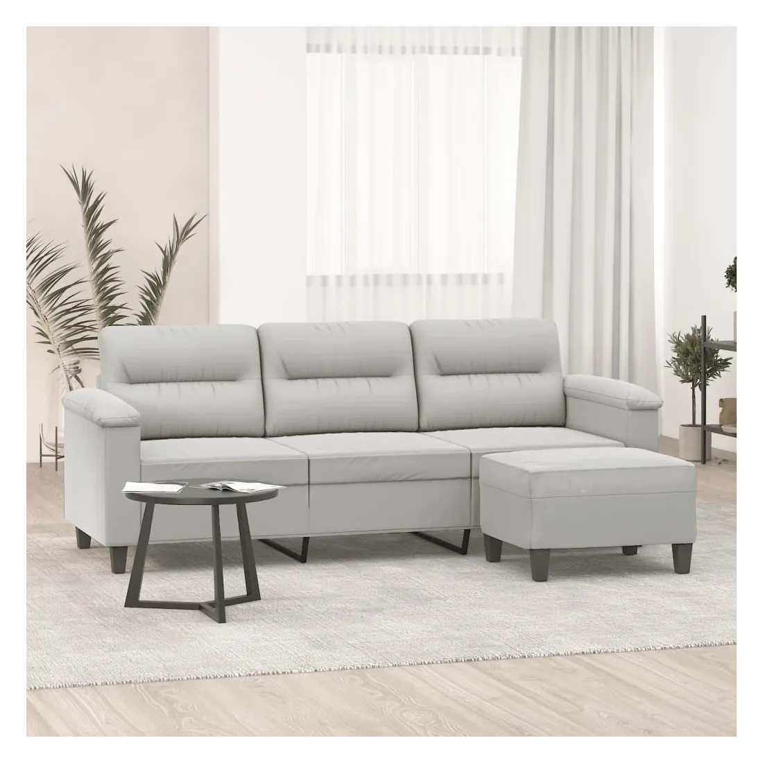 Ce canapé à 3 places avec repose-pieds est un excellent endroit pour discuter, lire, regarder la télévision ou simplement vous détendre. Il est destiné à être un point central dans votre maison. Tissu microfibre durable : le microfibre est un tissu synthétique composé de fibres ultra-fines, particulièrement résistantes aux taches. Le tissu en microfibre est un excellent choix pour le rembourrage des meubles en raison de sa durabilité et de son nettoyage facile.Structure robuste et stable : la structure en contreplaqué et en métal du canapé avec repose-pieds assure robustesse et stabilité.Expérience d'assise confortable : le fauteuil est très confortable avec les sièges, les accoudoirs et les coussins de dossier bien rembourrés.Repose-pied polyvalent : ce repose-pied convient pour reposer vos pieds lorsque vous êtes allongé dans un canapé ou un fauteuil inclinable, ou pour vous offrir un siège supplémentaire dans votre pièce. De plus, le design simple et la taille compacte le rendent idéal pour presque tous vos espaces de vie.Design accrocheur : doté d'un design simple mais moderne, ce canapé avec repose-pied est destiné à attirer l'attention dans votre pièce.