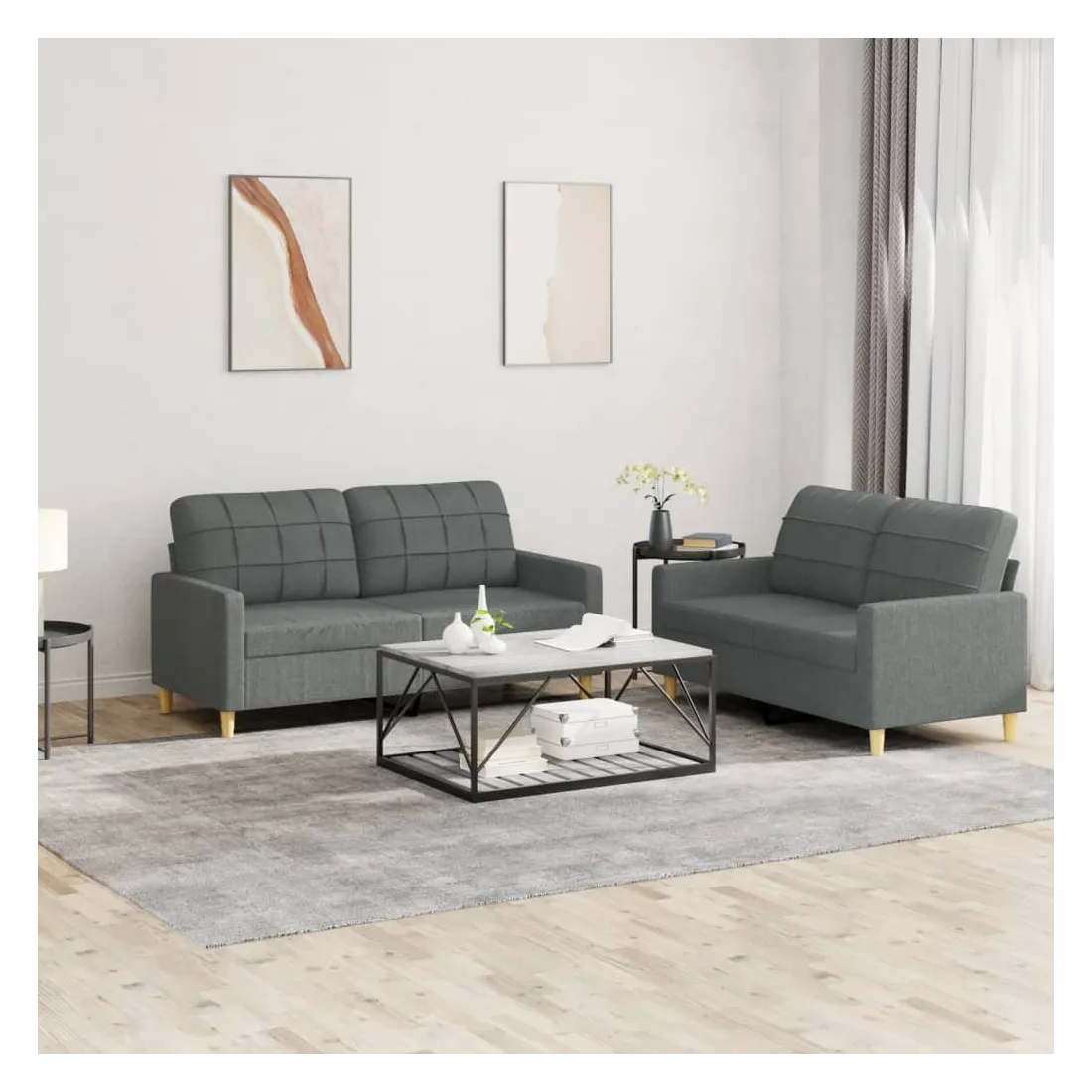 Cet ensemble de canapés est un excellent endroit pour discuter, lire, regarder la télévision ou simplement vous détendre. Il est destiné à être un point central de votre maison. Tissu durable : le tissu présente un aspect simple et épuré tout en restant respirant et durable.Structure robuste et stable : la structure en contreplaqué et en métal du canapé assure robustesse et stabilité.Expérience d'assise confortable : le canapé est très confortable avec le siège, les accoudoirs et les oreillers de dossier bien rembourrés.Design accrocheur : doté d'un design simple mais moderne, ce siège de salon est destiné à attirer l'attention dans votre pièce.