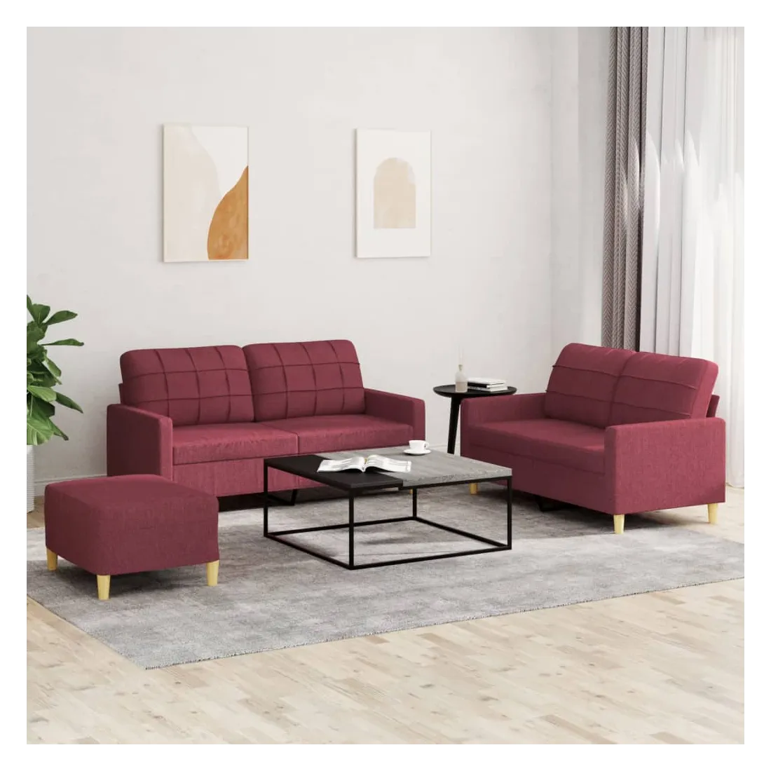 Cet ensemble de canapés est un excellent endroit pour discuter, lire, regarder la télévision ou simplement vous détendre. Il est destiné à être un point central de votre maison. Tissu durable : le tissu présente un aspect simple et épuré tout en restant respirant et durable.Structure robuste et stable : la structure en contreplaqué et en métal du canapé assure robustesse et stabilité.Expérience d'assise confortable : le canapé est très confortable avec le siège, les accoudoirs et les oreillers de dossier bien rembourrés.Pouf polyvalent : ce repose-pied convient pour reposer vos pieds lorsque vous êtes allongé dans un canapé, ou pour vous offrir un siège supplémentaire dans votre pièce. De plus, le design simple et la taille compacte le rendent idéal pour presque tous vos espaces de vie.